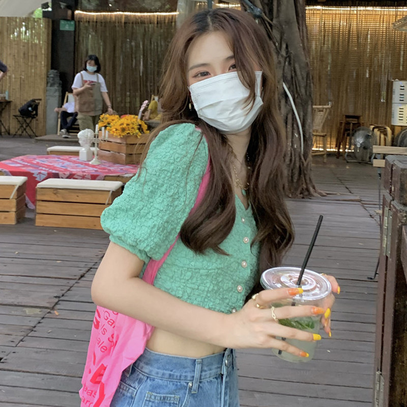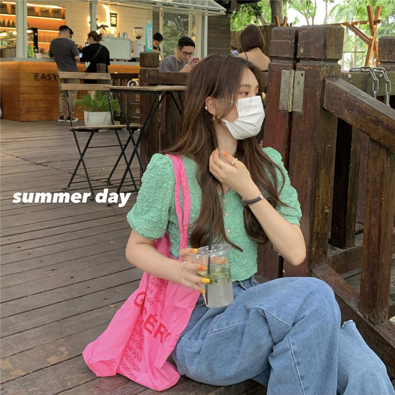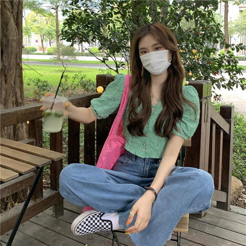 Летняя дизайнерская короткая рубашка, тренд сезона, подходит для подростков, рукава фонарики, французский стиль