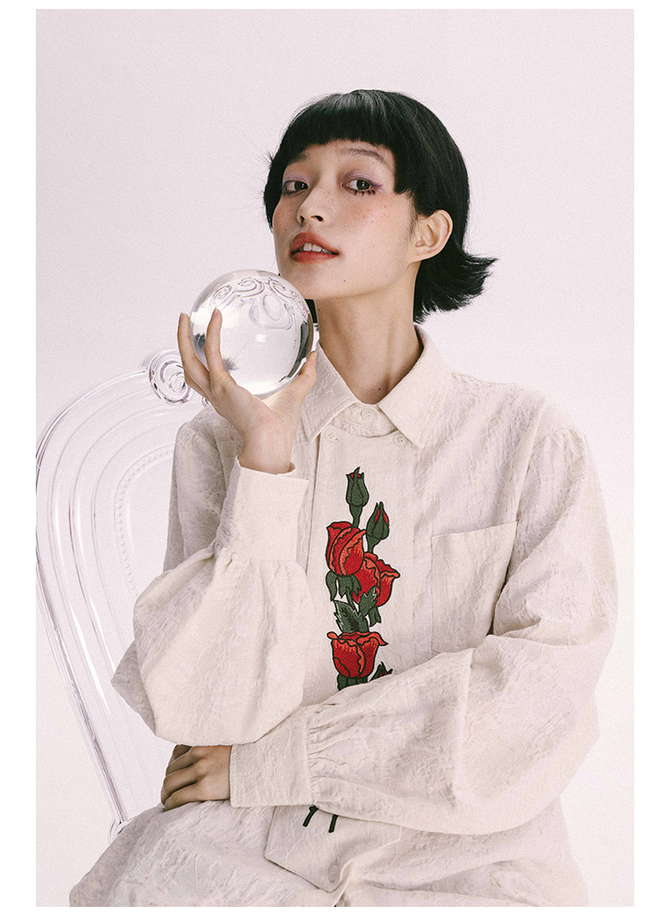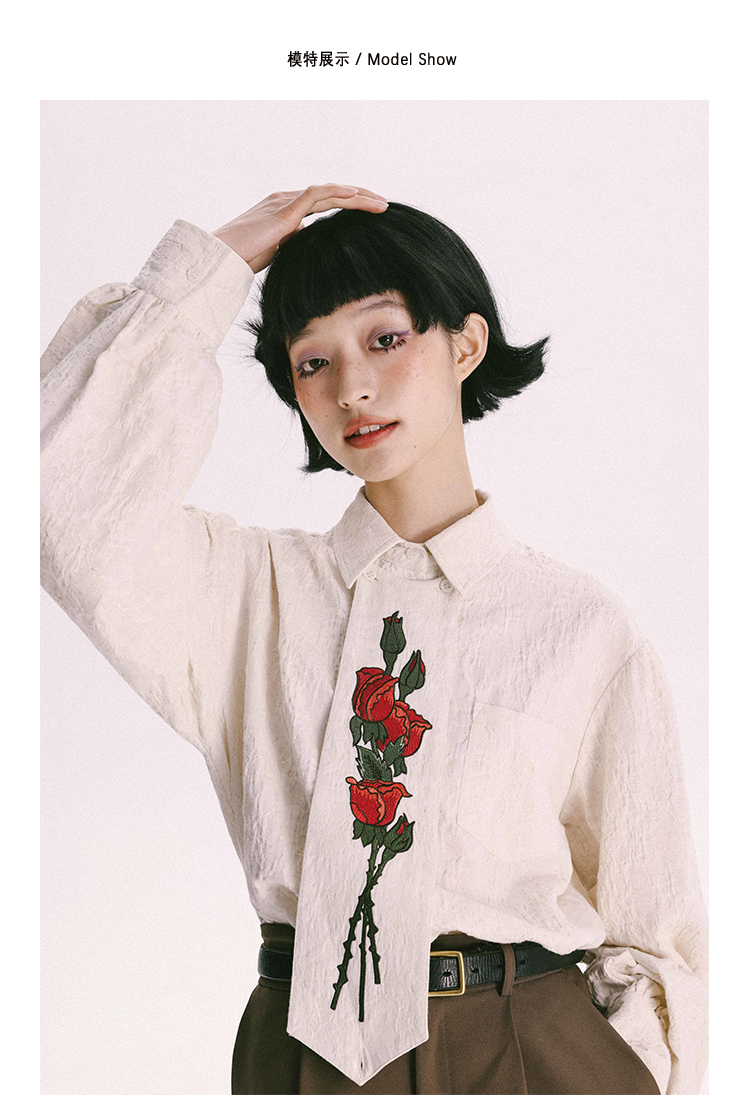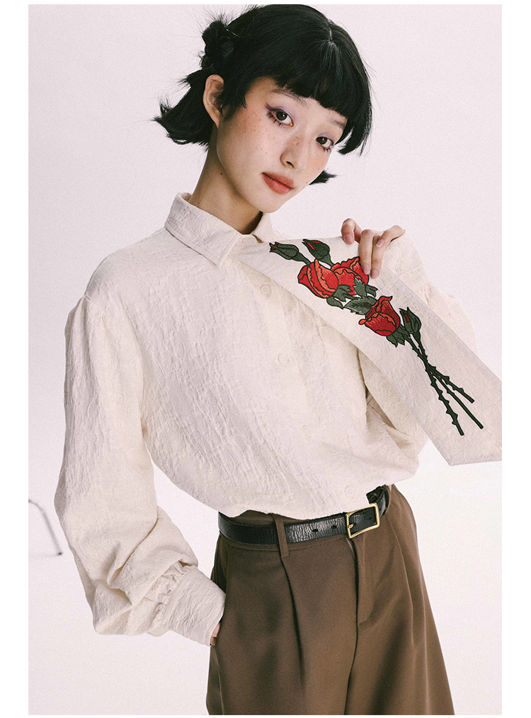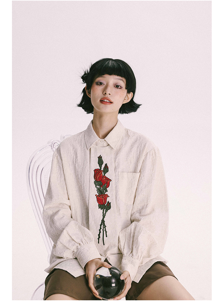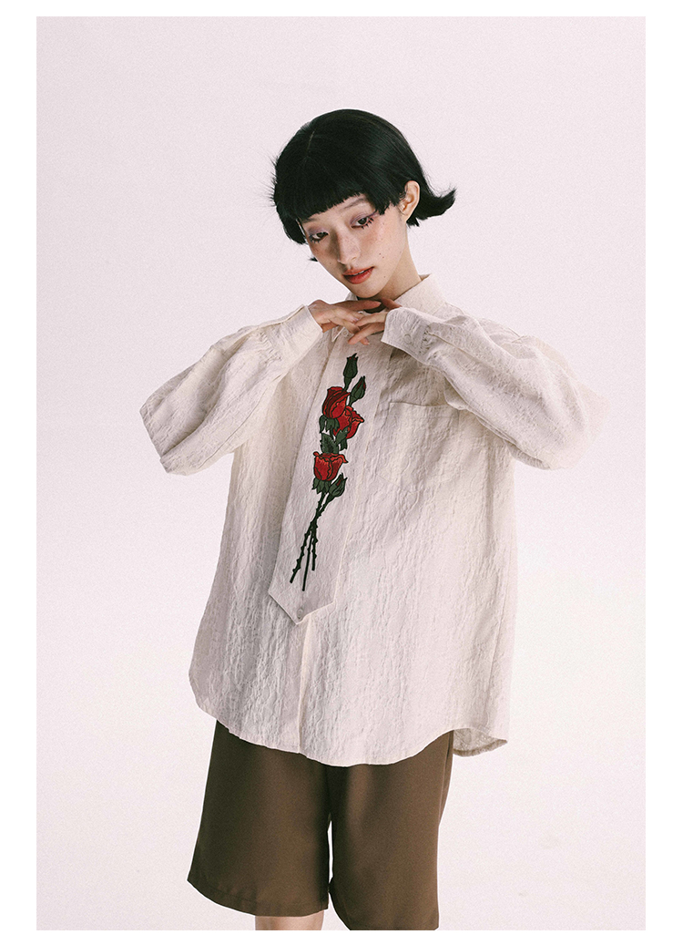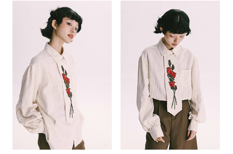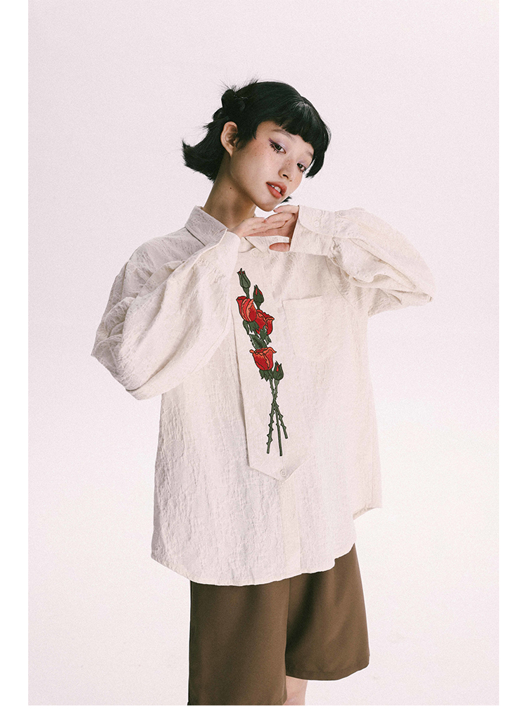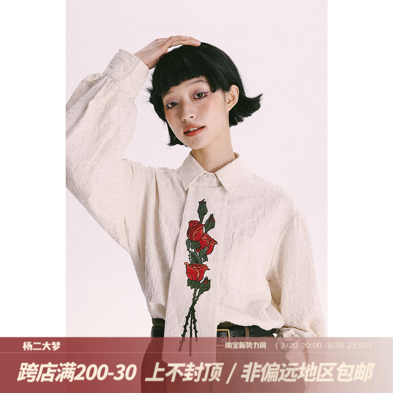 杨二大梦 Оригинальная дизайнерская ретро осенняя рубашка, термобелье, с вышивкой, тренд сезона