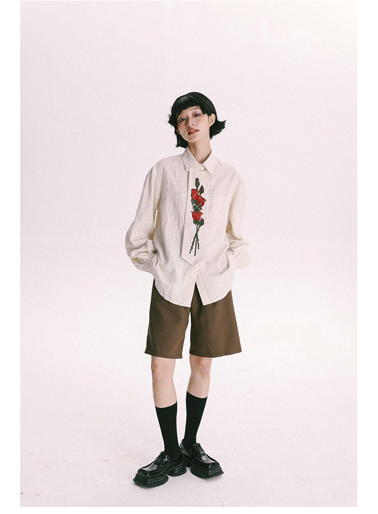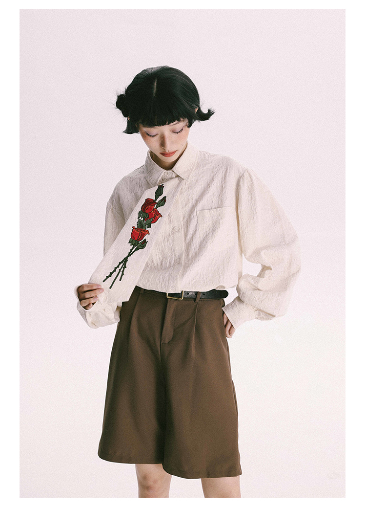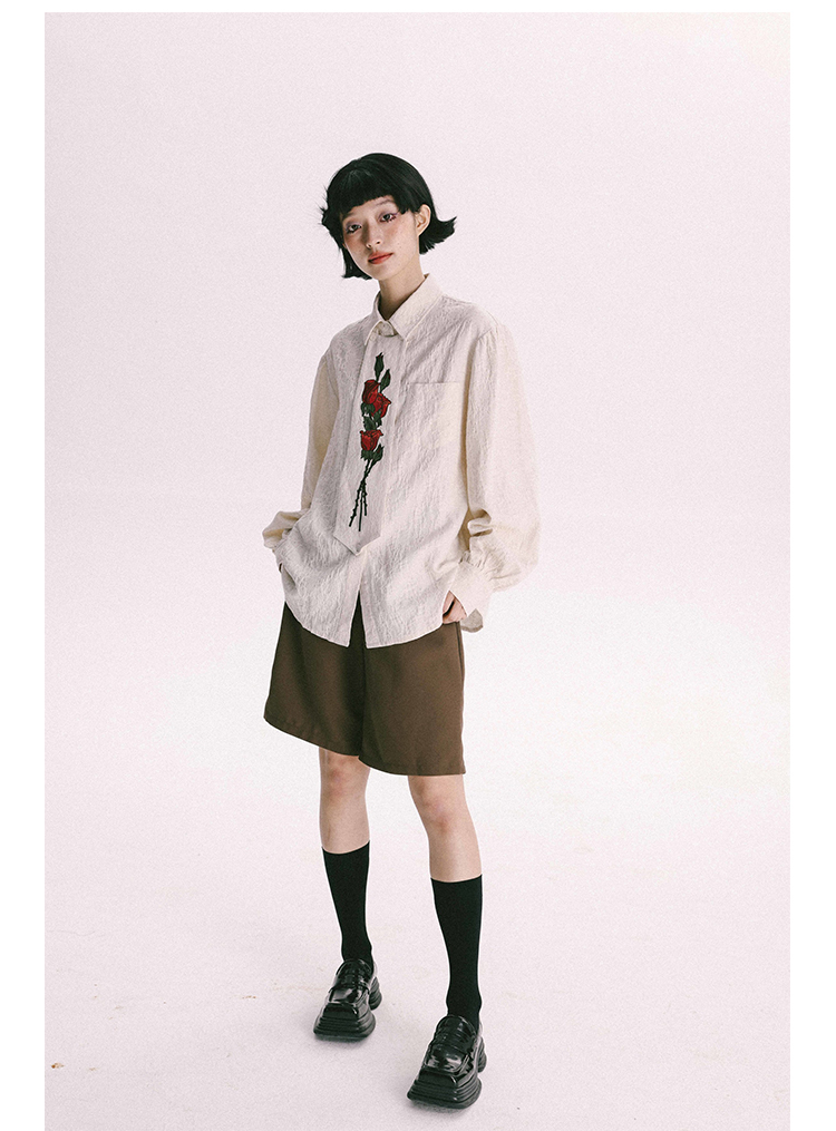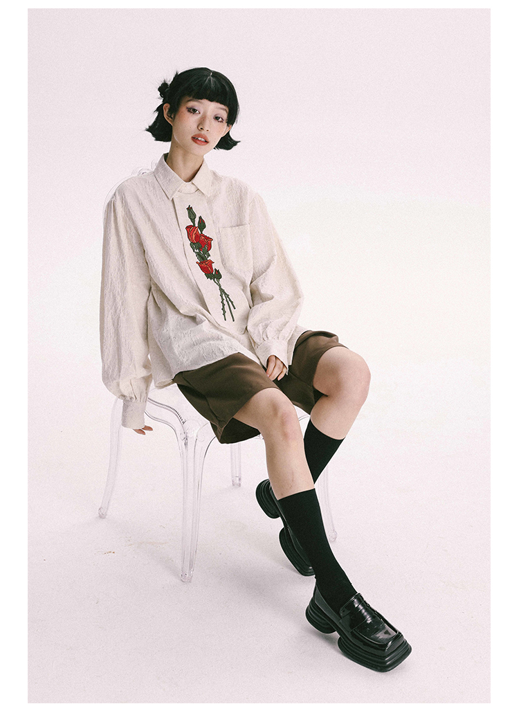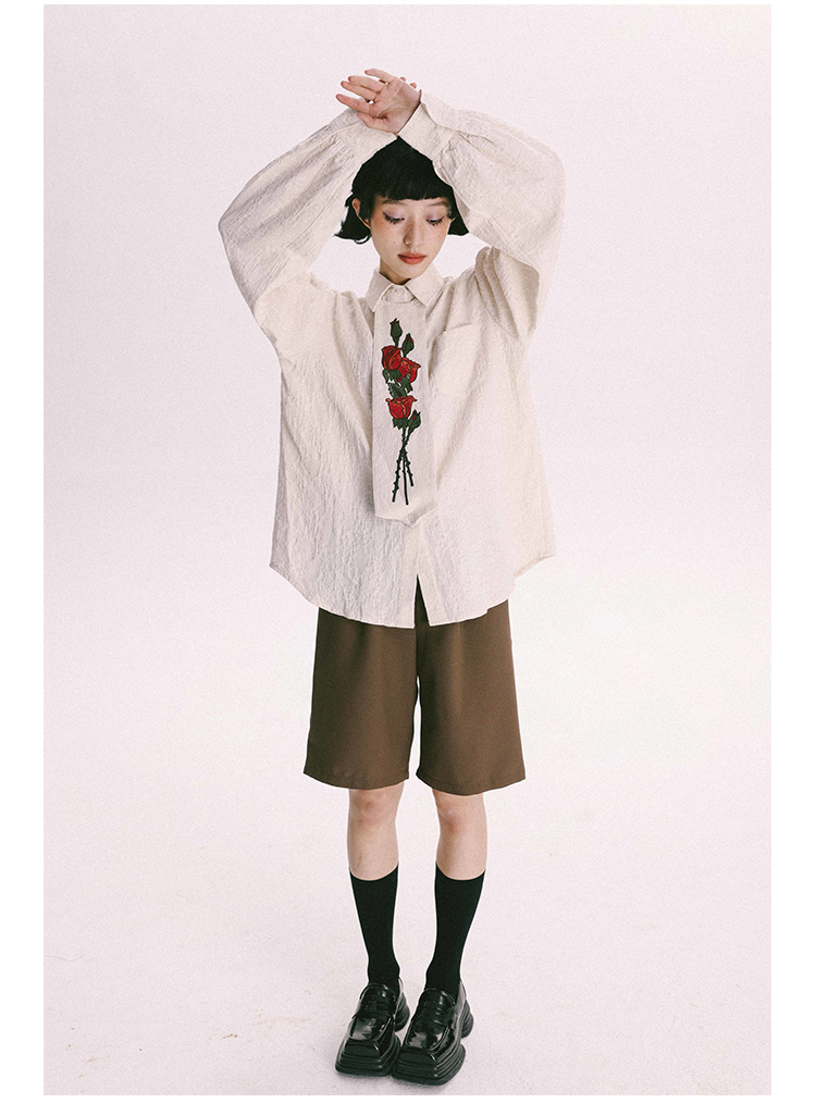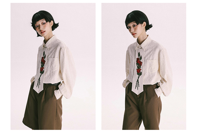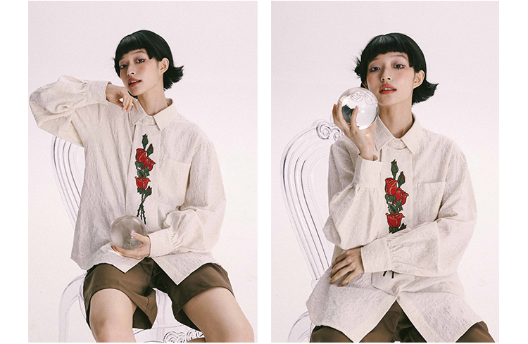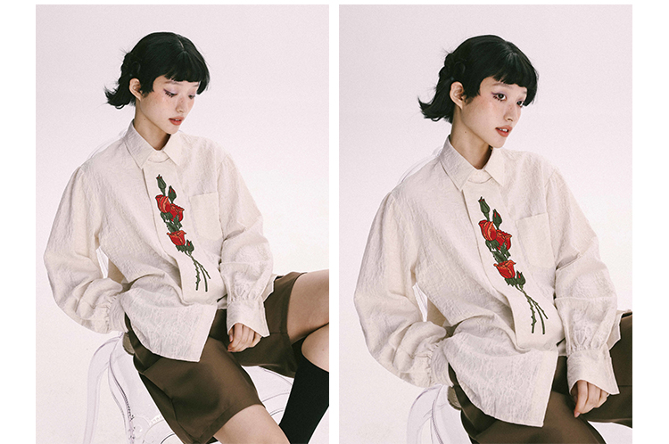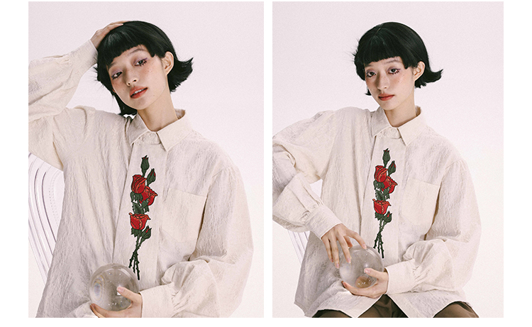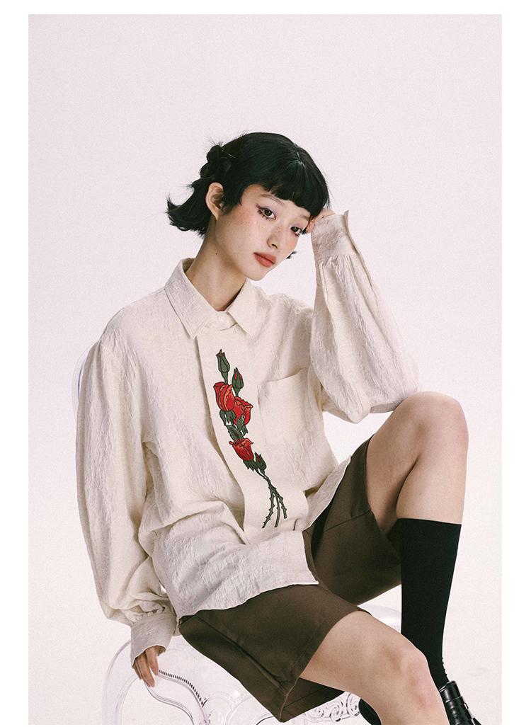 杨二大梦 Оригинальная дизайнерская ретро осенняя рубашка, термобелье, с вышивкой, тренд сезона