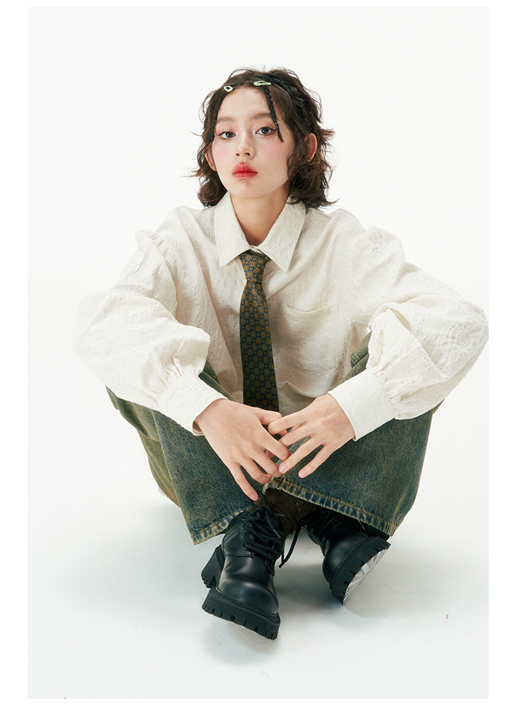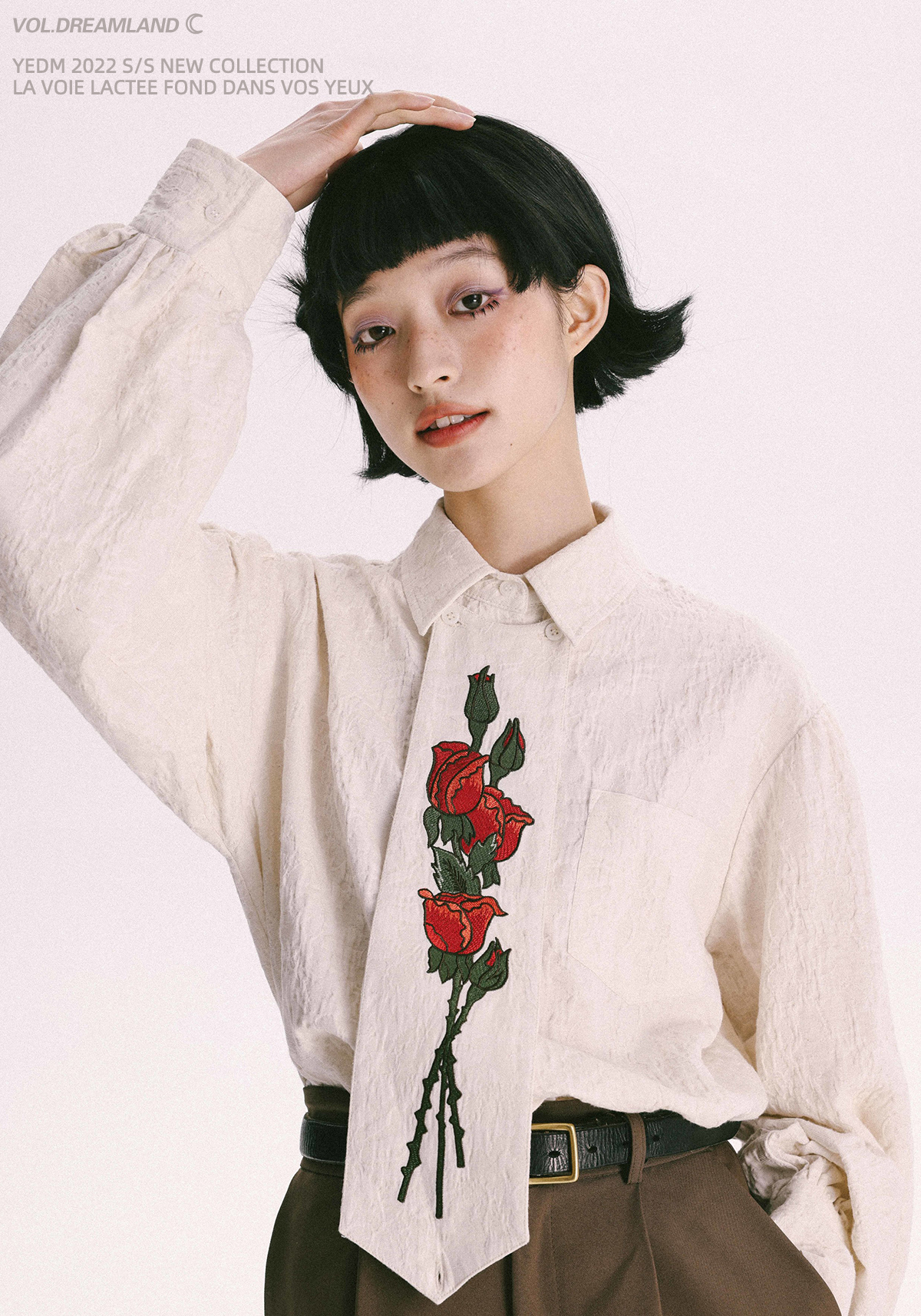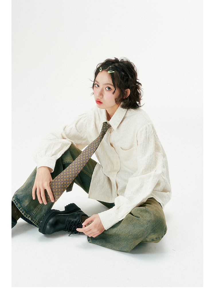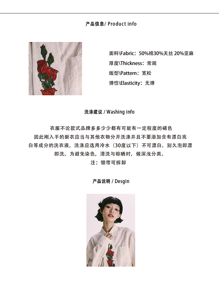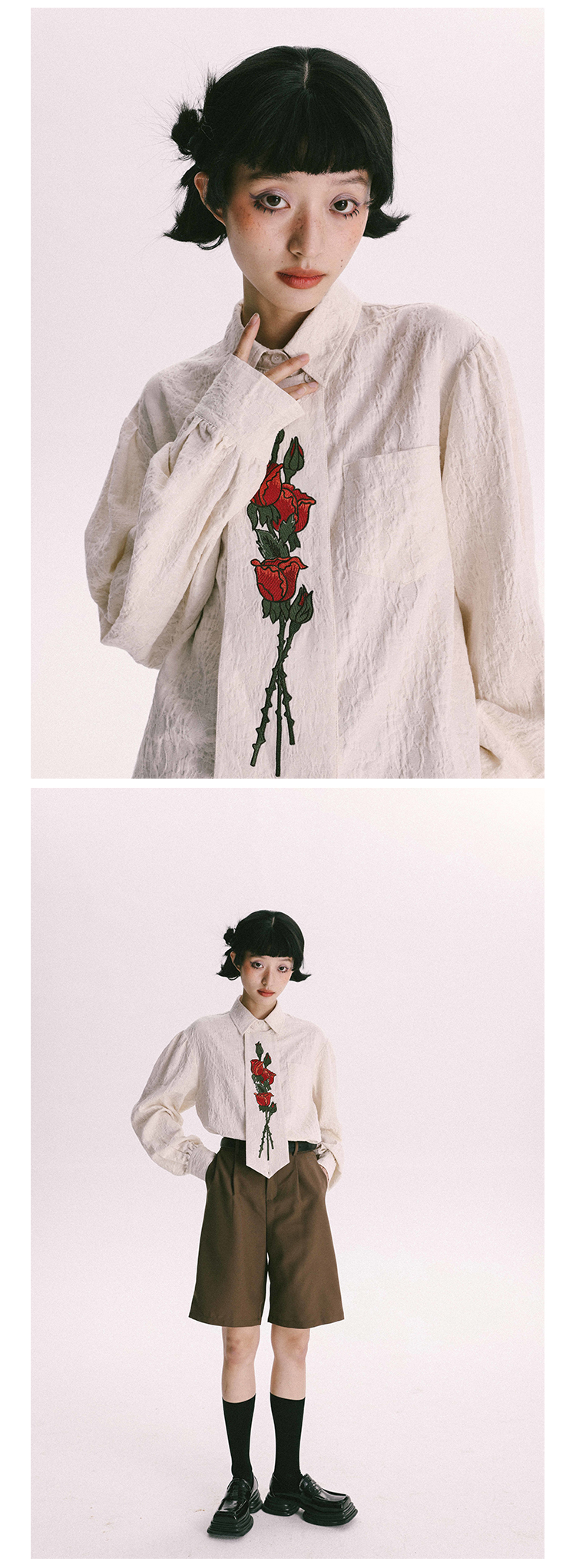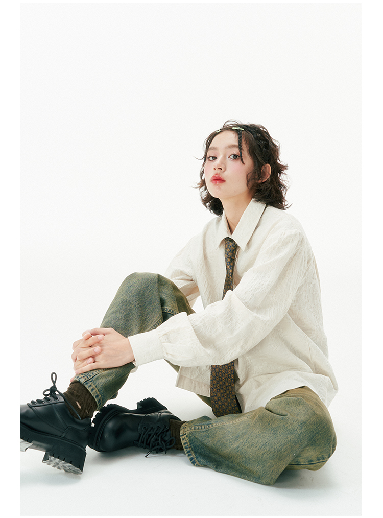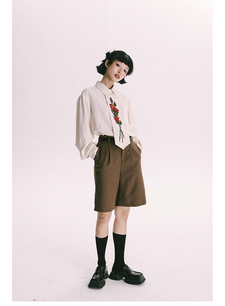 杨二大梦 Оригинальная дизайнерская ретро осенняя рубашка, термобелье, с вышивкой, тренд сезона
