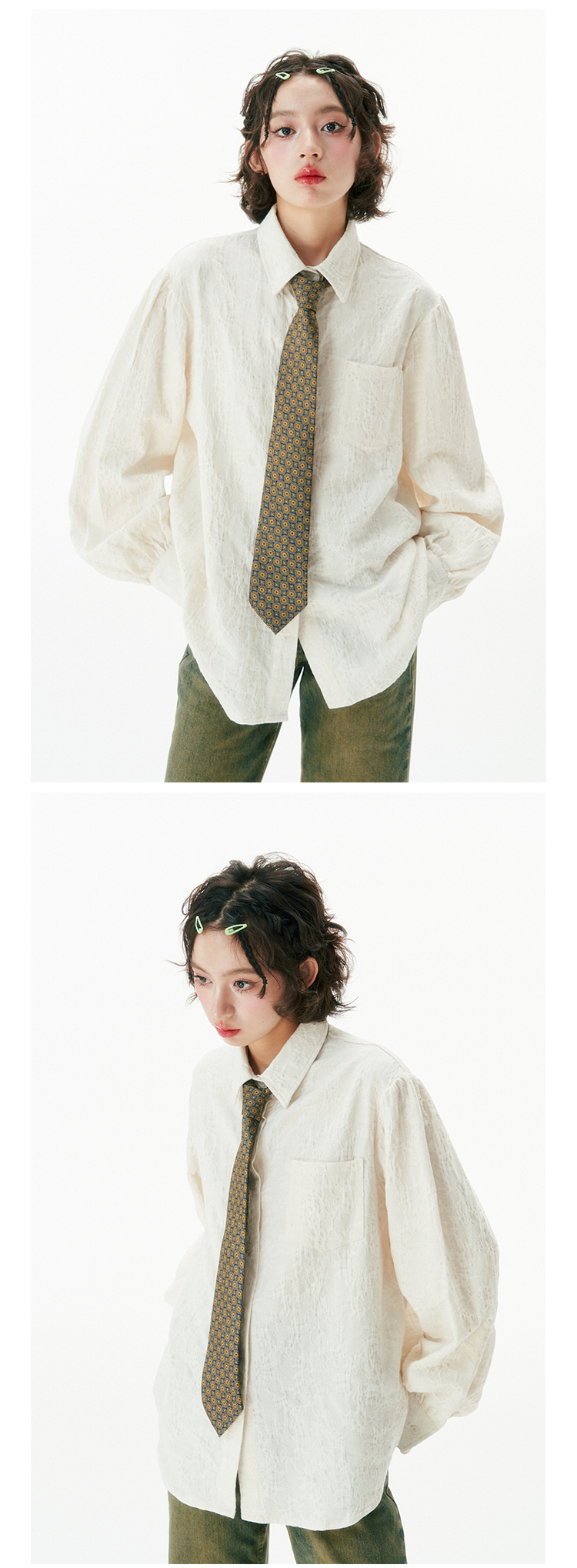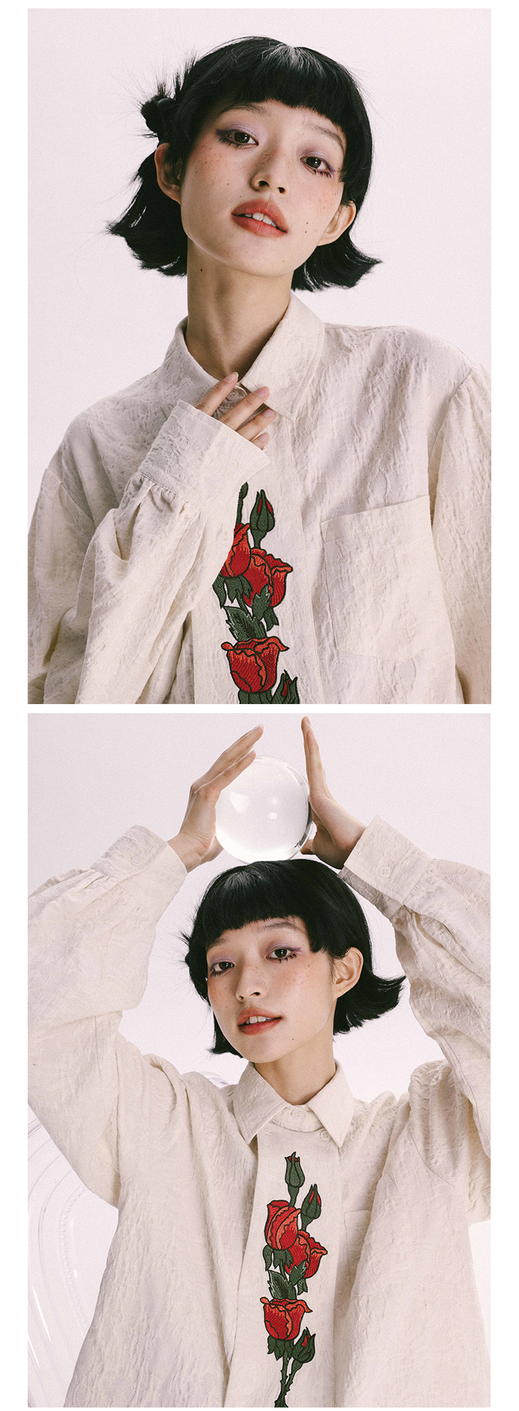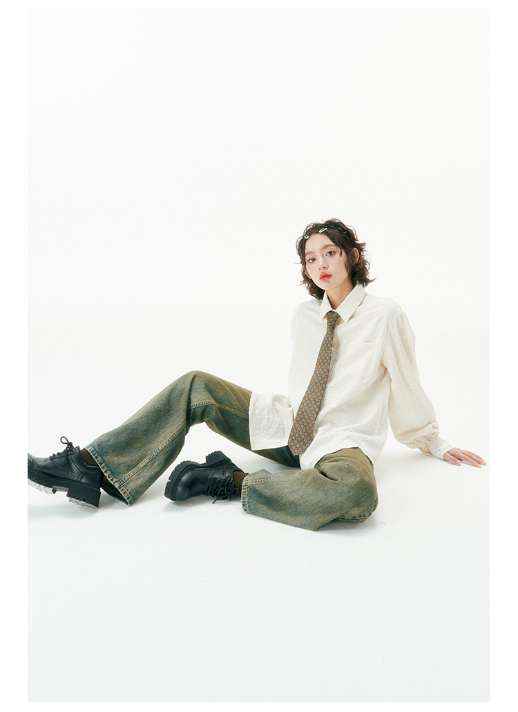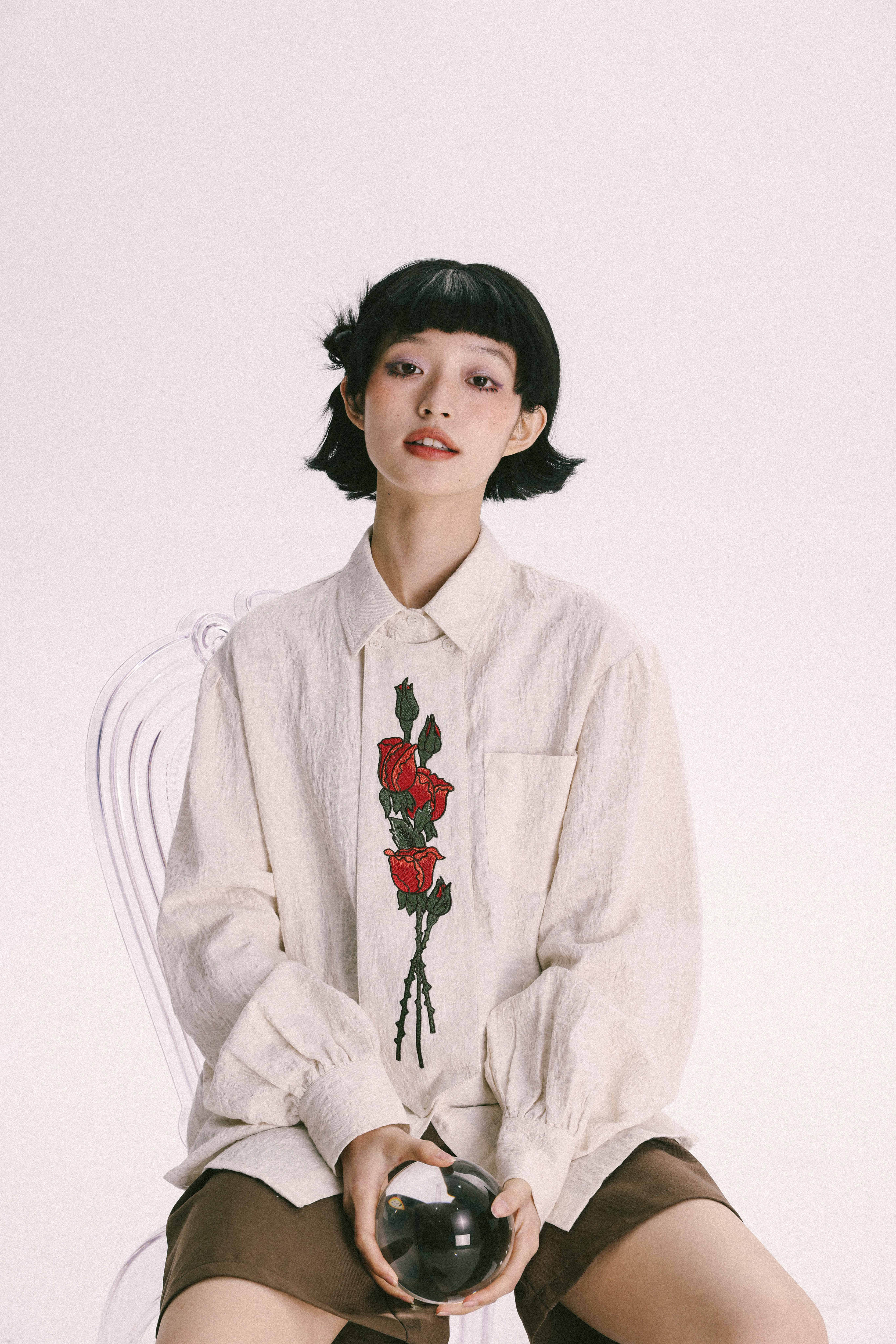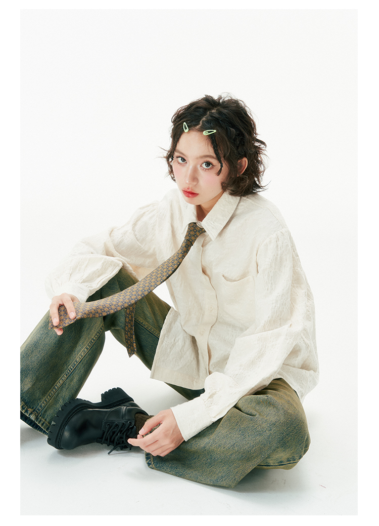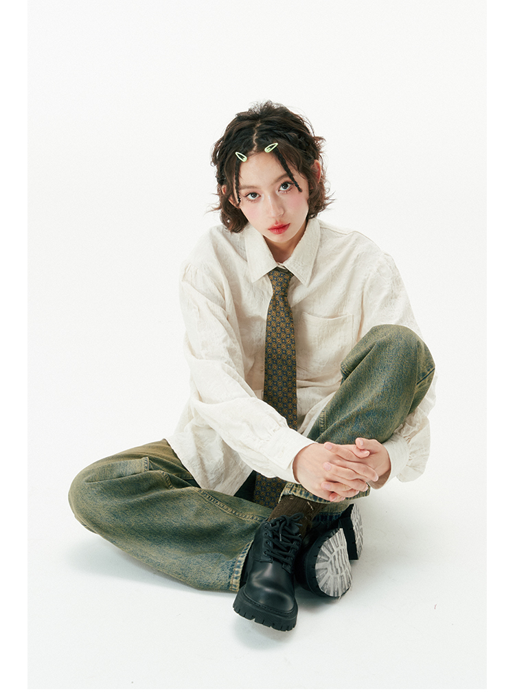 杨二大梦 Оригинальная дизайнерская ретро осенняя рубашка, термобелье, с вышивкой, тренд сезона