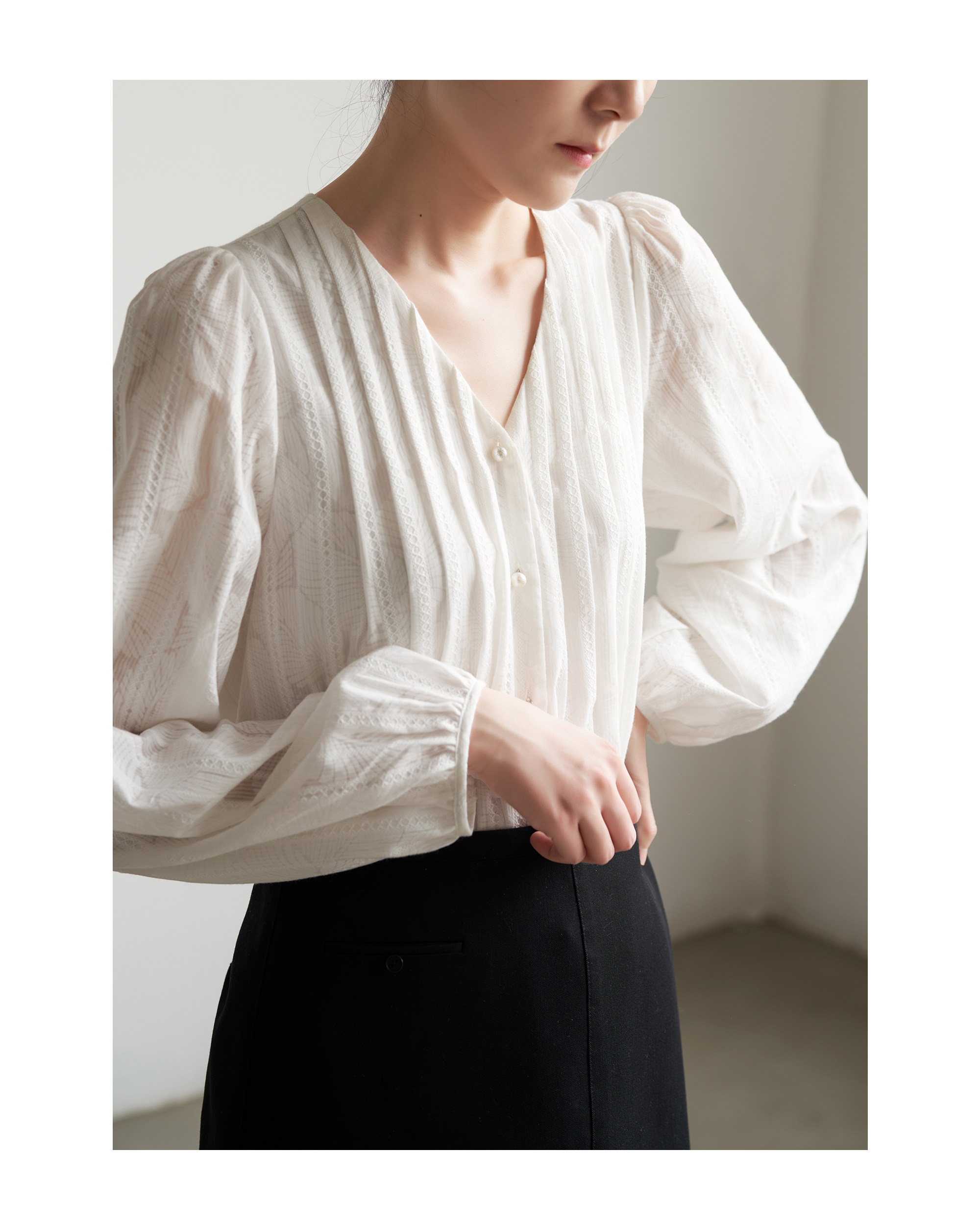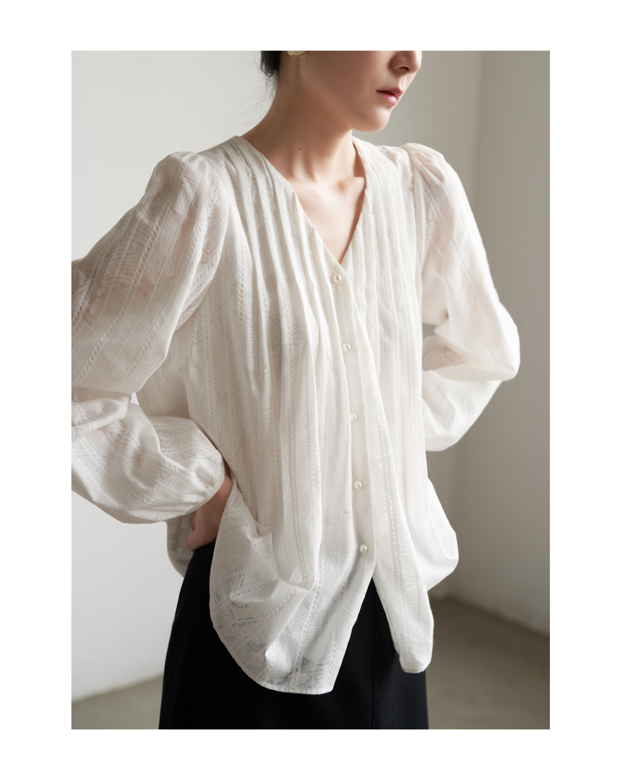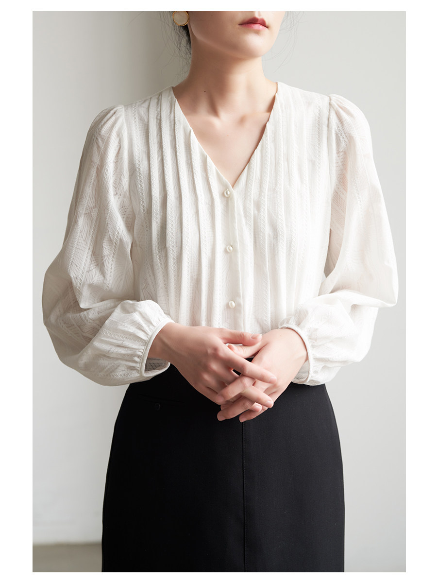 Дизайнерский элегантный фонарь, весенняя рубашка, тренд сезона, V-образный вырез