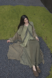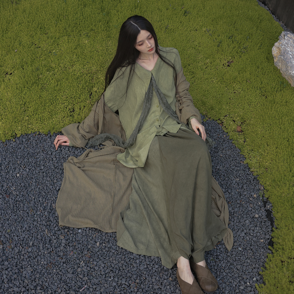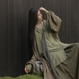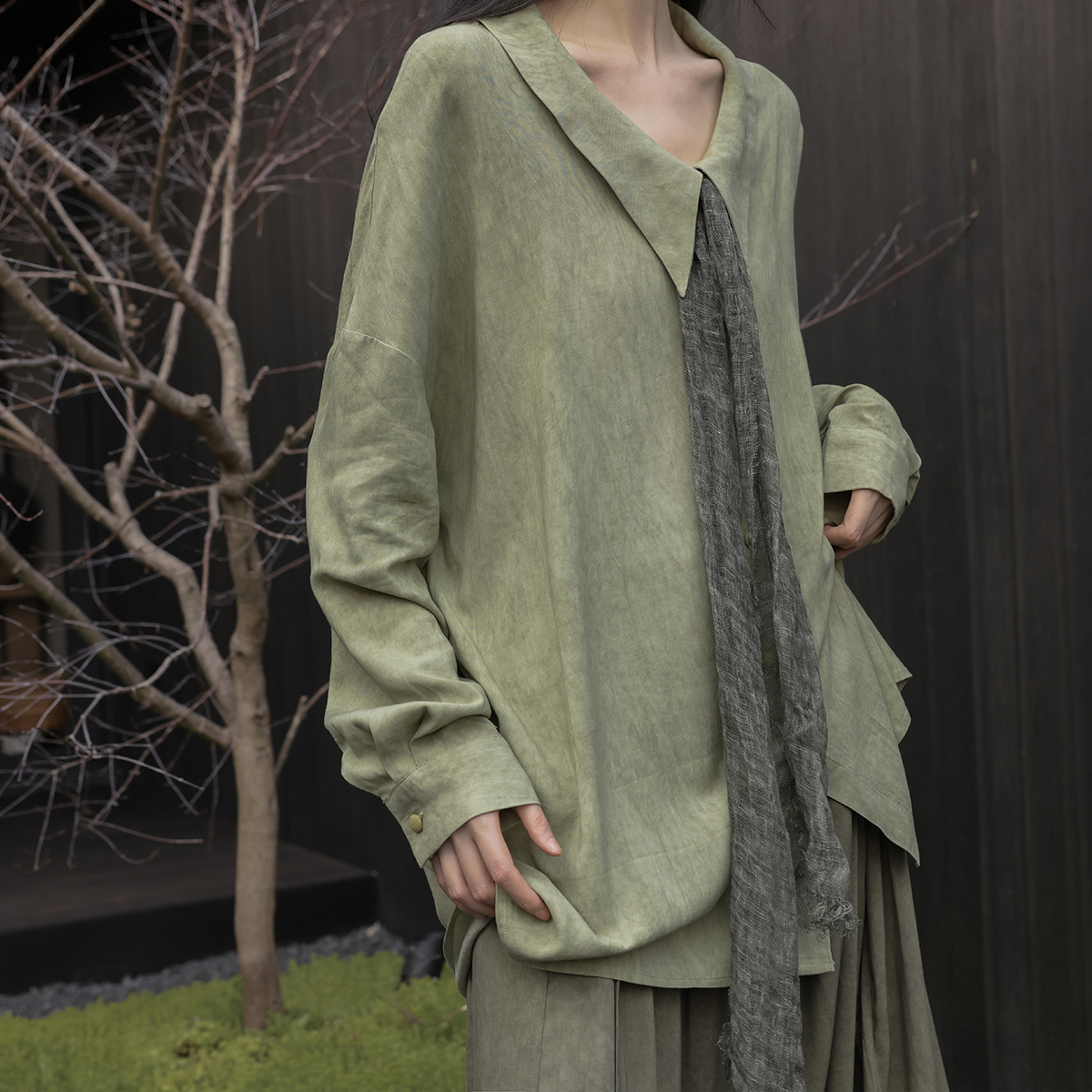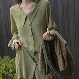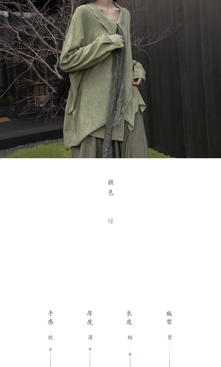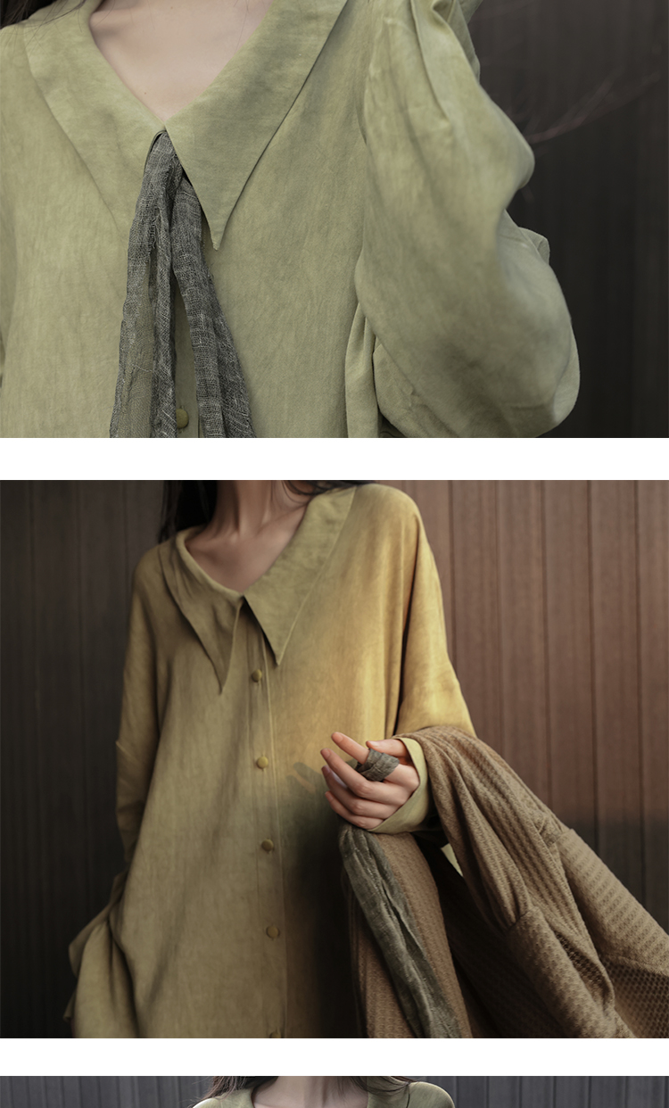 [Lingyi] Чай был зеленым, самостоятельно свободным, цветом с перемешиванием, белой, удобной, длинной повседневной рубашкой