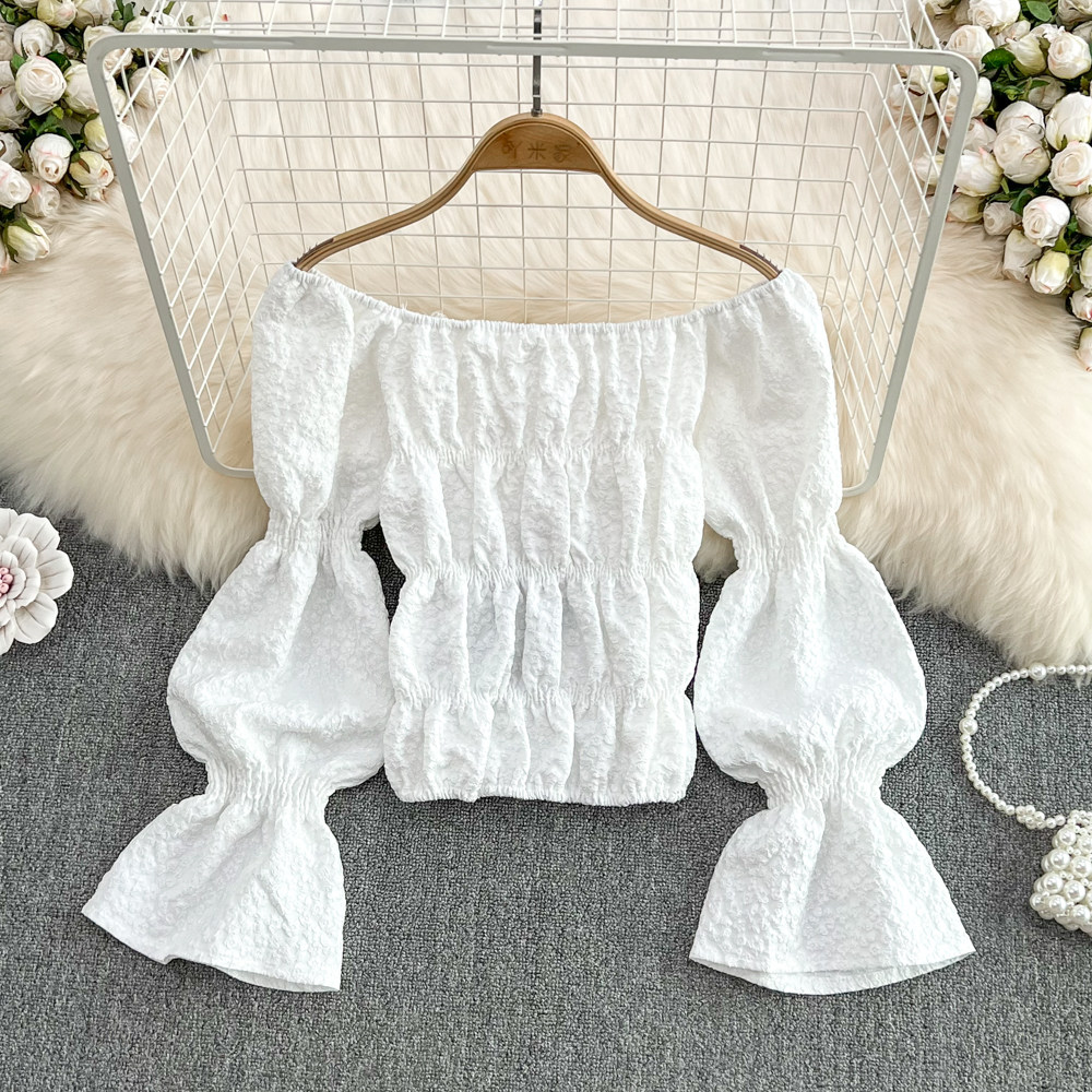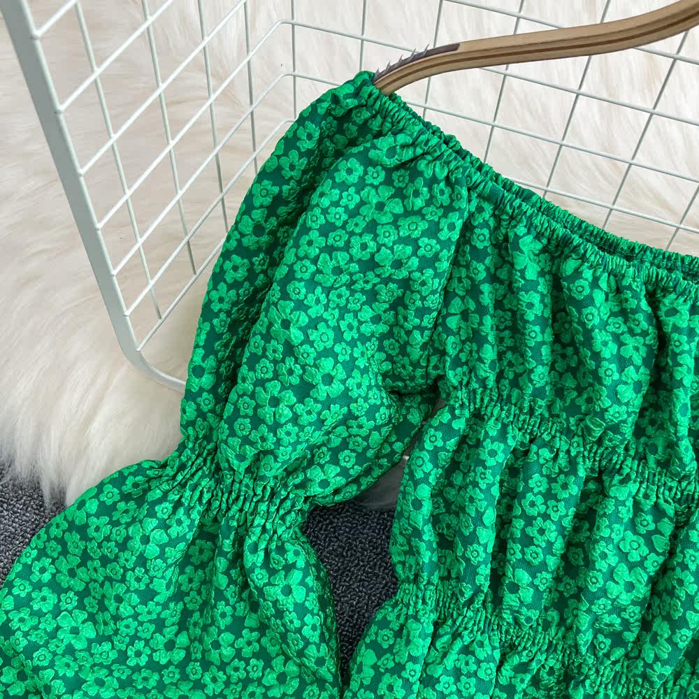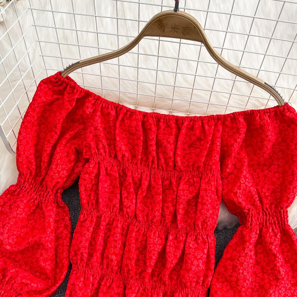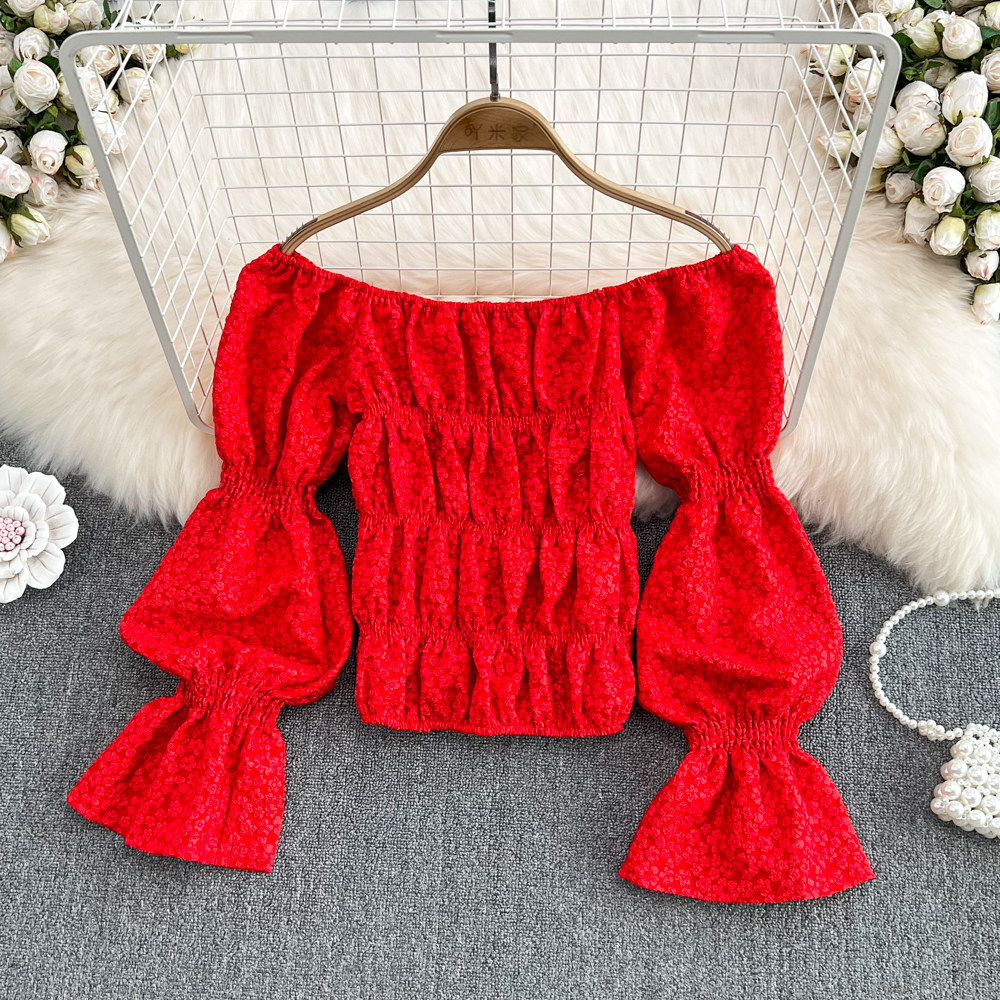 Сексуальная трехмерная короткая рубашка, в корейском стиле, цветочный принт, рукава фонарики, в западном стиле