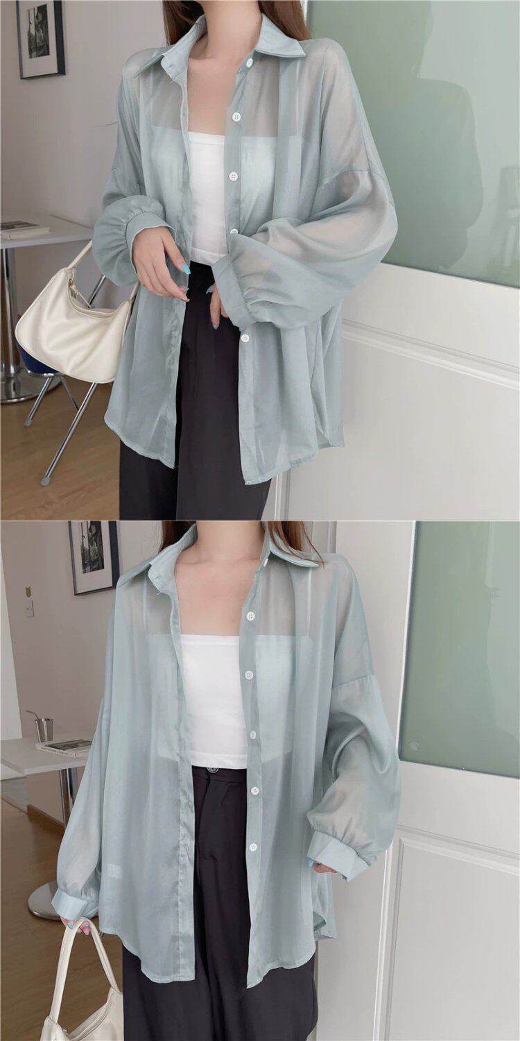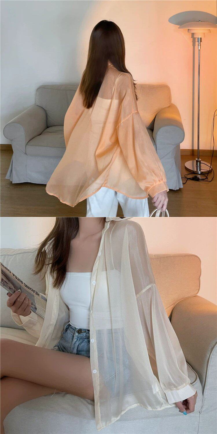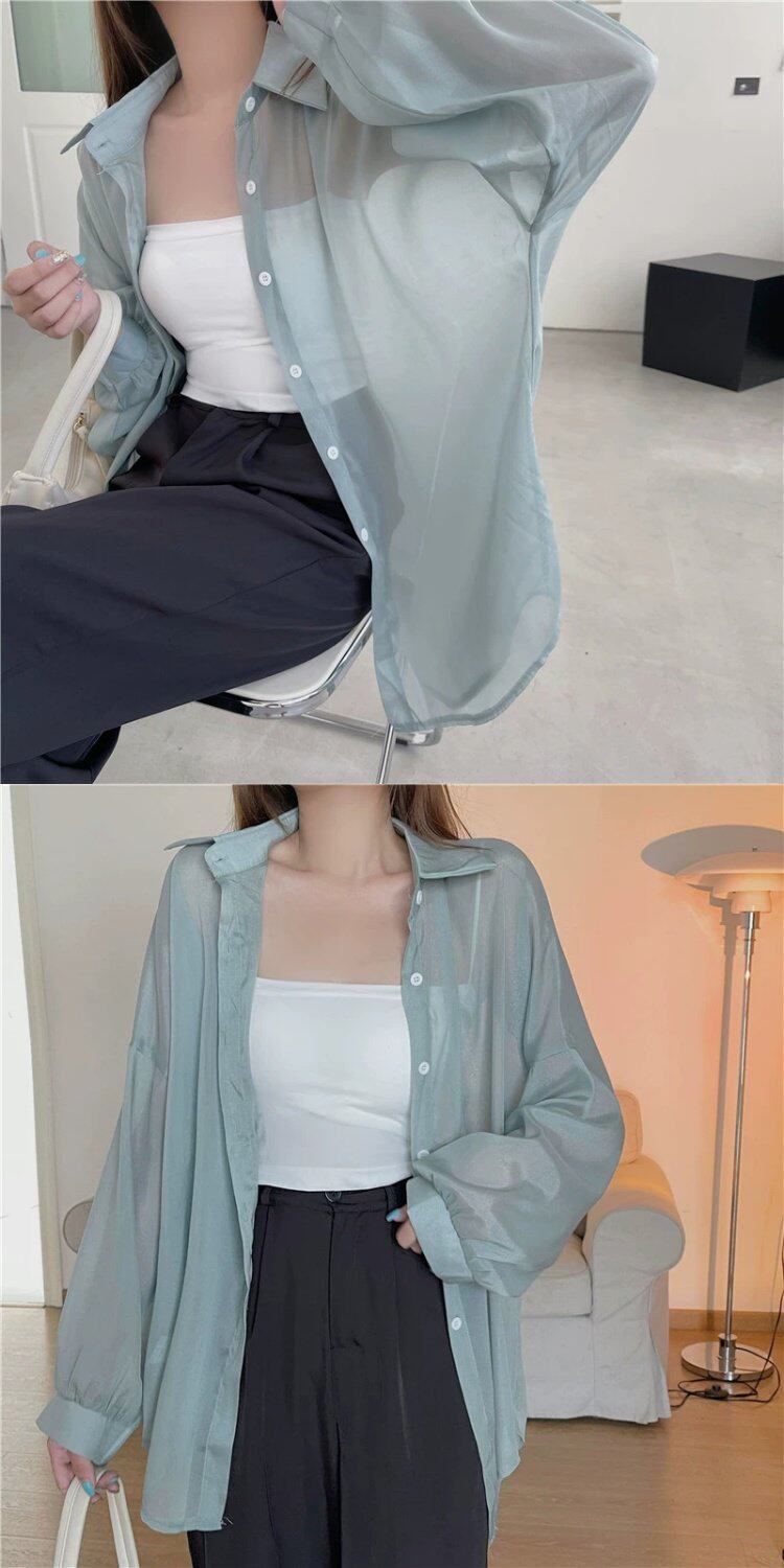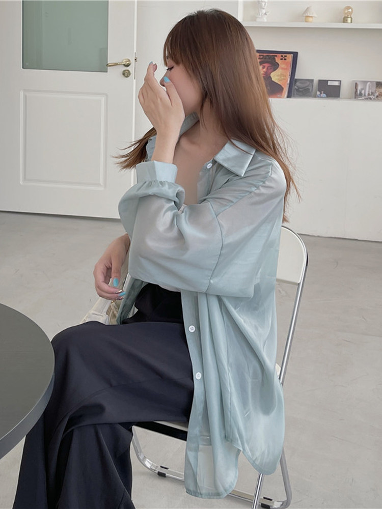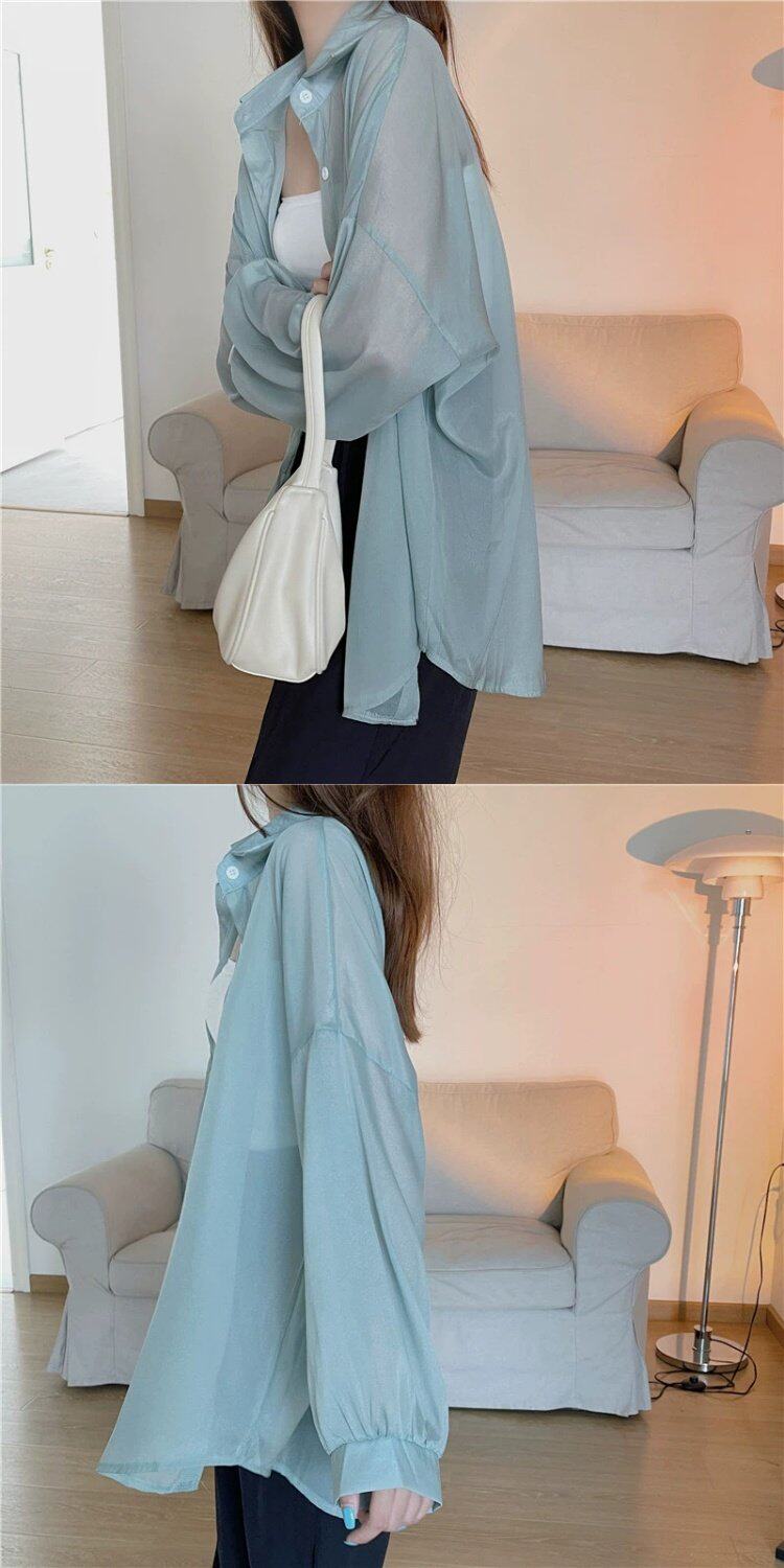 Шелковая дизайнерская длинная одежда для защиты от солнца, легкая и тонкая рубашка, оверсайз, свободный крой, средней длины