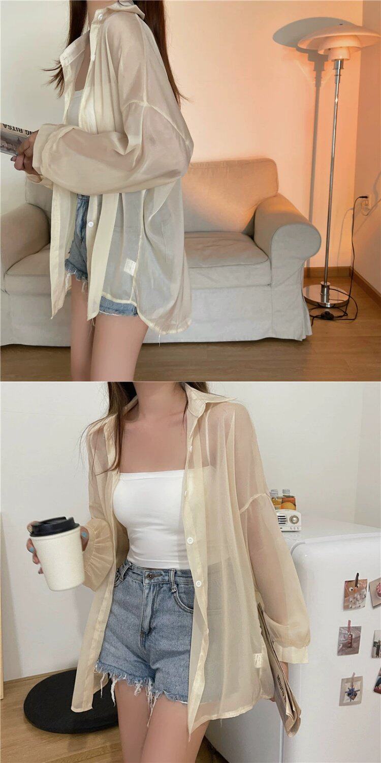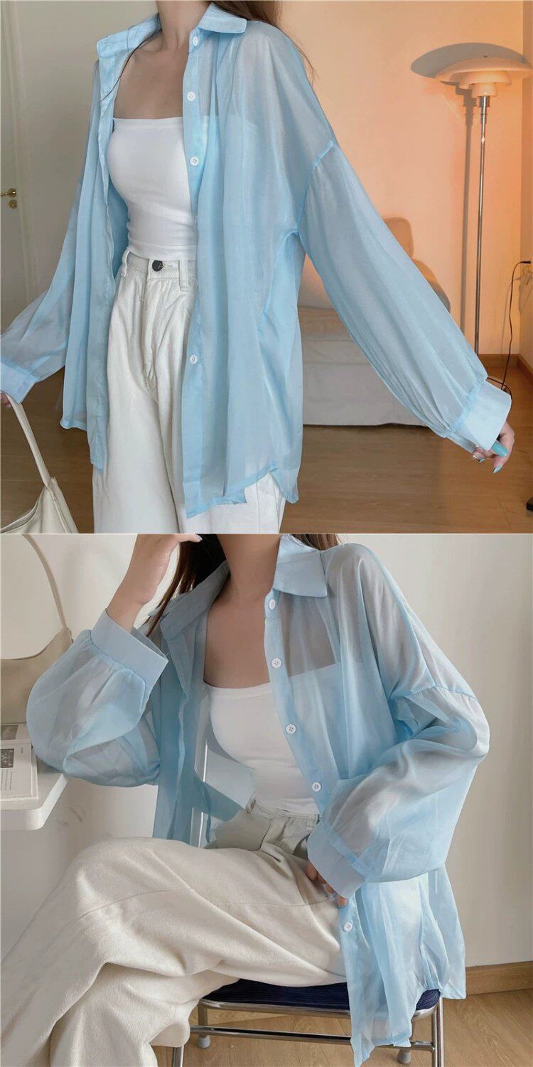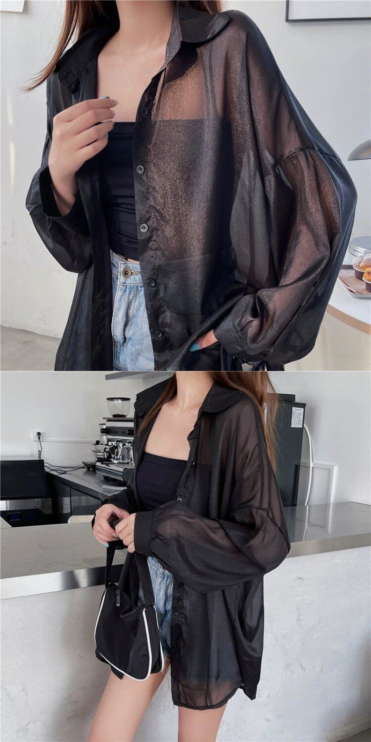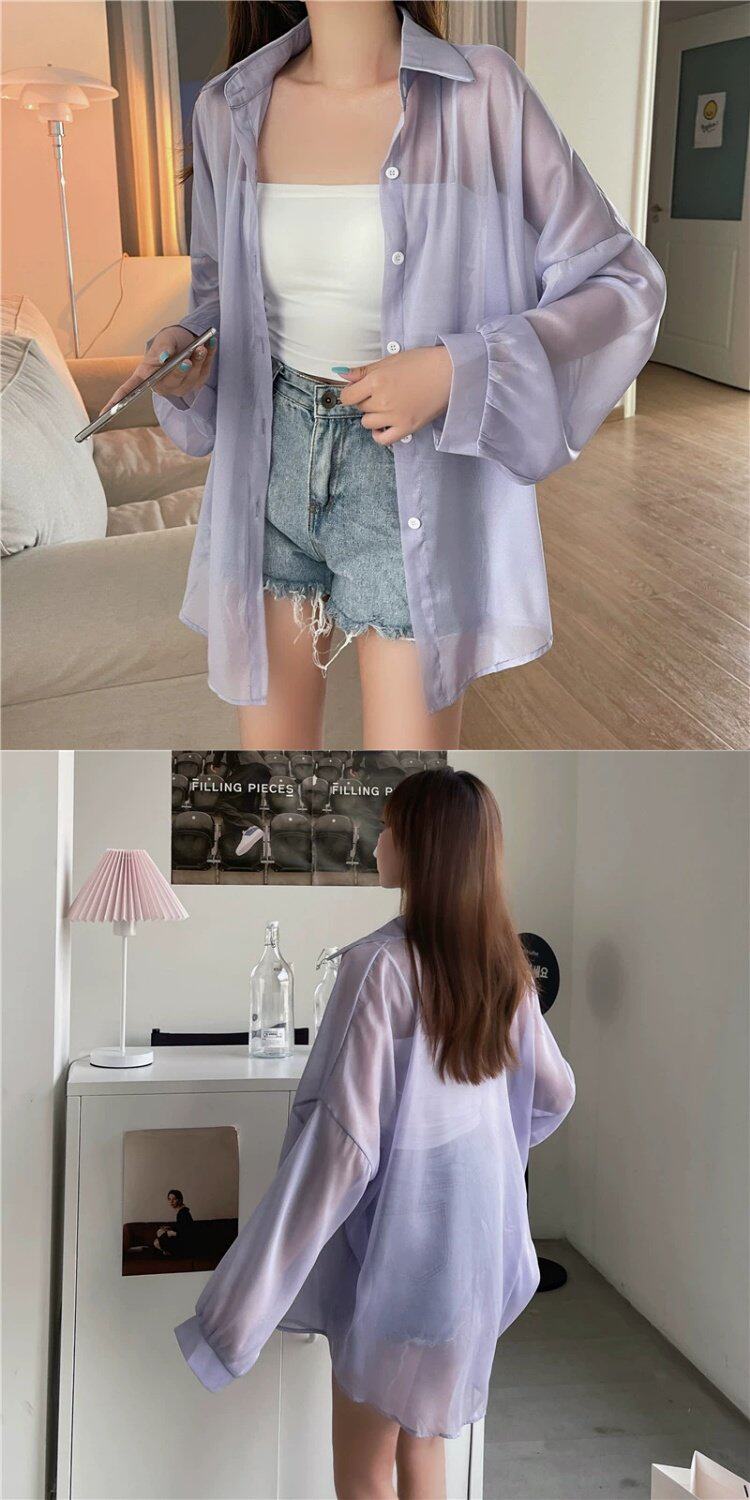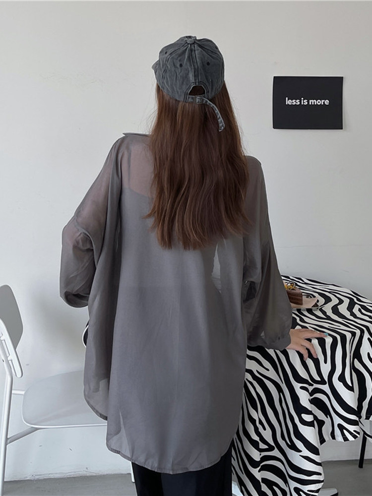 Шелковая дизайнерская длинная одежда для защиты от солнца, легкая и тонкая рубашка, оверсайз, свободный крой, средней длины