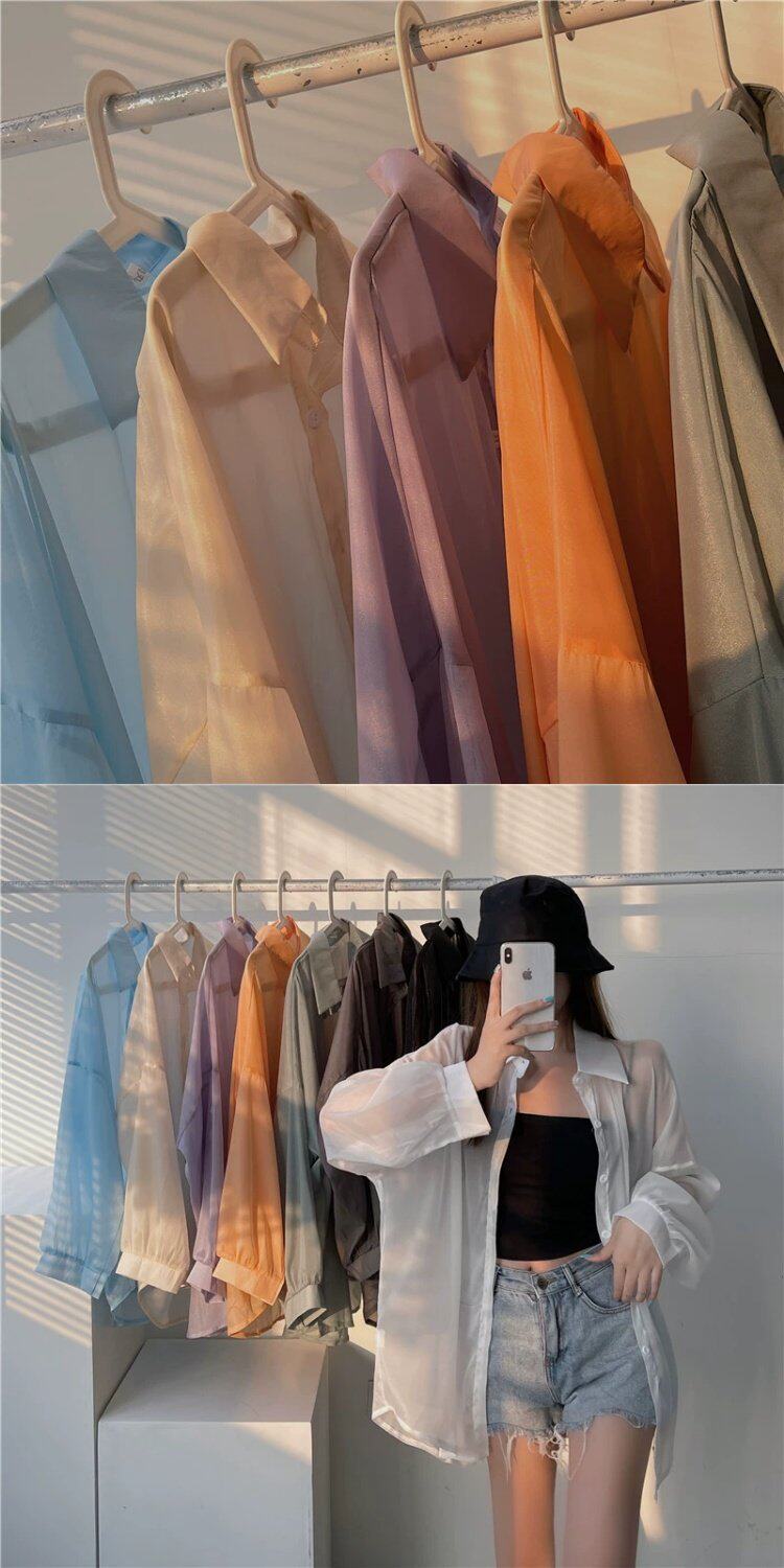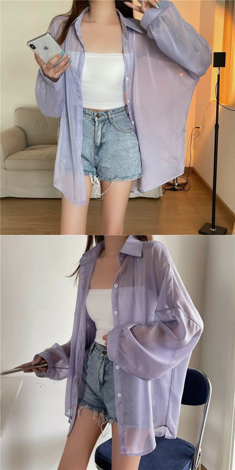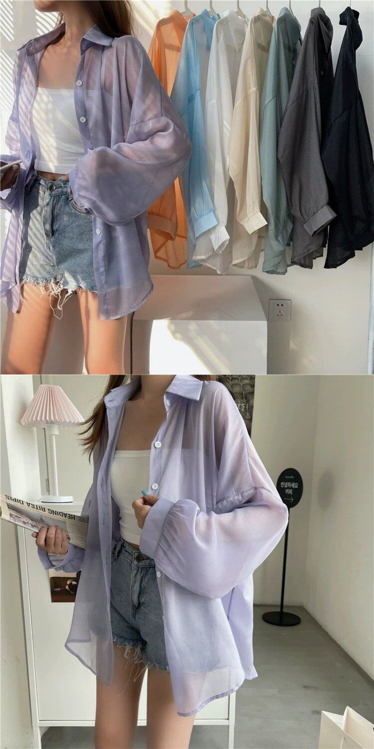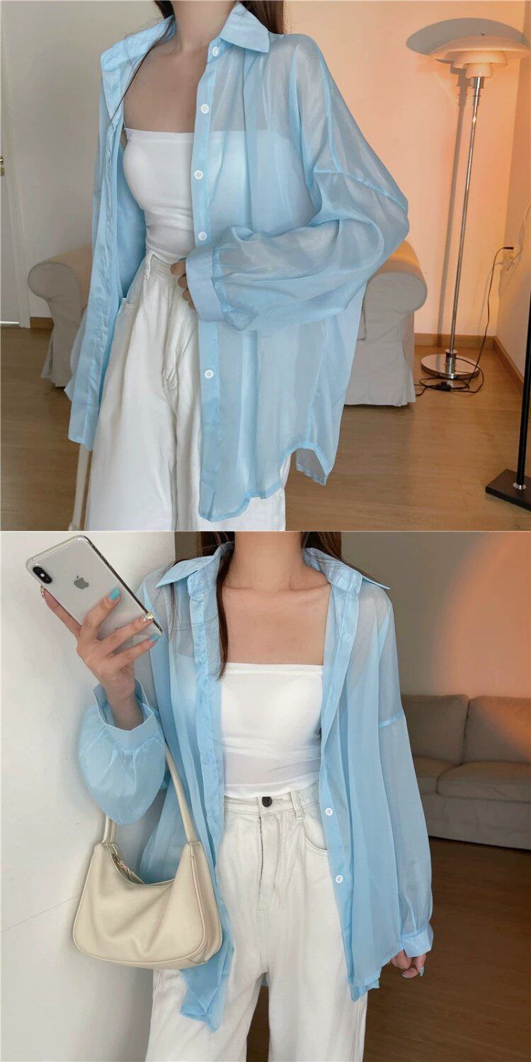Шелковая дизайнерская длинная одежда для защиты от солнца, легкая и тонкая рубашка, оверсайз, свободный крой, средней длины