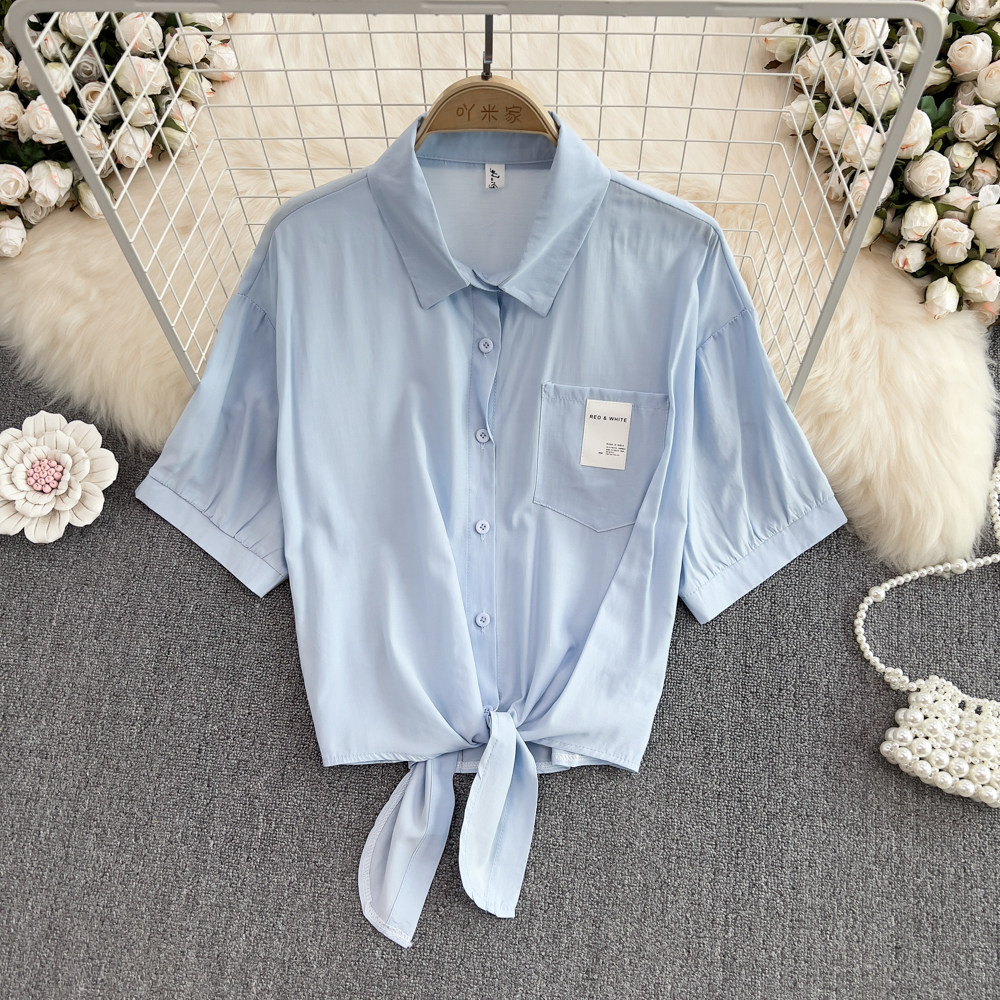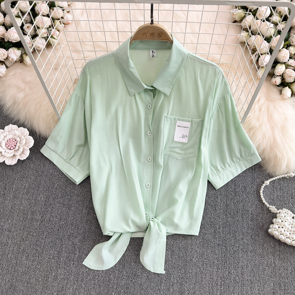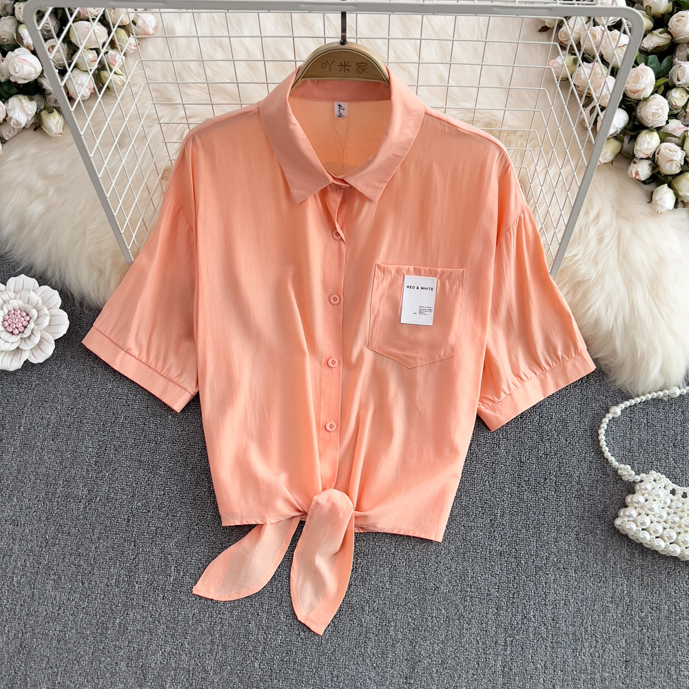 Свежая короткая летняя ретро рубашка, облегающий крой