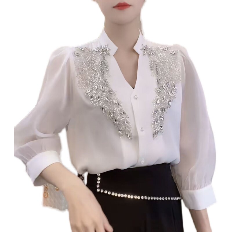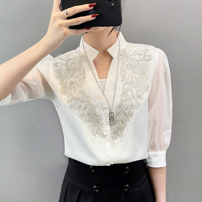 Летняя рубашка, дизайнерская футболка, французский стиль, V-образный вырез, 2024 года, тренд сезона