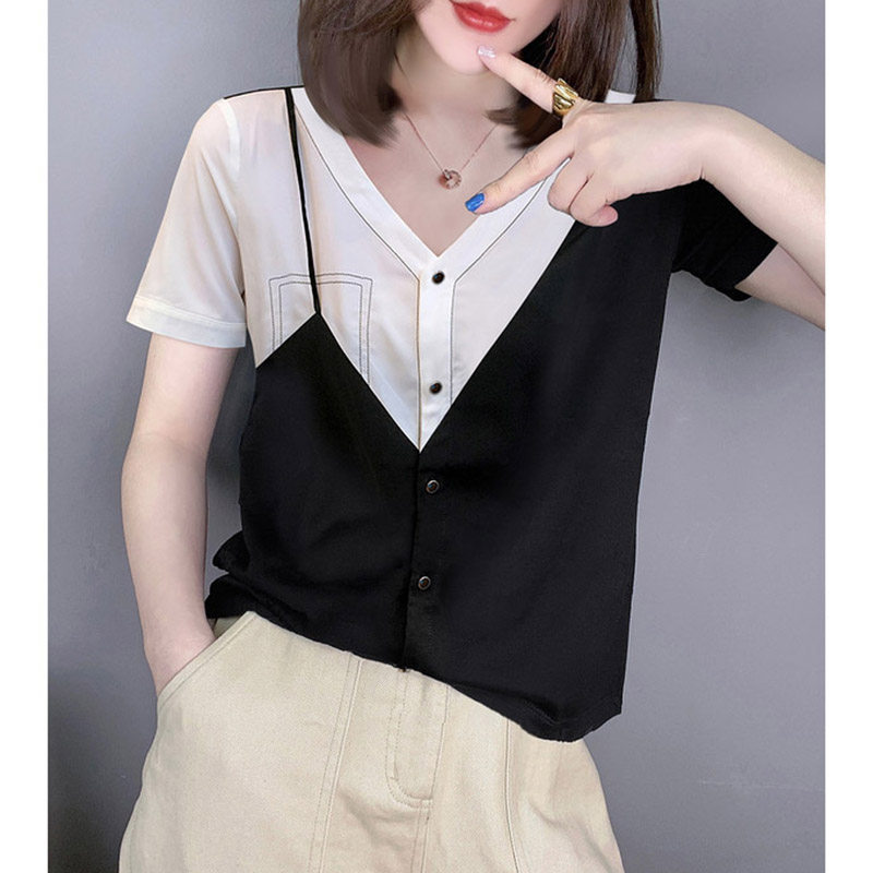 Элитная шелковая летняя рубашка для отдыха, V-образный вырез, короткий рукав