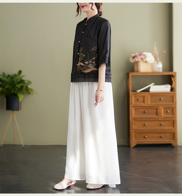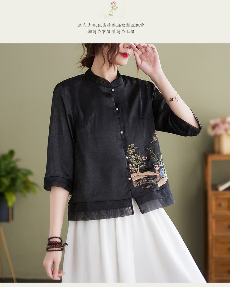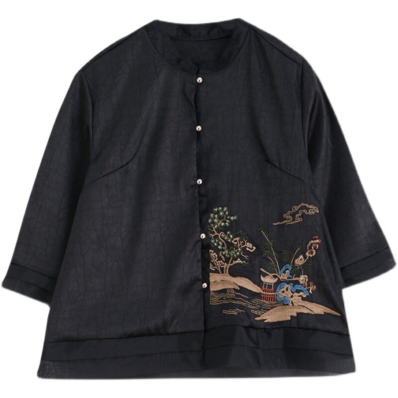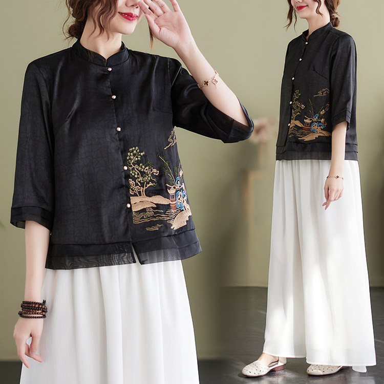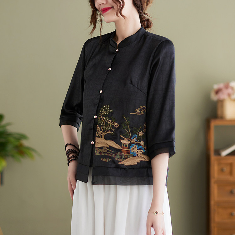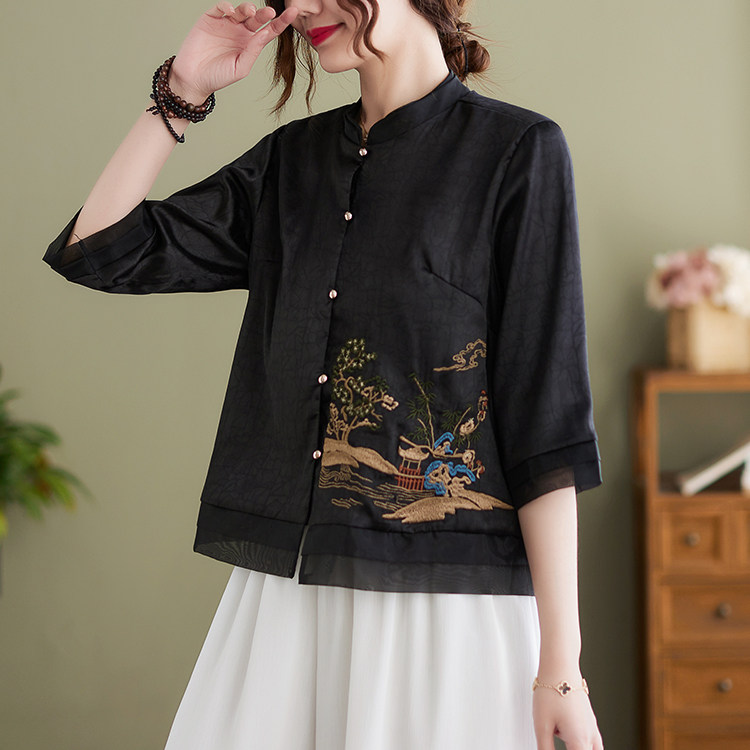 Летняя ретро короткая рубашка, 2023, с вышивкой, в западном стиле