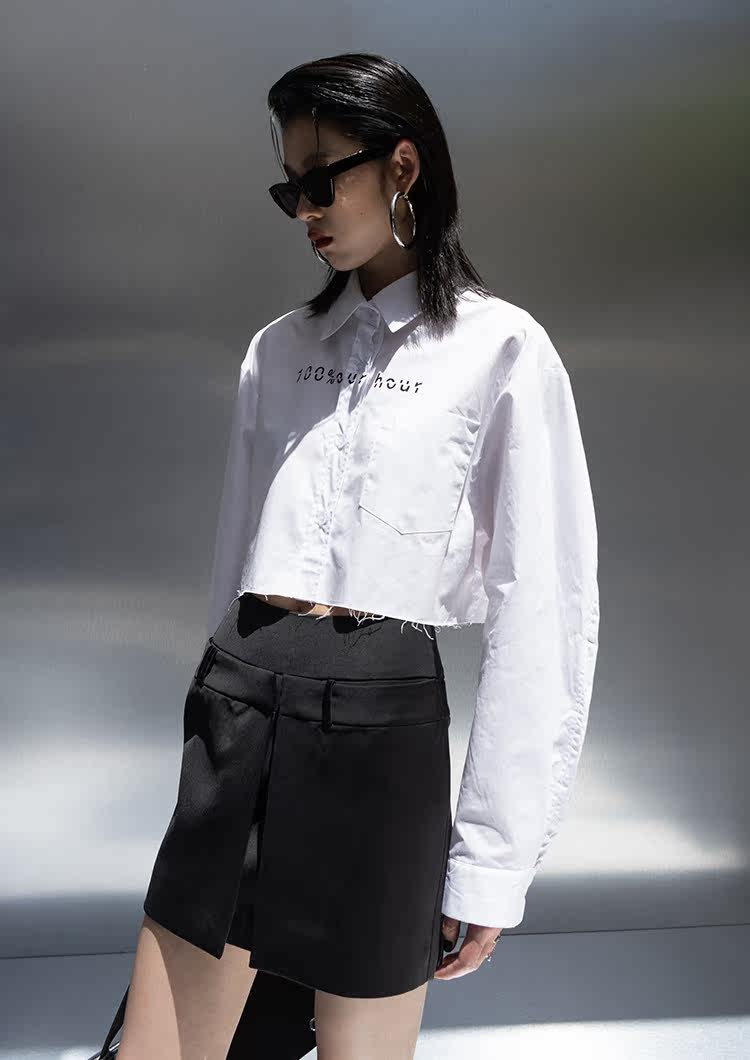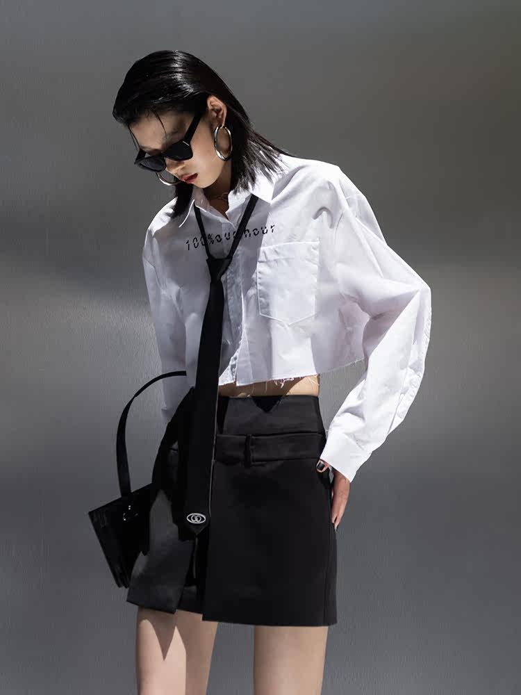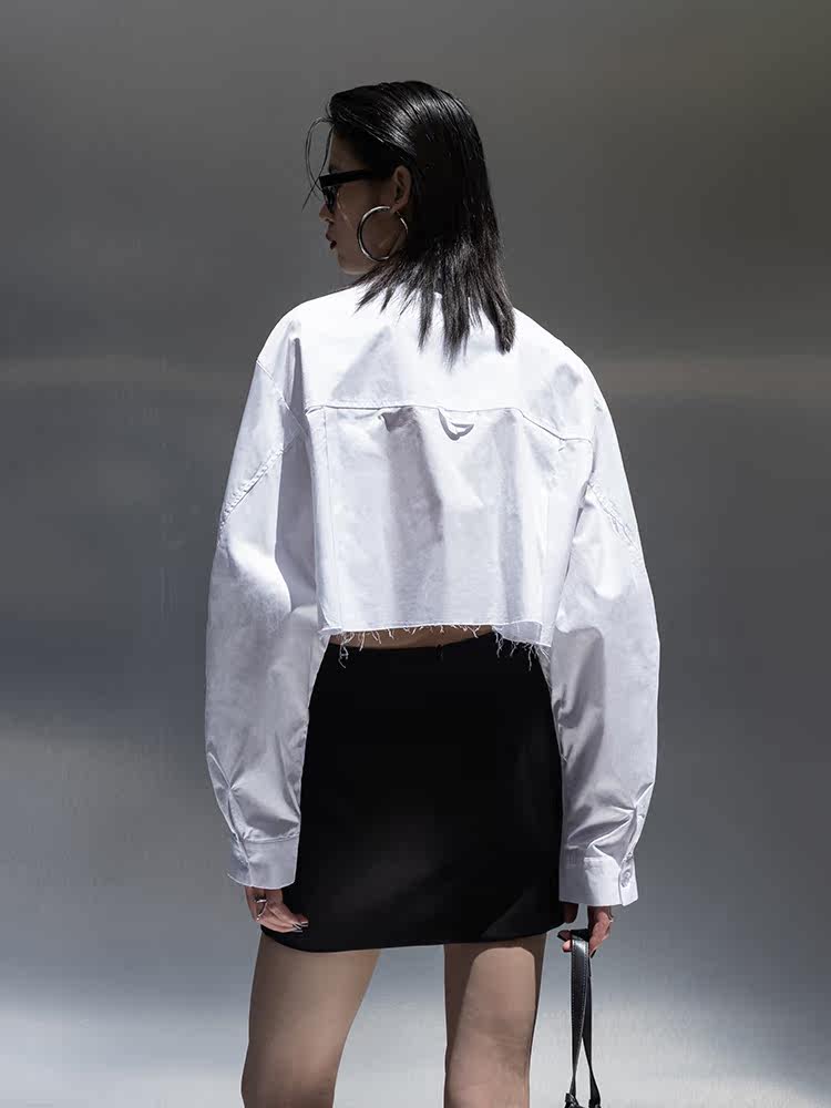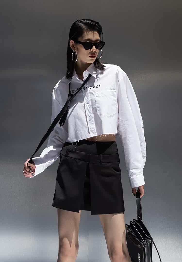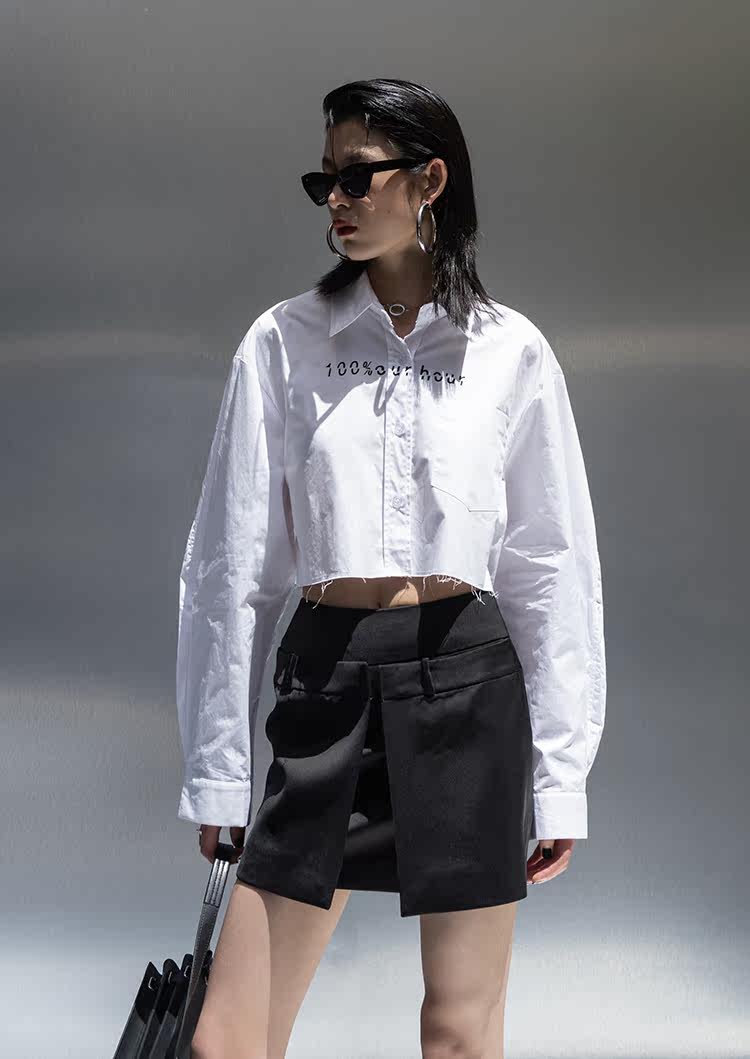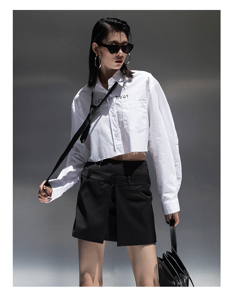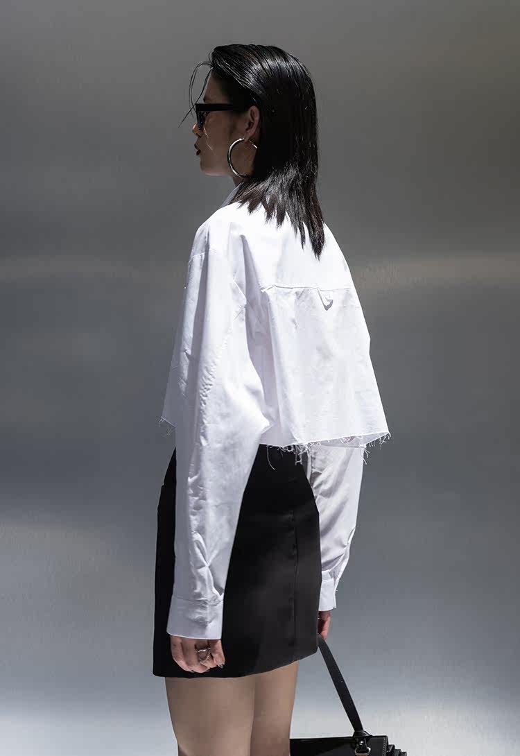 Оригинальная короткая белая рубашка, ассиметричный крой