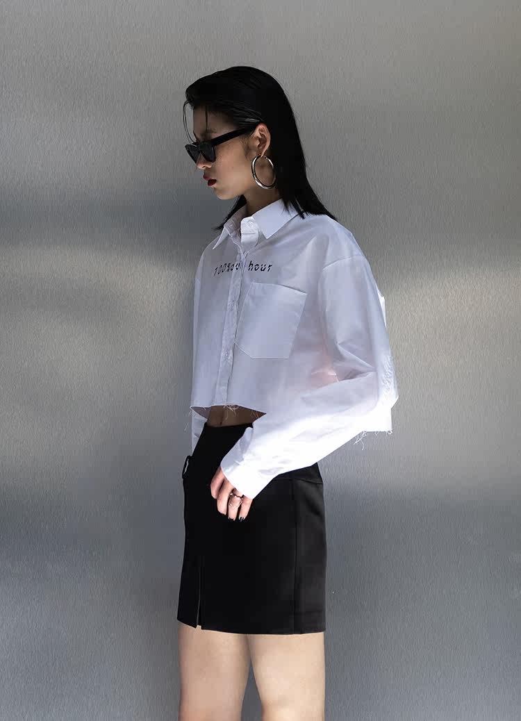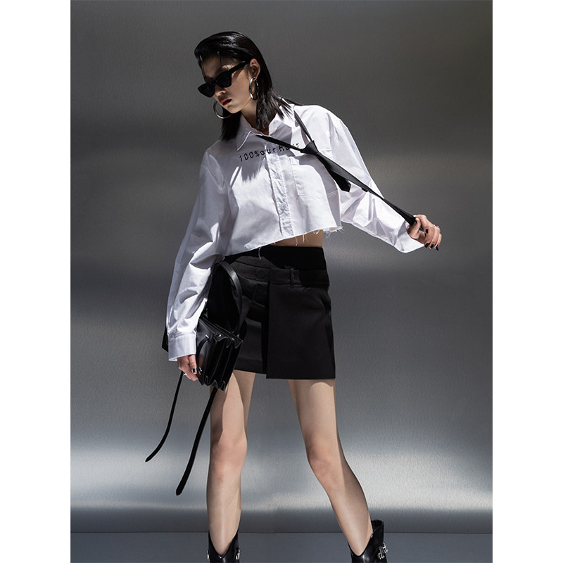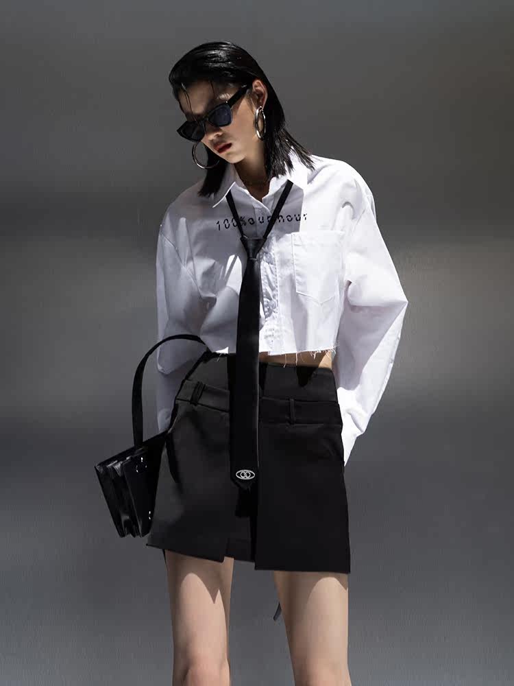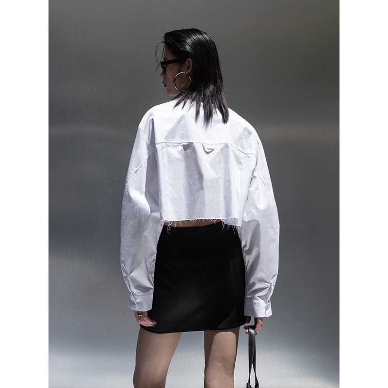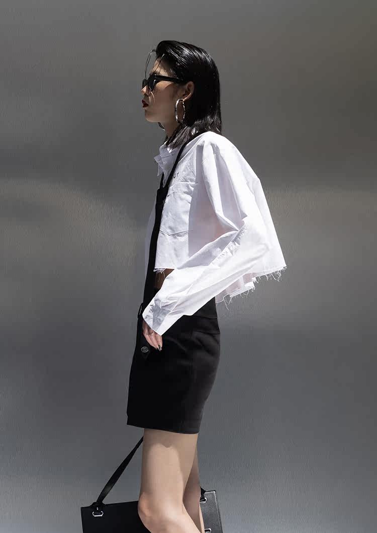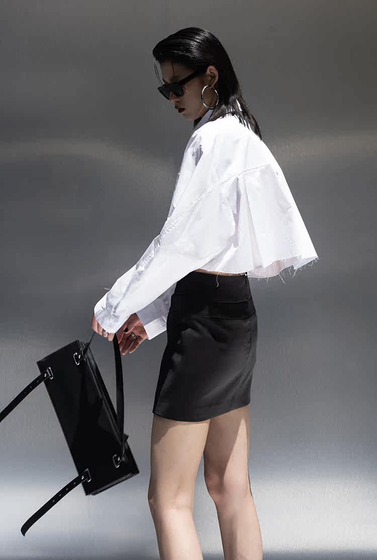 Оригинальная короткая белая рубашка, ассиметричный крой