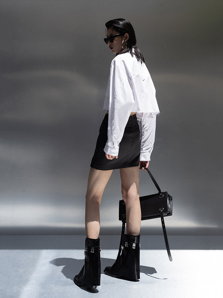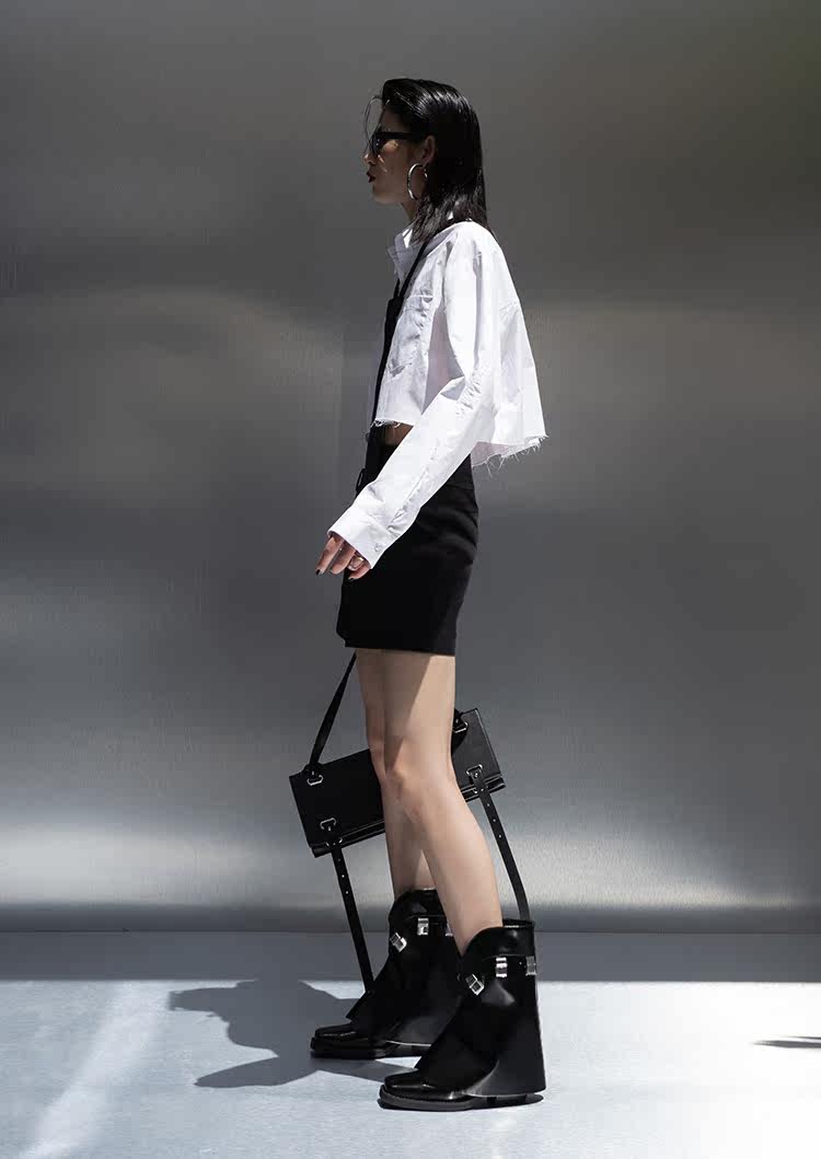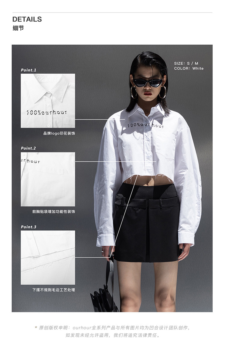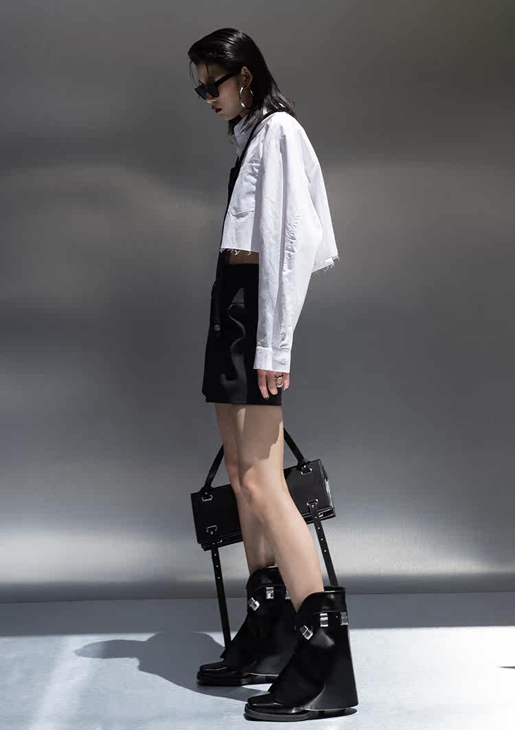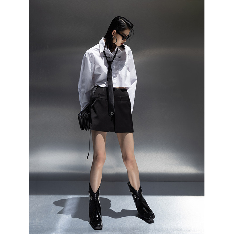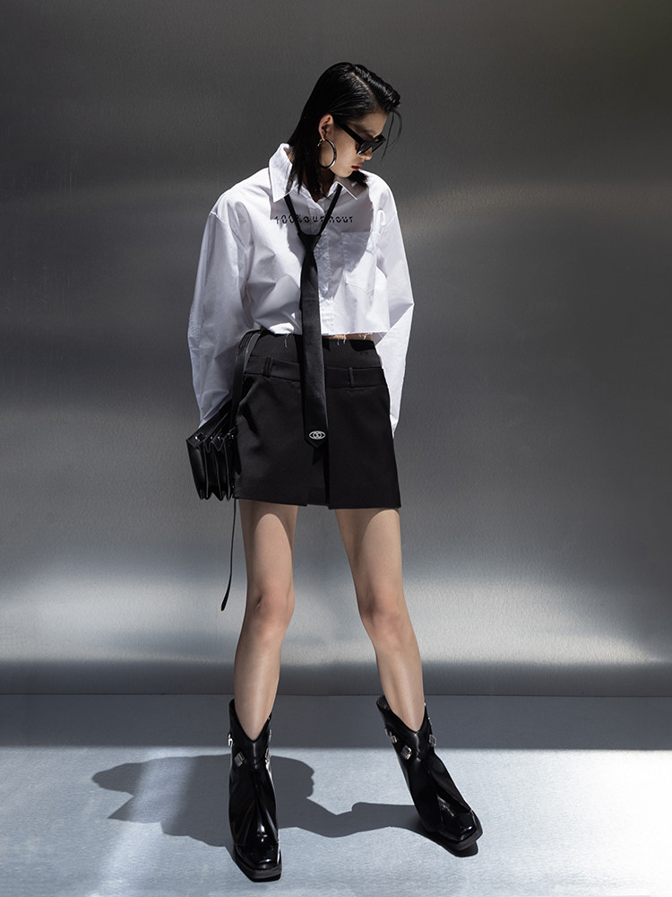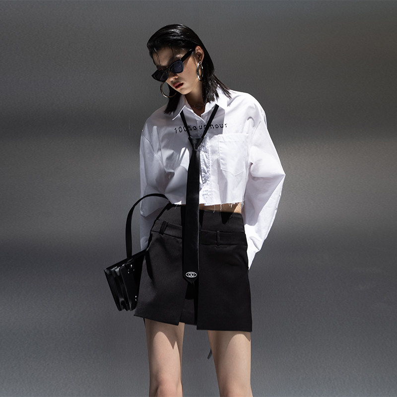 Оригинальная короткая белая рубашка, ассиметричный крой