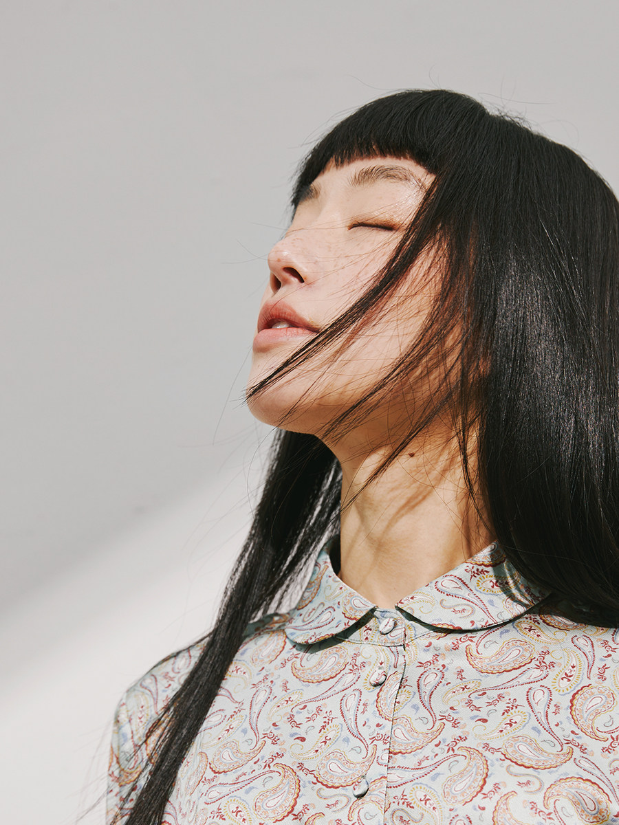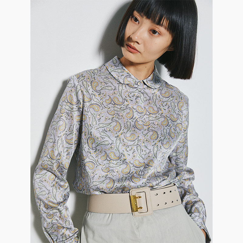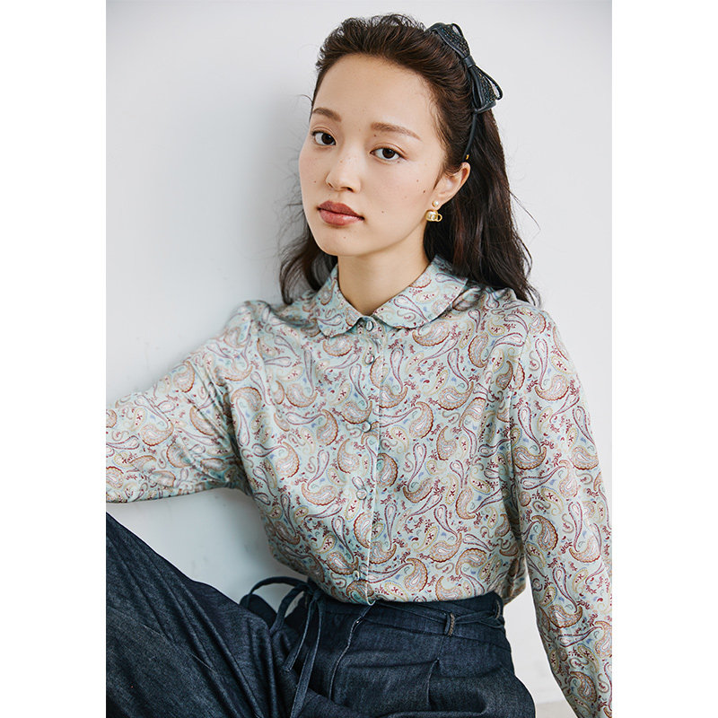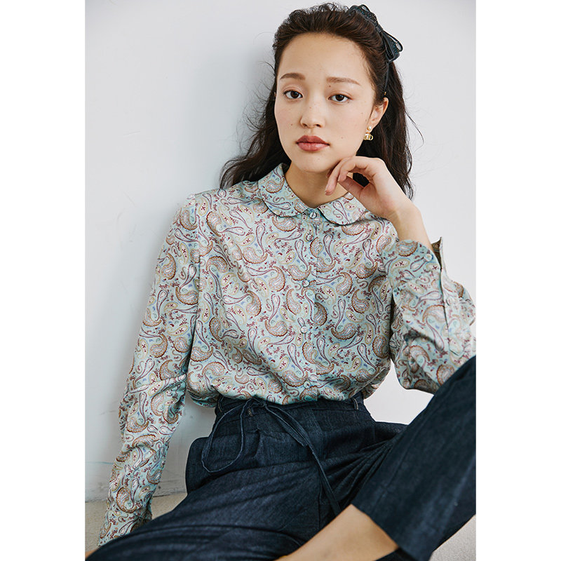 Маленький червя ретро Пэн Пан Аппл воротник игривый возраст экзотический кешью цветочный печатный шелковая рубашка 2 цвет