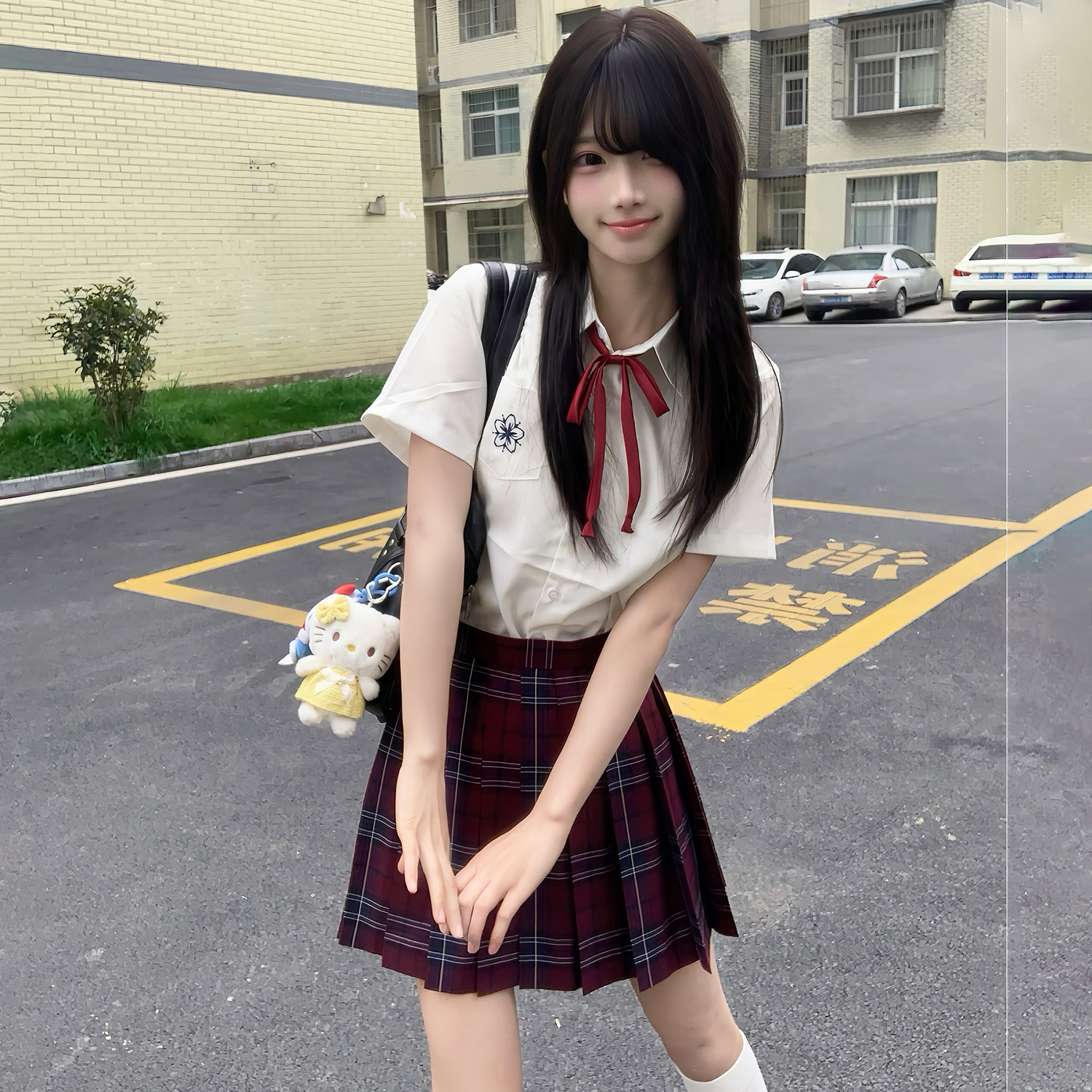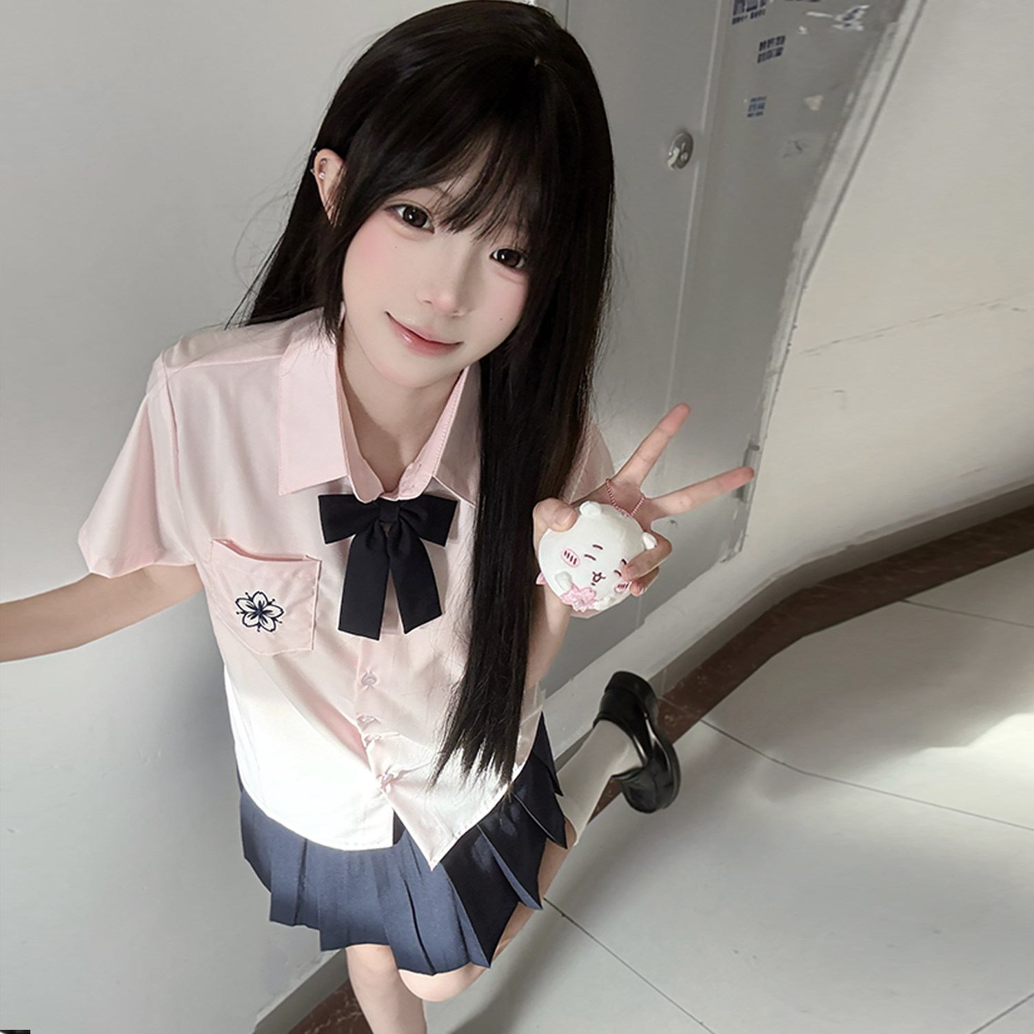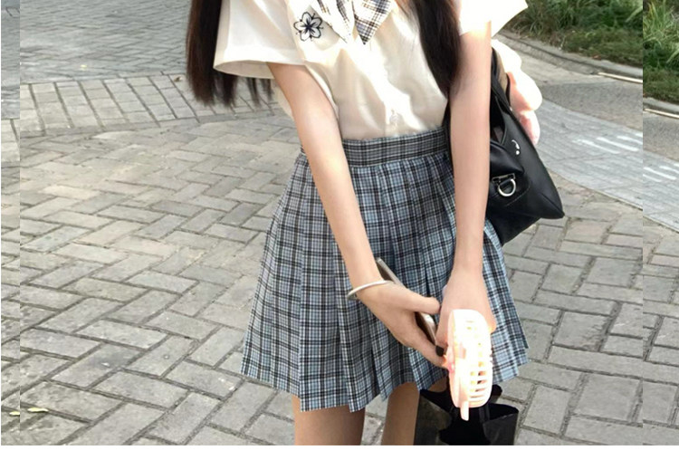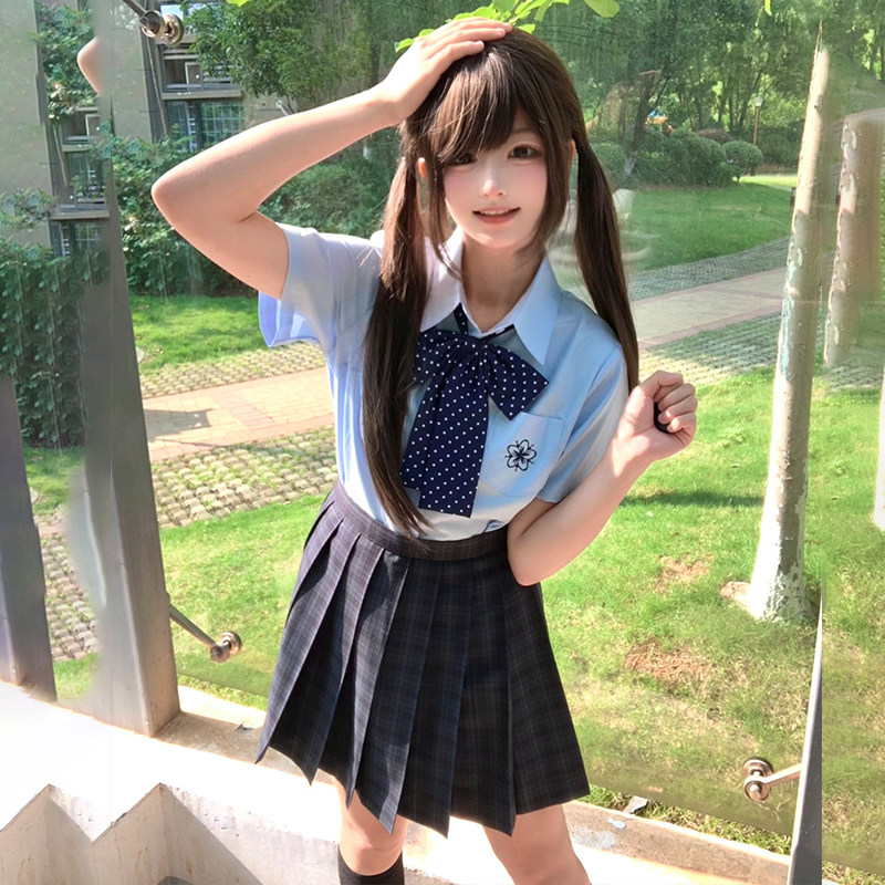 花千猪 Оригинальная рубашка, многоцветная студенческая юбка в складку, с вышивкой