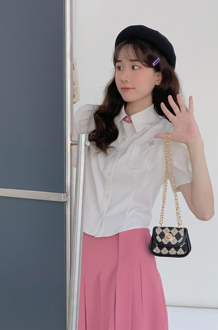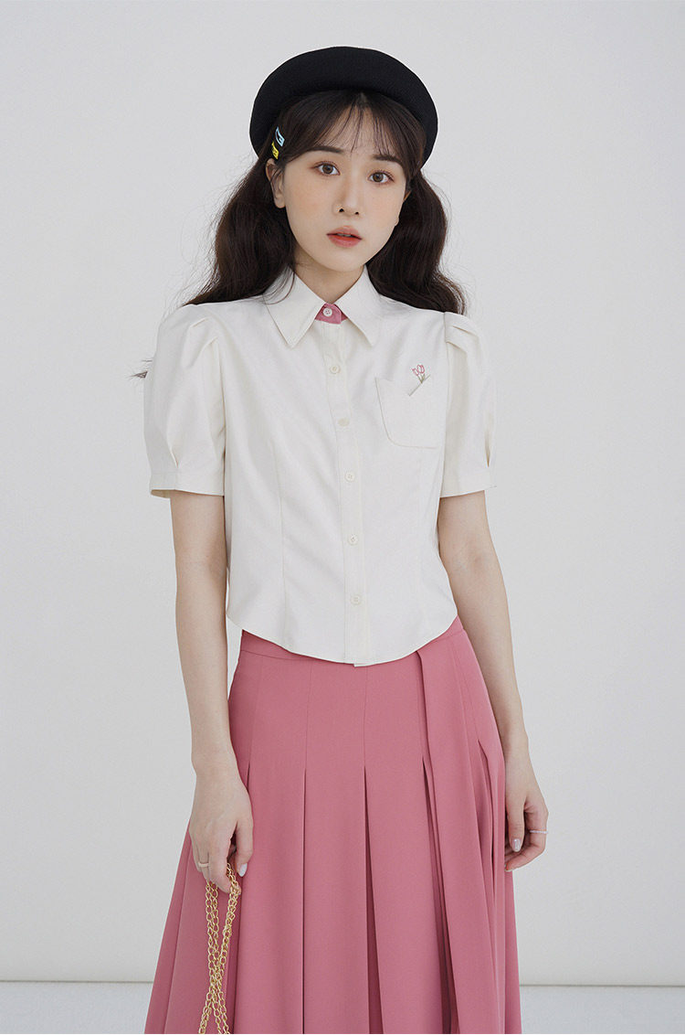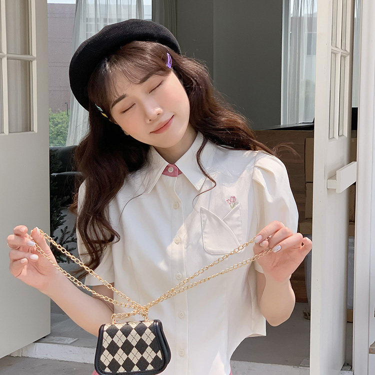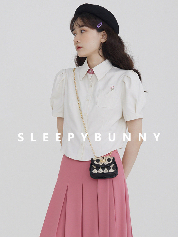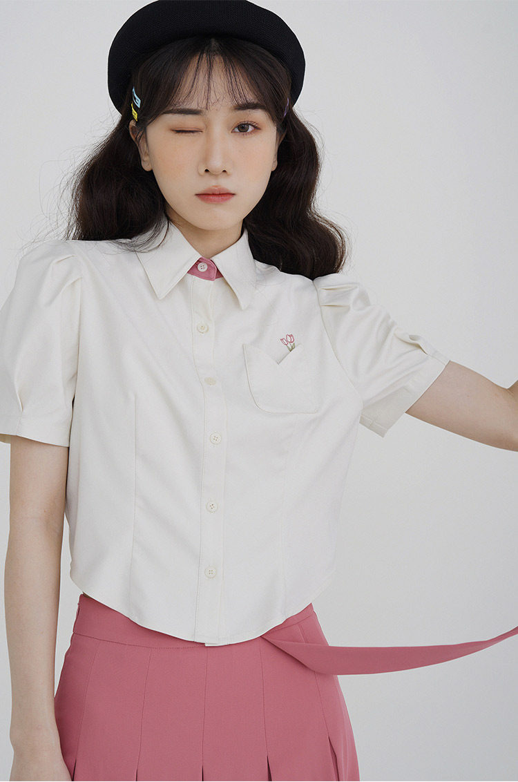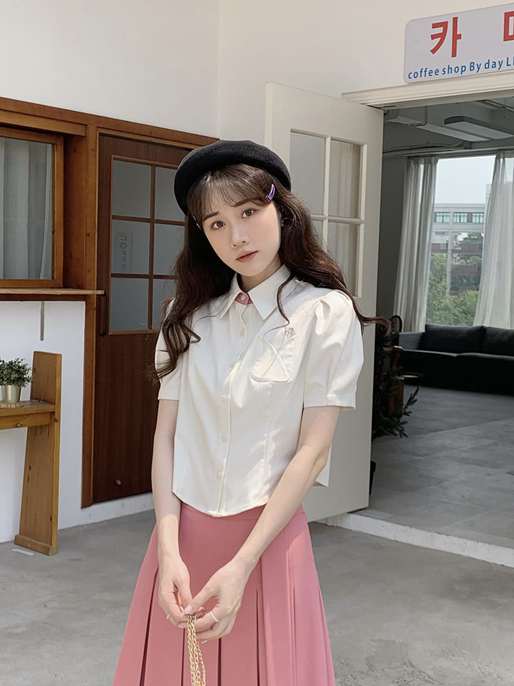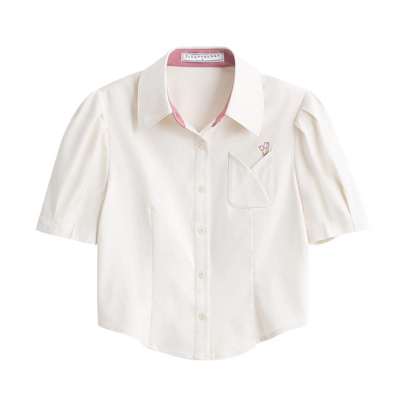 Летняя милая дизайнерская рубашка, короткая футболка, с вышивкой, тренд сезона, рукава фонарики