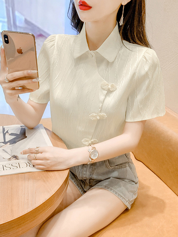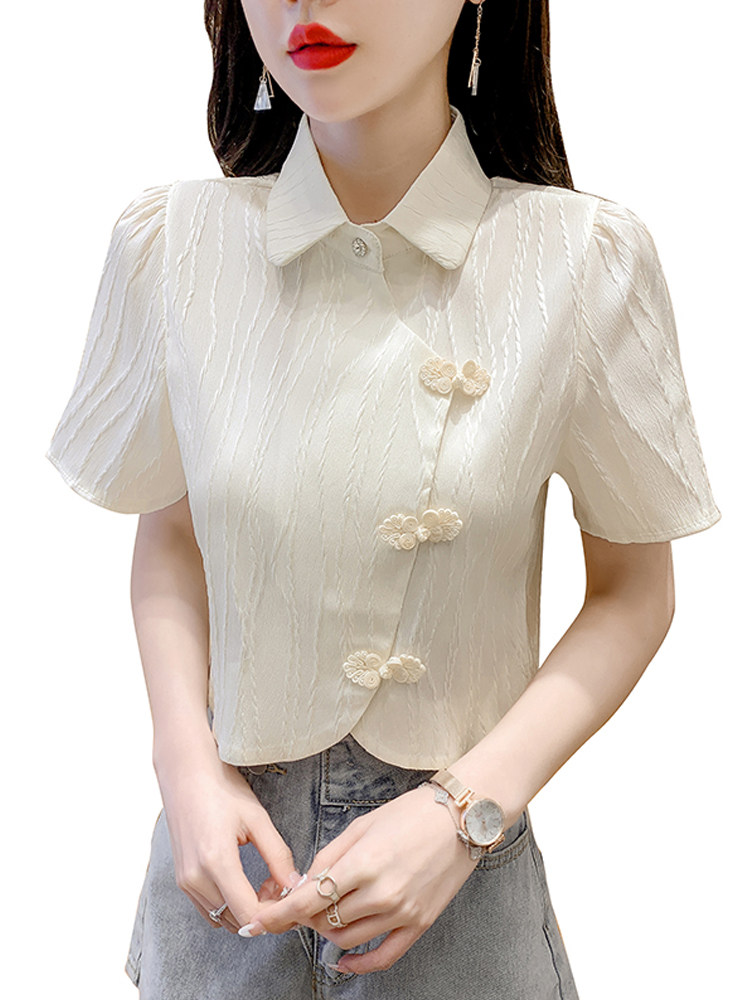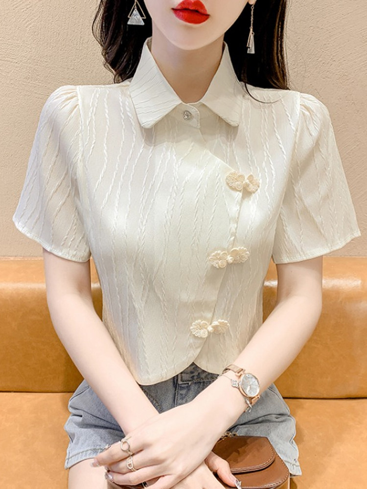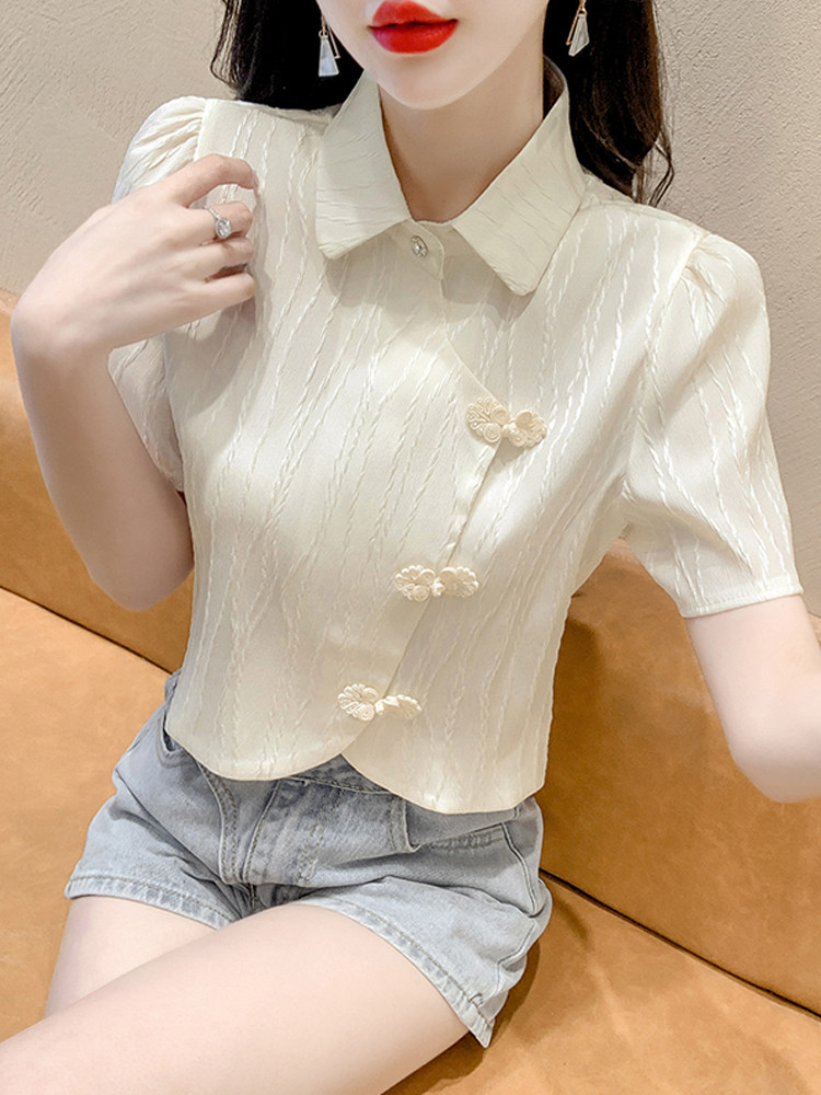 Летняя тонкая дизайнерская короткая ретро рубашка, тренд сезона, коллекция 2022, яркий броский стиль