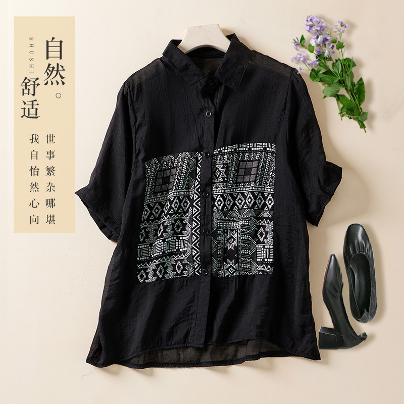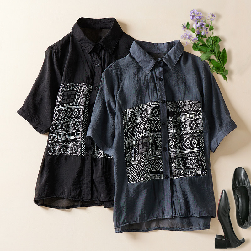 Ретро рубашка, тонкий кардиган, короткий рукав