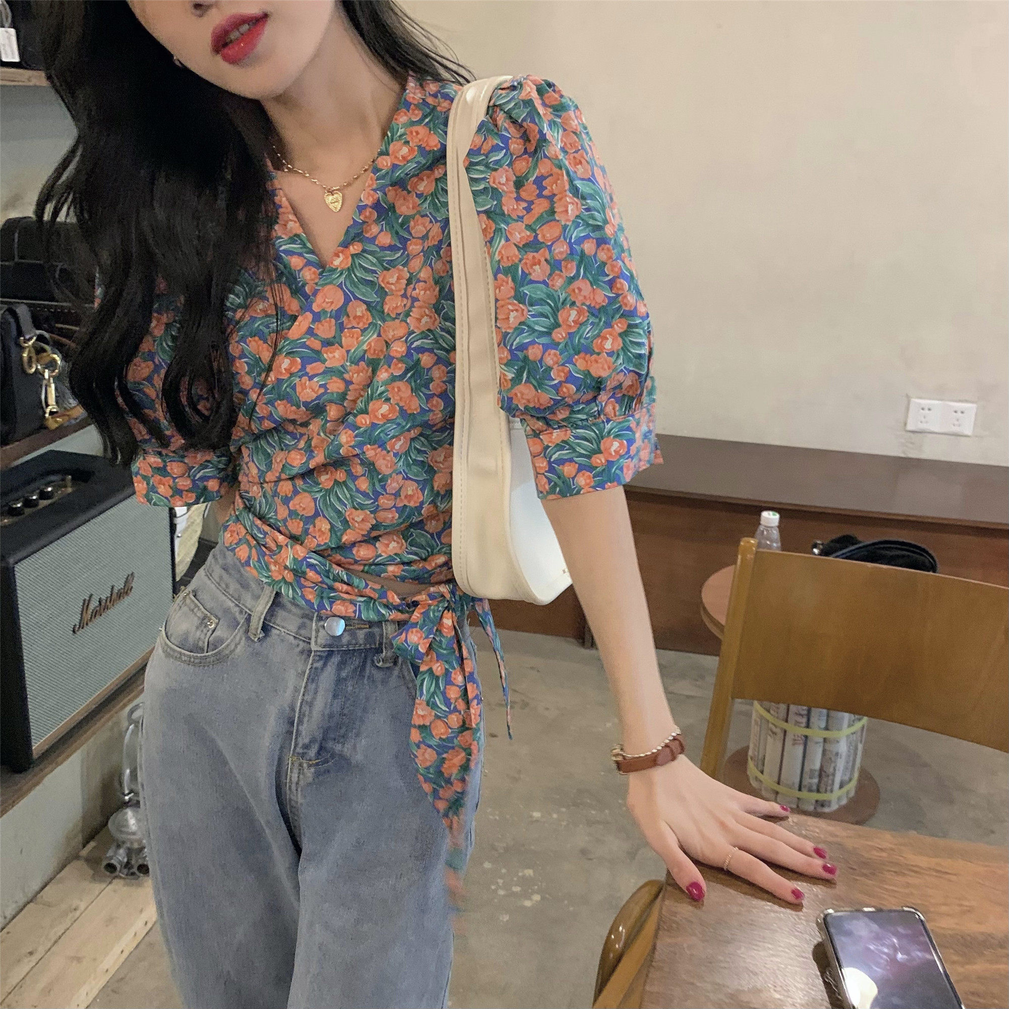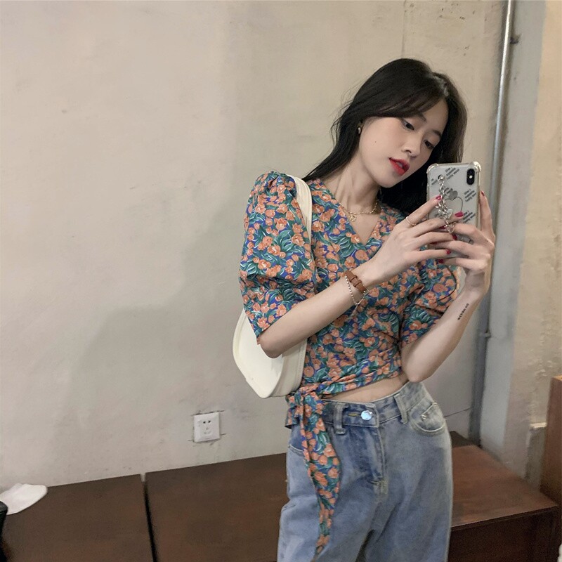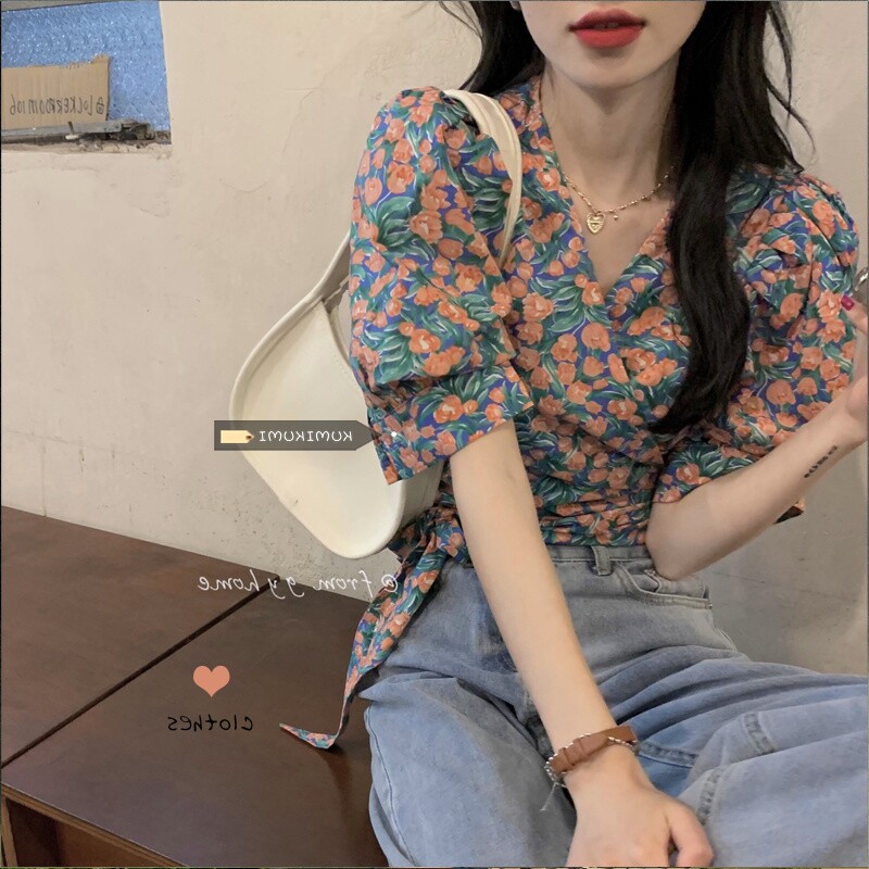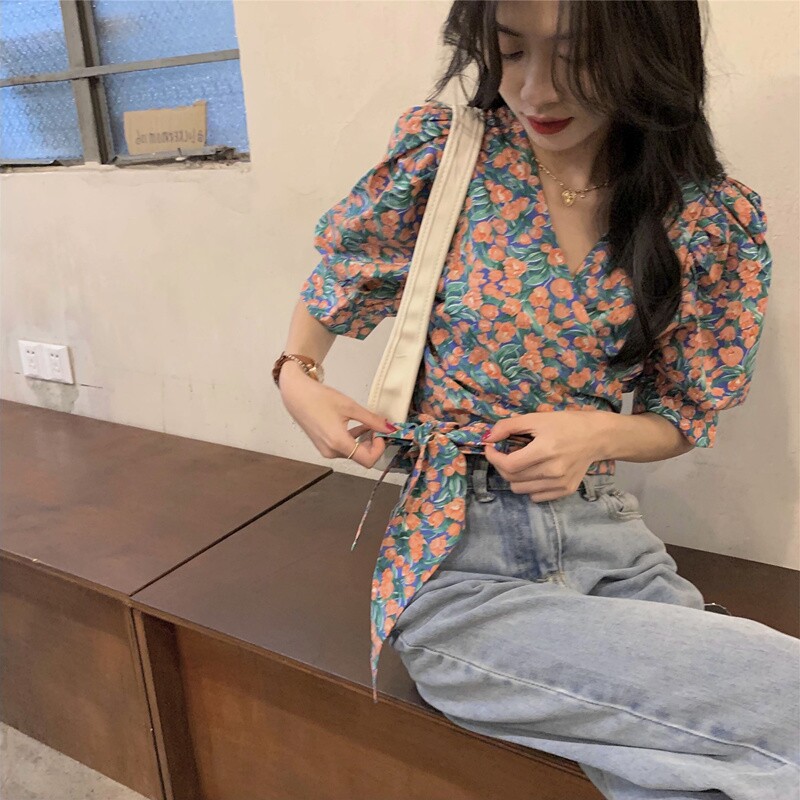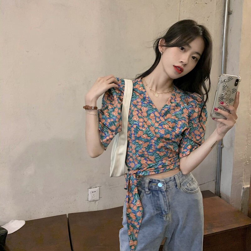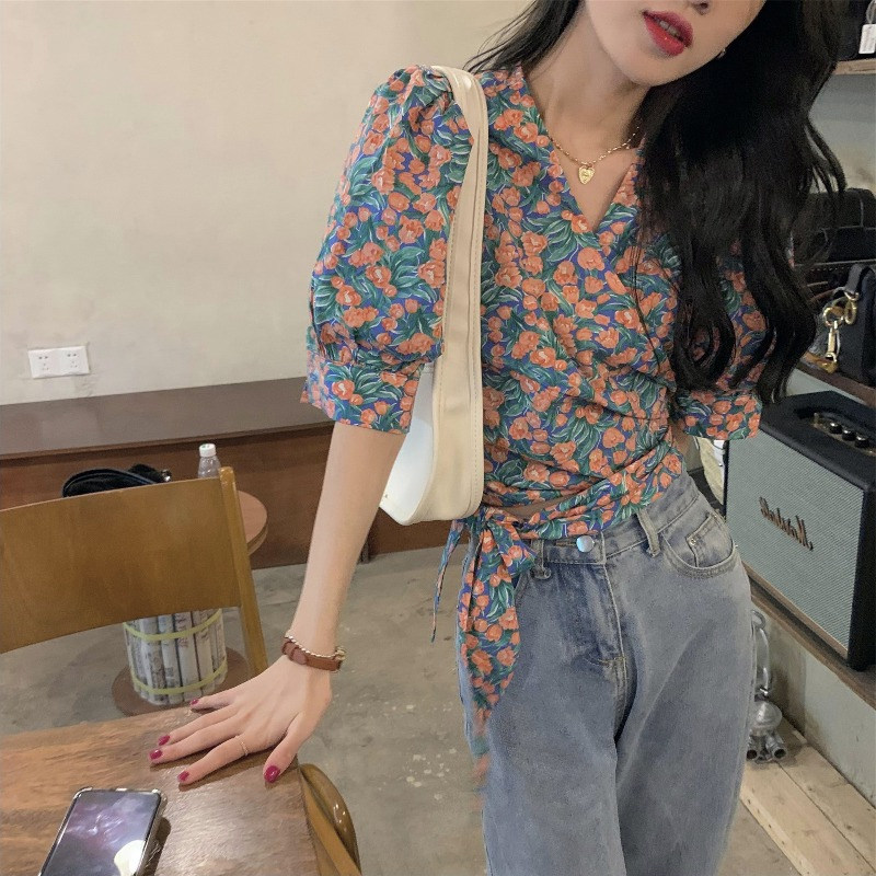 Летний ремень, корсет, дизайнерская рубашка, французский стиль, цветочный принт, тренд сезона