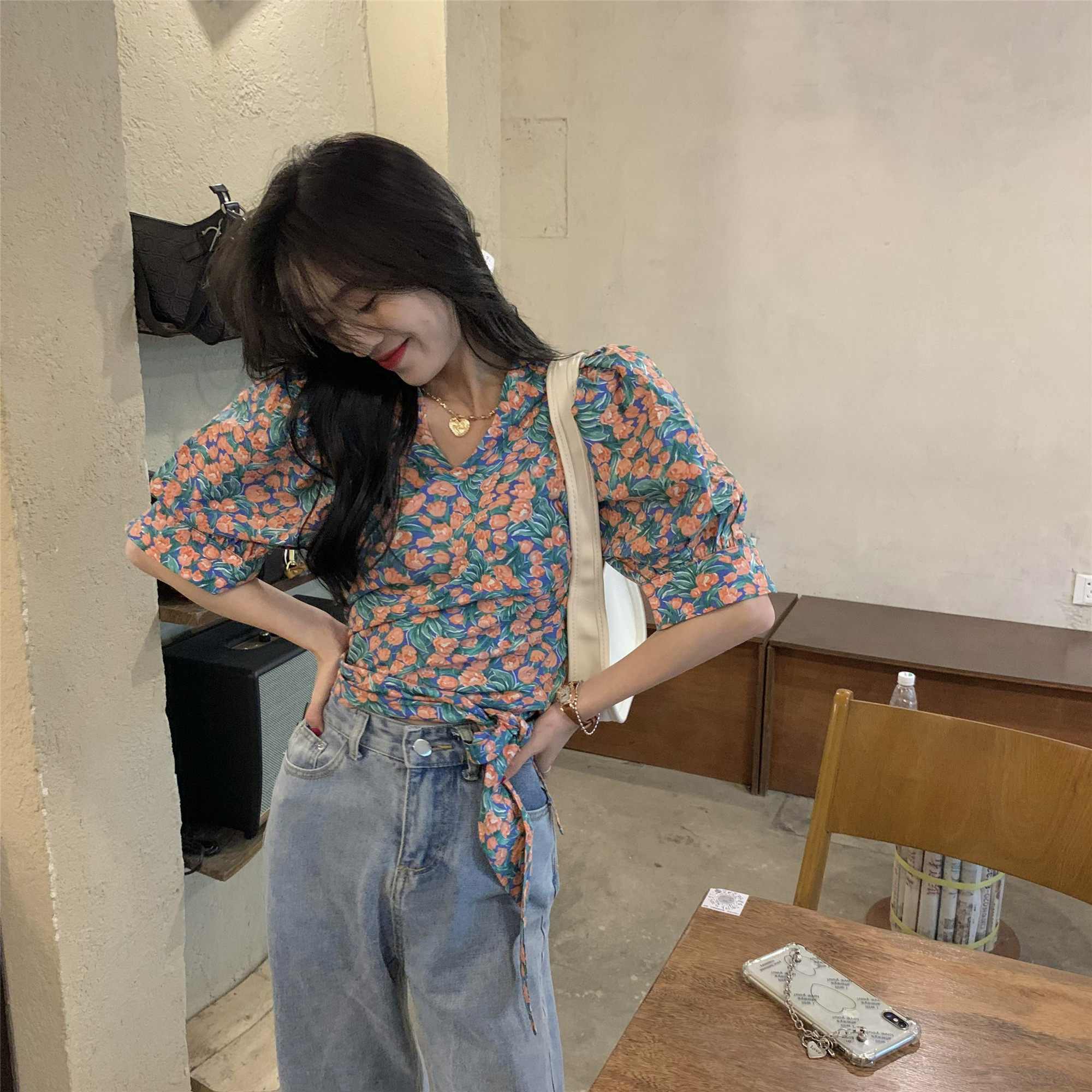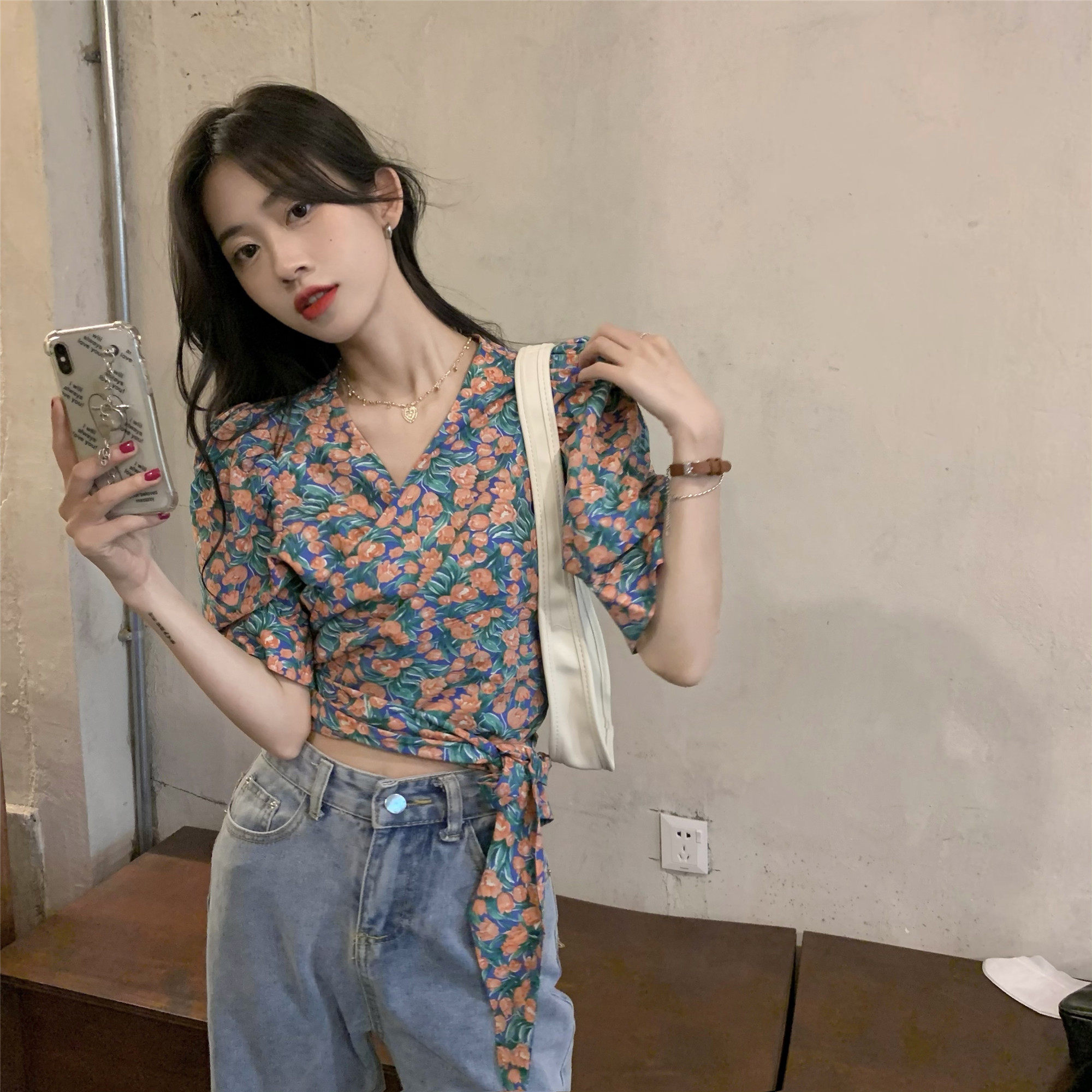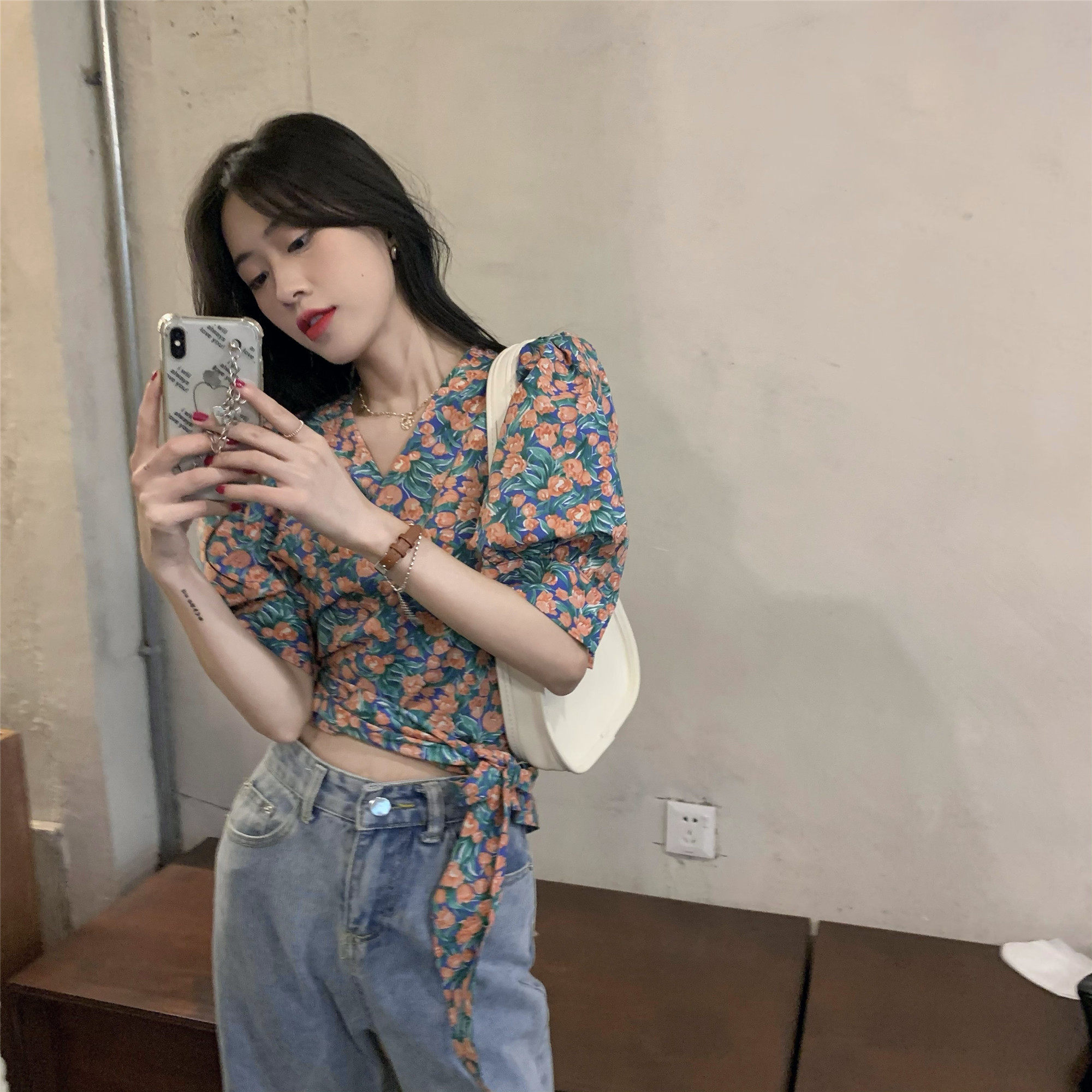 Летний ремень, корсет, дизайнерская рубашка, французский стиль, цветочный принт, тренд сезона
