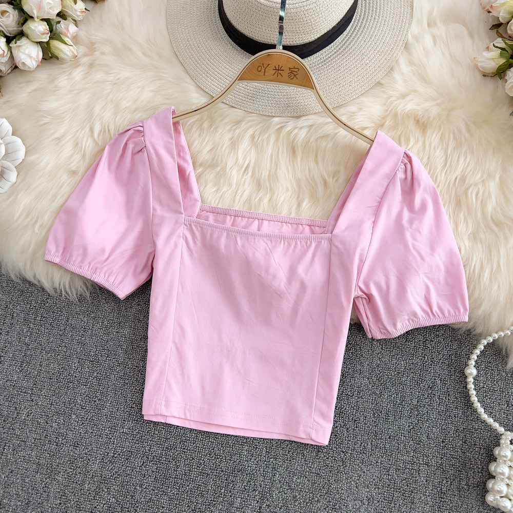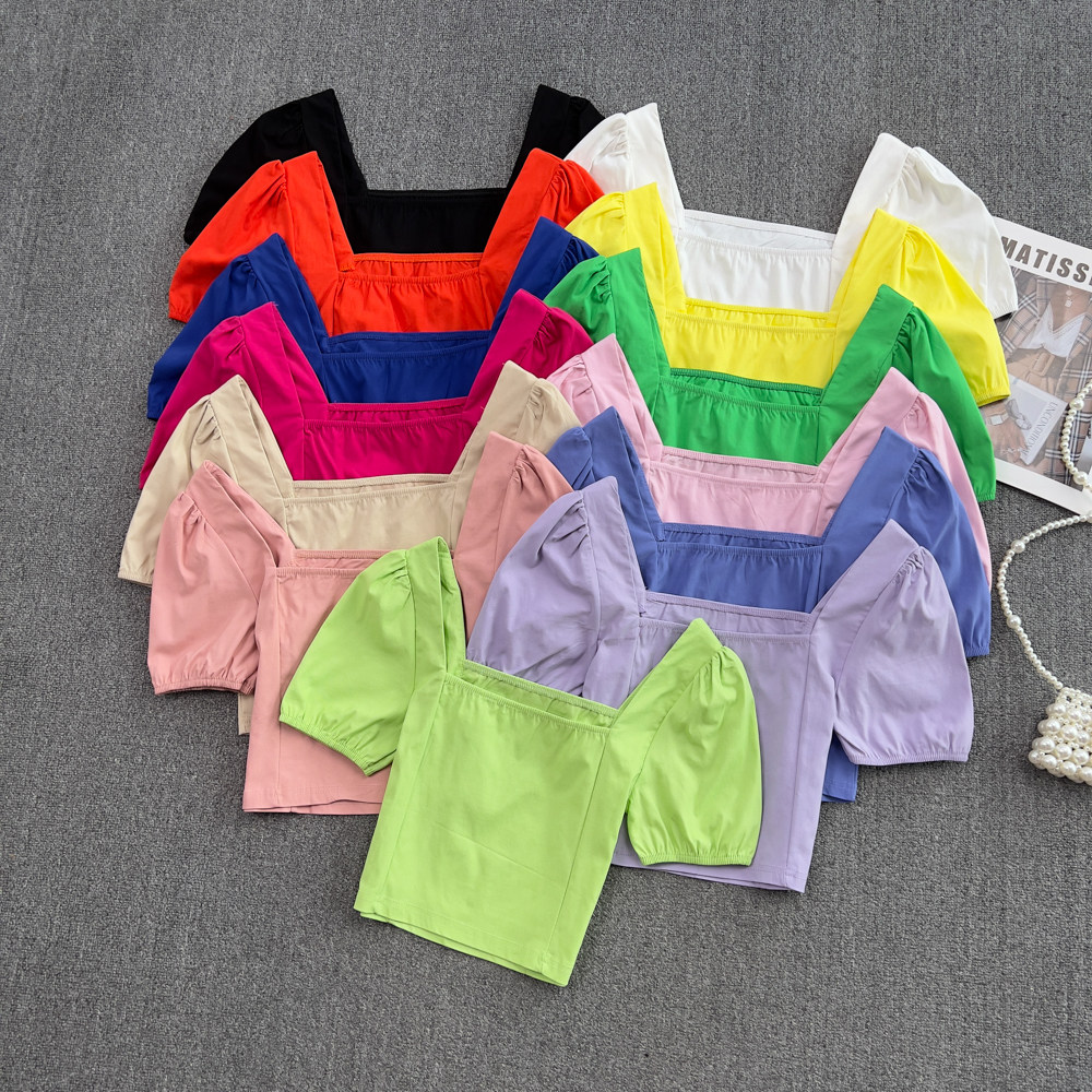 Летняя летняя одежда, короткая рубашка, рукава фонарики, квадратный вырез, в западном стиле, облегающий крой