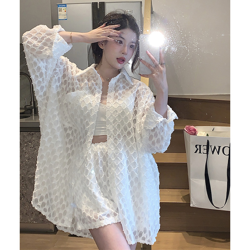 Дизайнерский летний кардиган с ромбовидным узором, тонкий лонгслив, рубашка, тренд сезона, защита от солнца, оверсайз