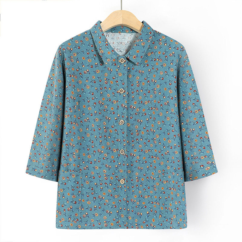 Рубашка для матери, хлопковая осенняя летняя одежда, цветочный принт, 60 лет, для среднего возраста