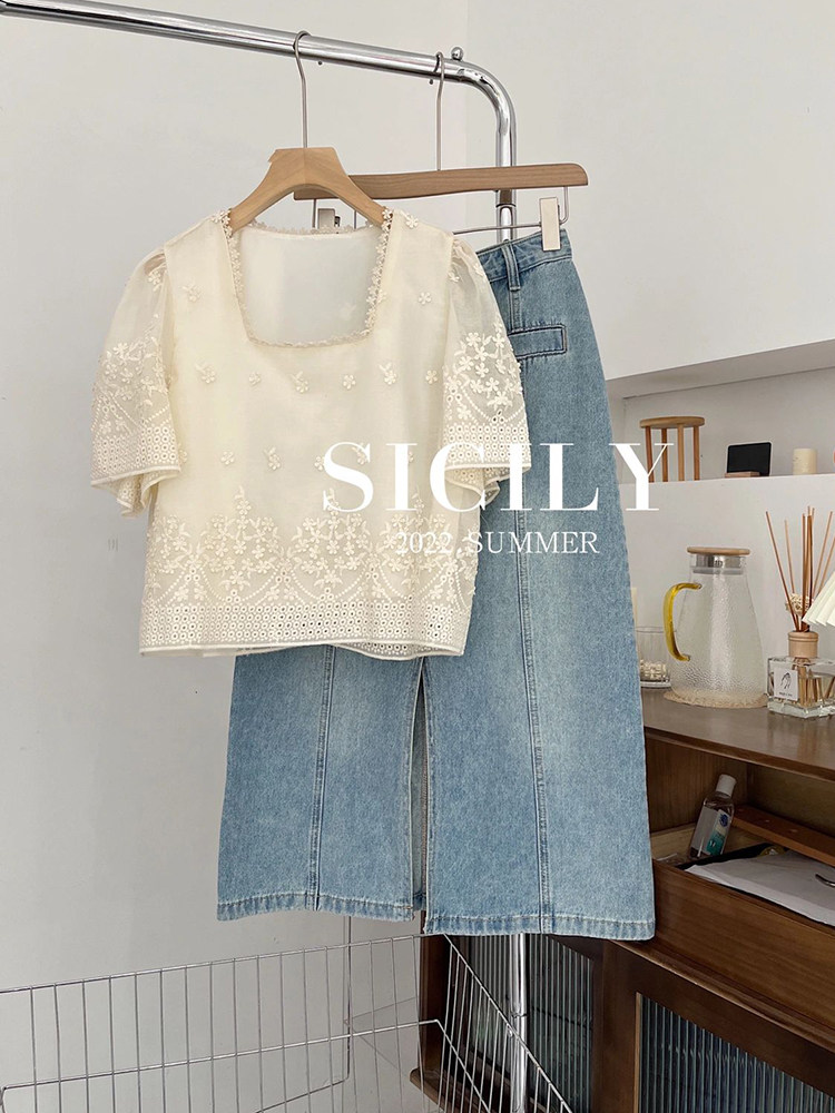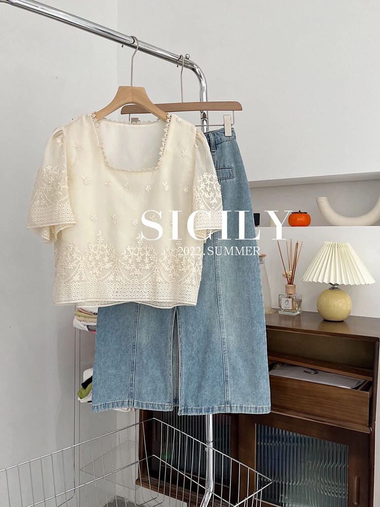 Шифоновая летняя кукла, квадратный вырез, изысканный стиль, французский стиль, короткий рукав