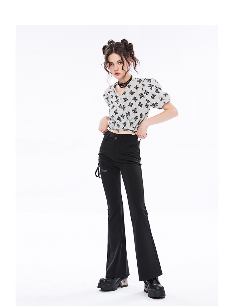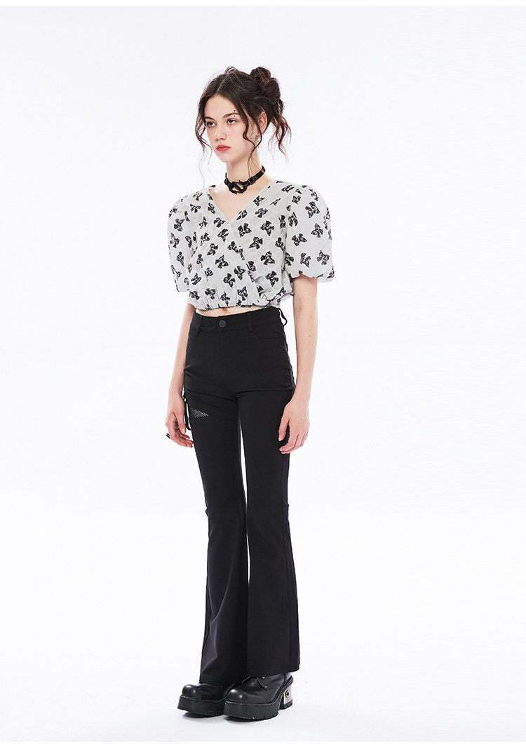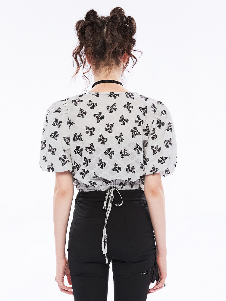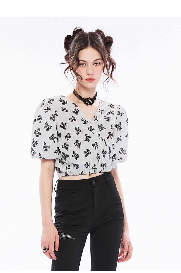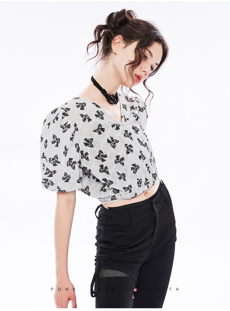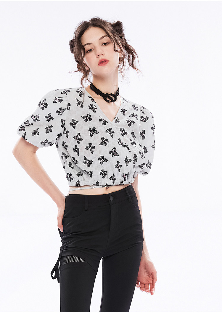 Летняя ретро рубашка, ремень, короткий рукав, V-образный вырез