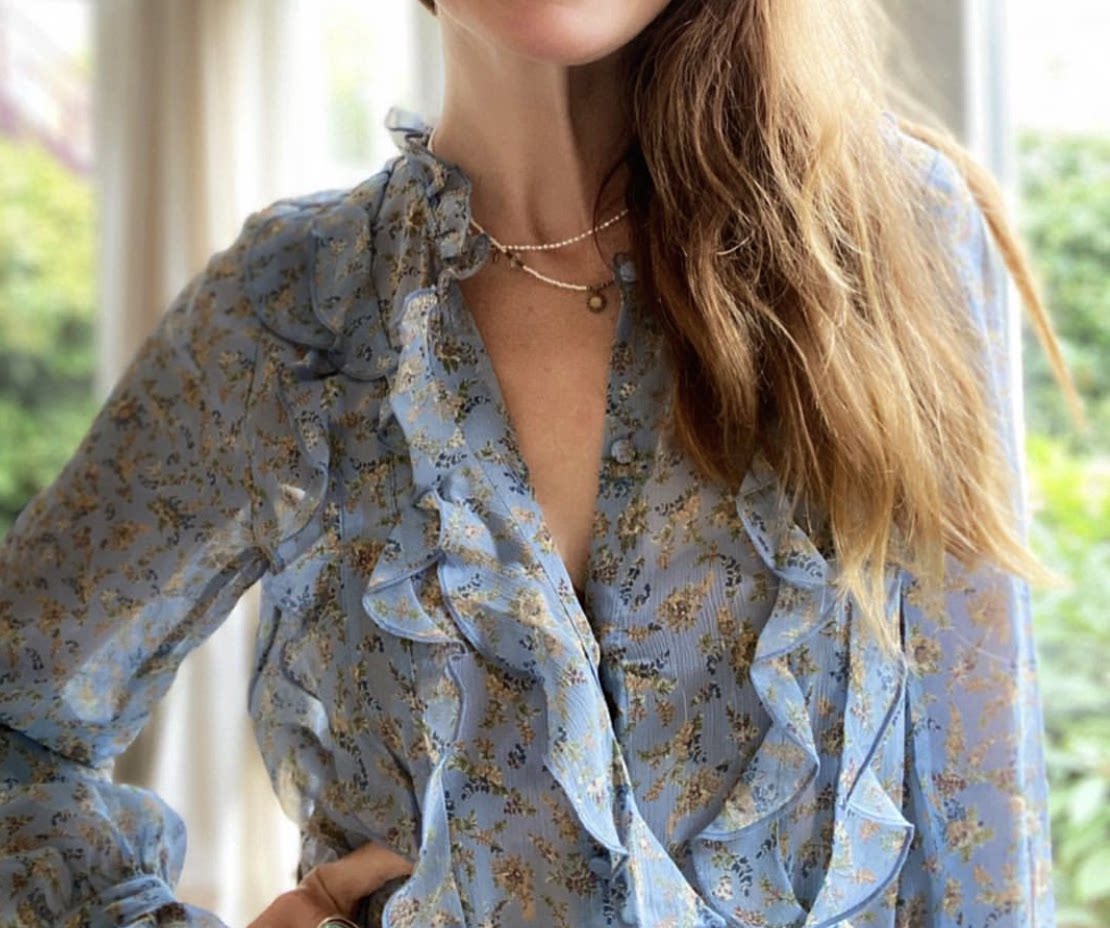 Шифоновый лонгслив, рубашка, французский стиль, цветочный принт
