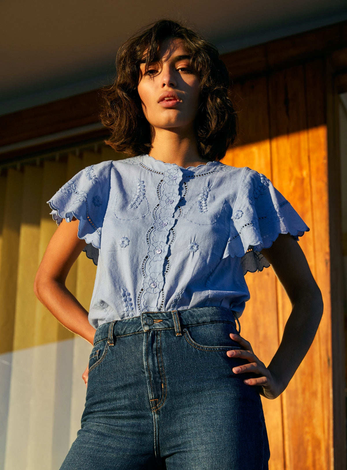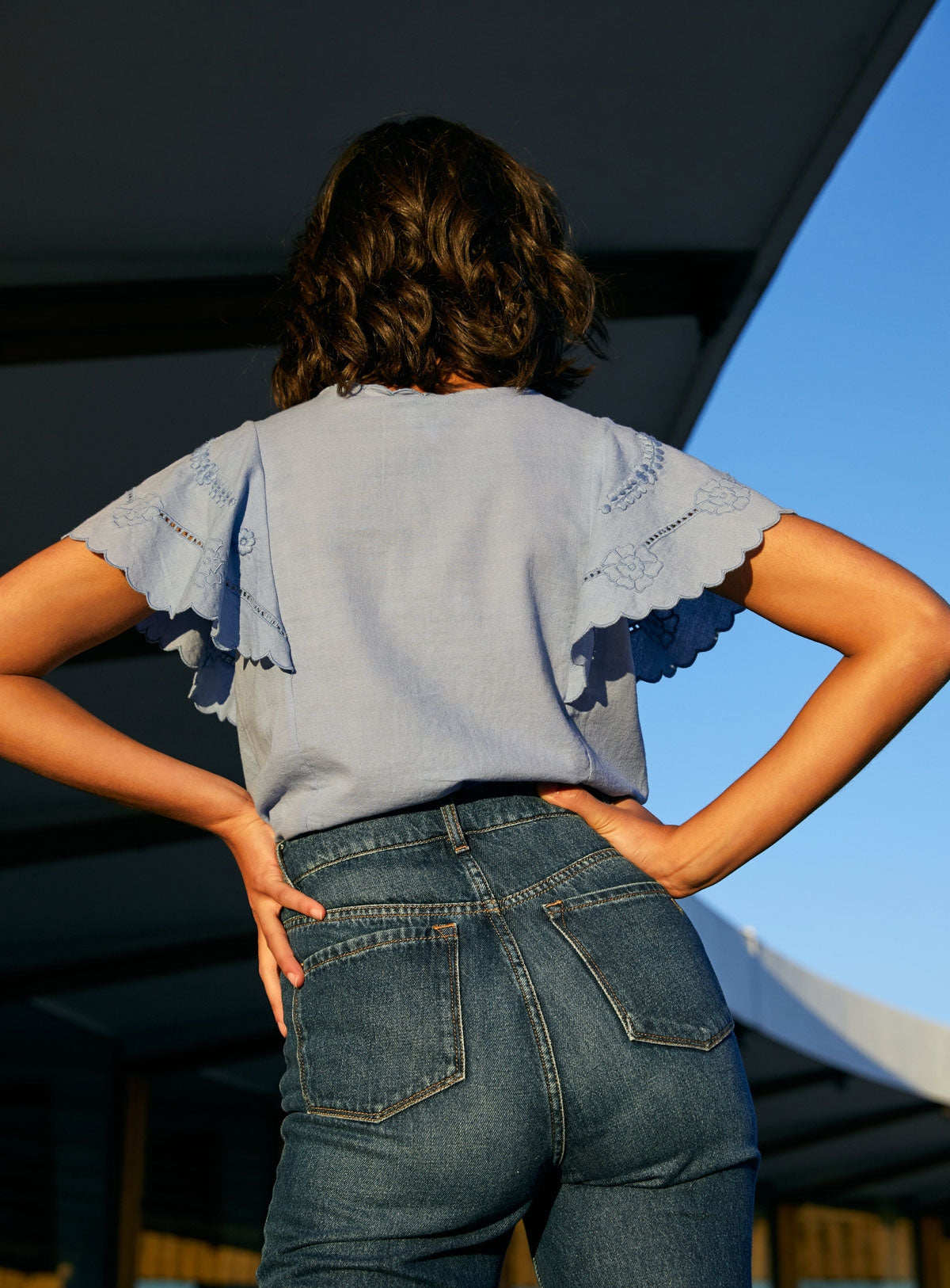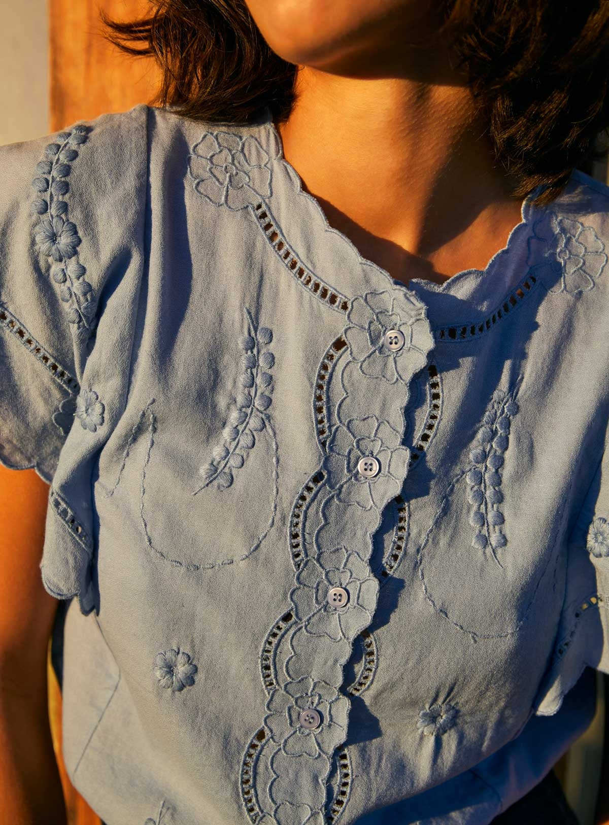 Кружевная белая рубашка, футболка, французский стиль, короткий рукав, с вышивкой