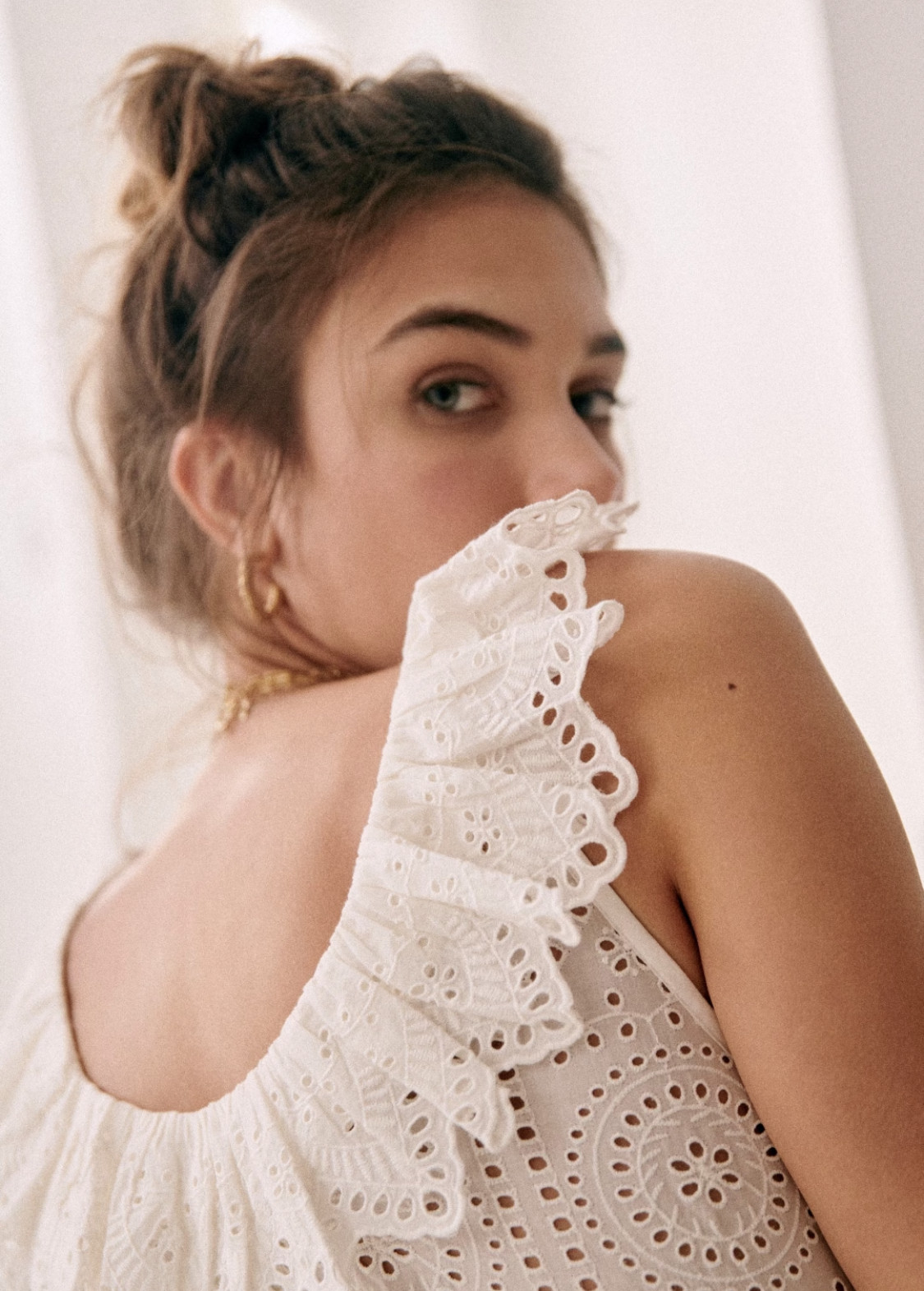 Кружевная рубашка с круглым воротником, жилет без рукавов, футболка, французский стиль, с вышивкой, кружевное платье