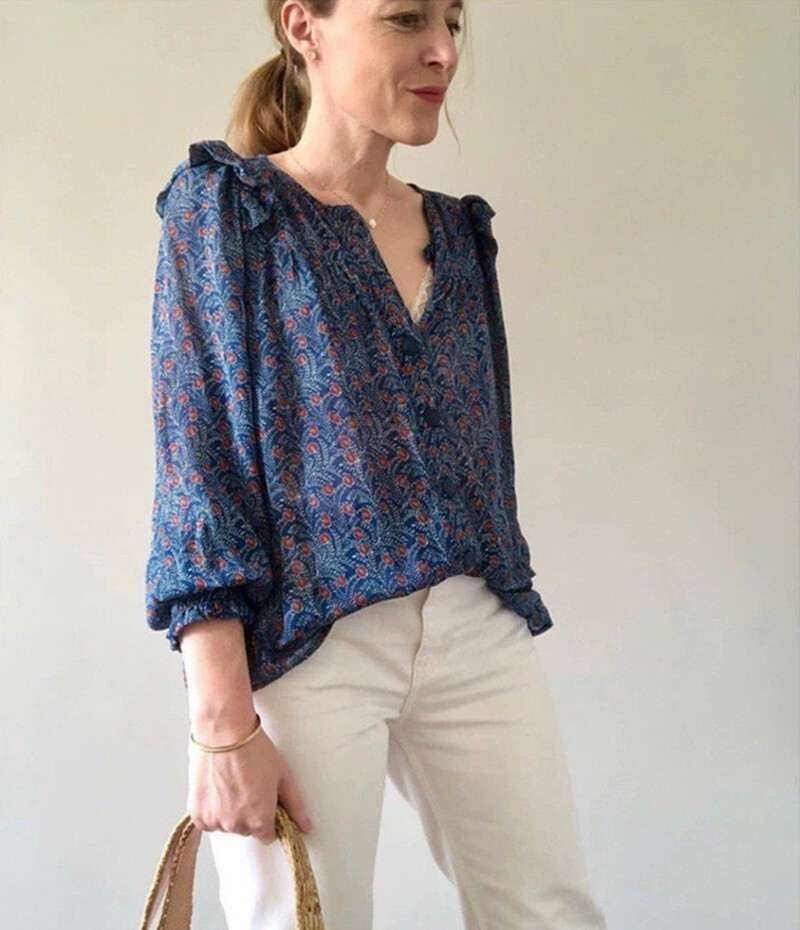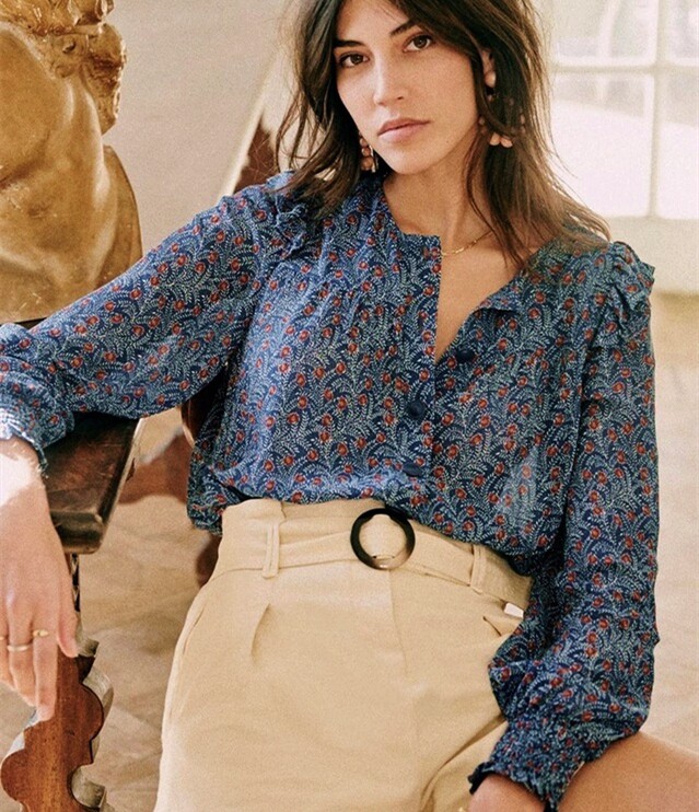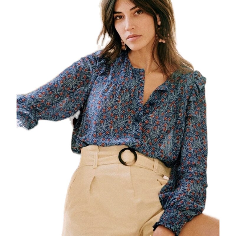 Ретро шифоновая рубашка, французский стиль, цветочный принт