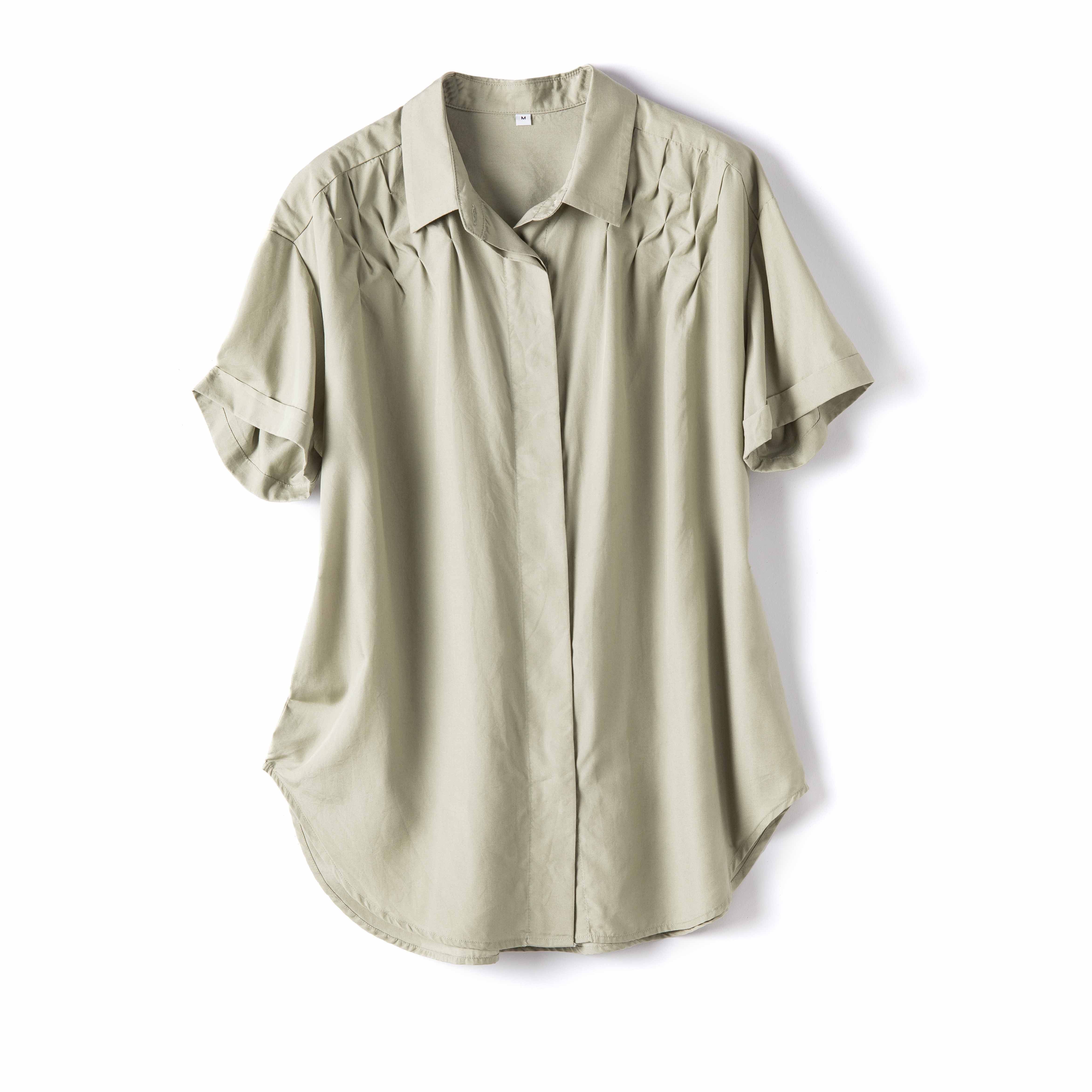 Внешняя торговля, экспорт, японский одинарный лиоцелл, удобный и крутой, с острым воротником, темная планка, повседневная рубашка с короткими рукавами, топ