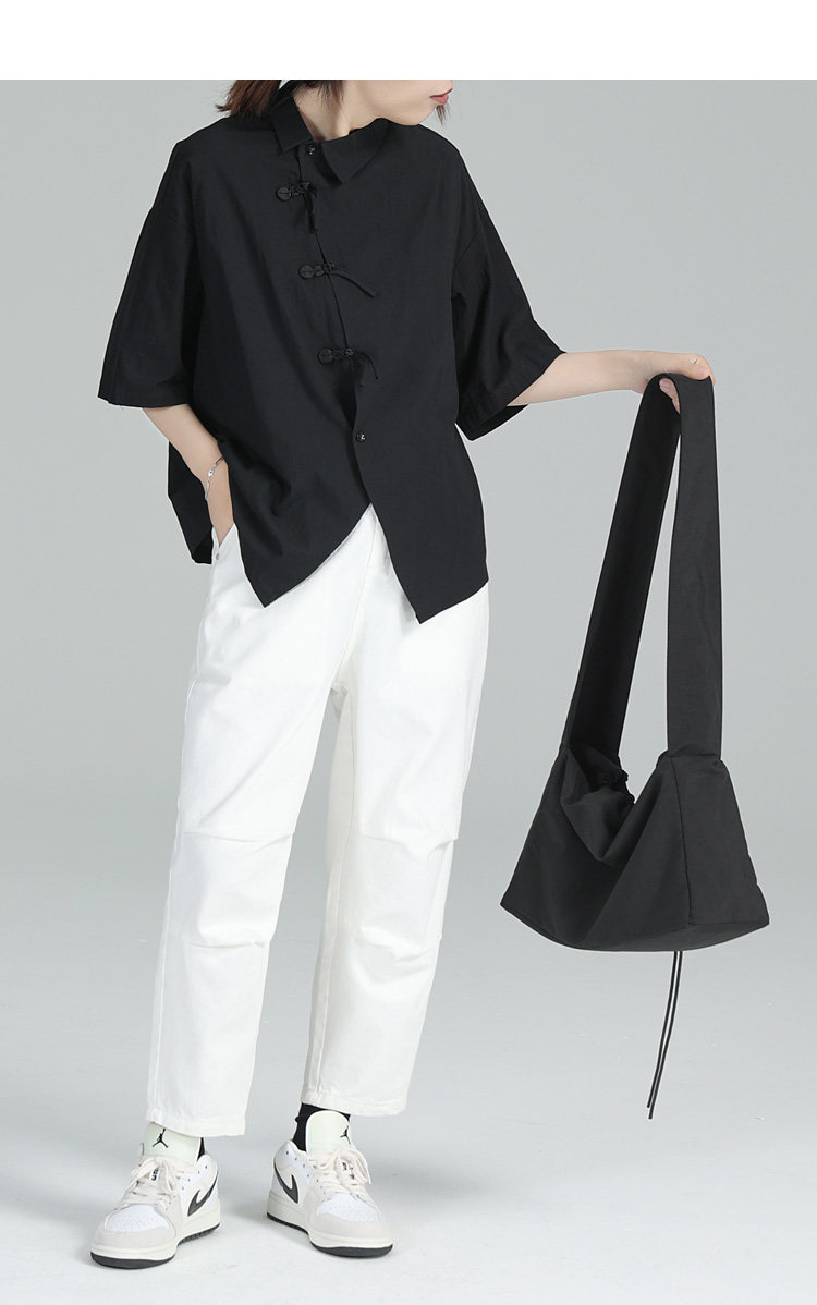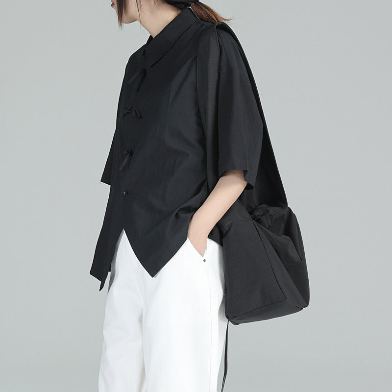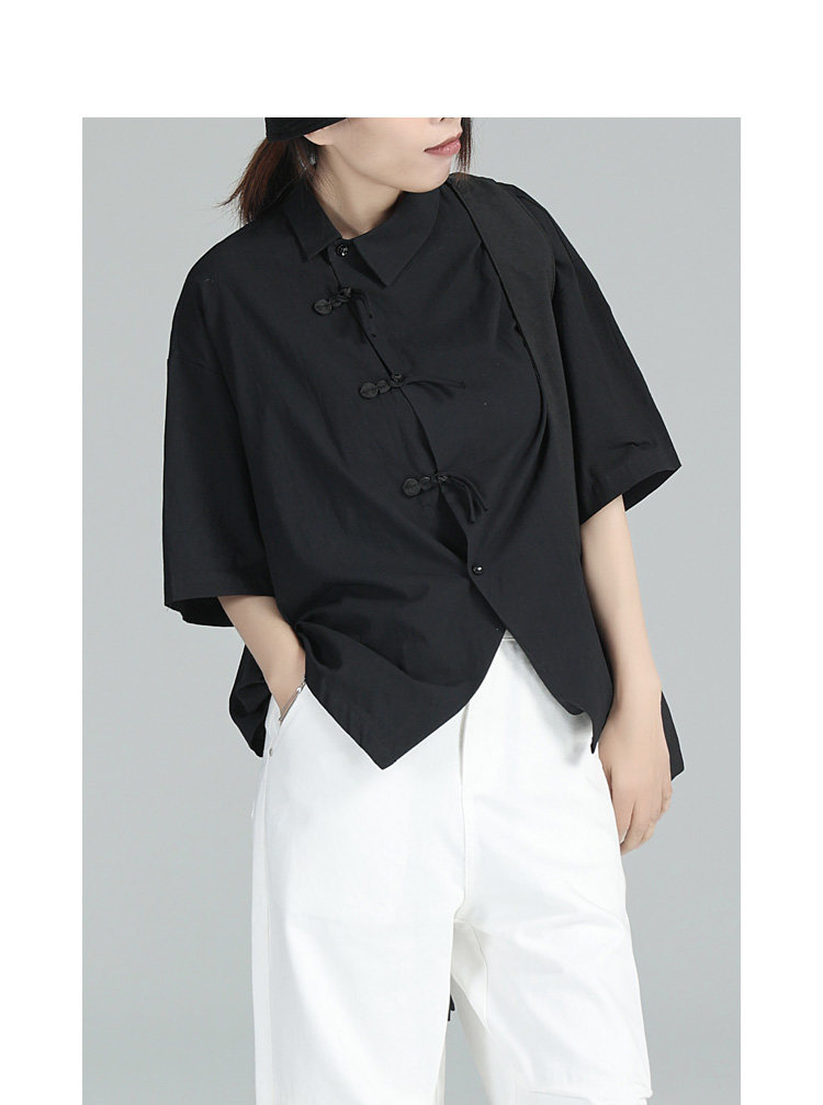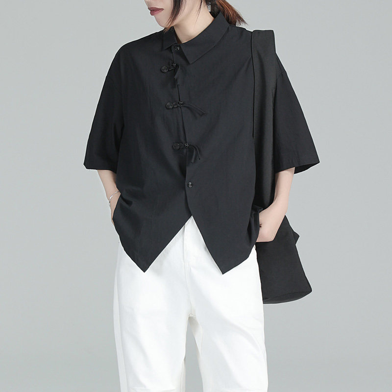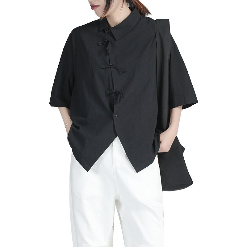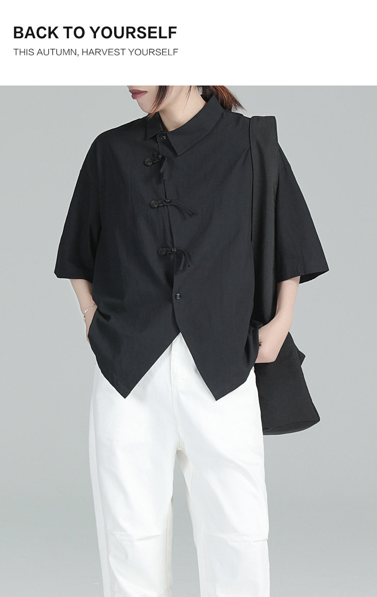 Дизайнерский черный цветовой круг, летняя дышащая рубашка, тренд сезона, свободный крой