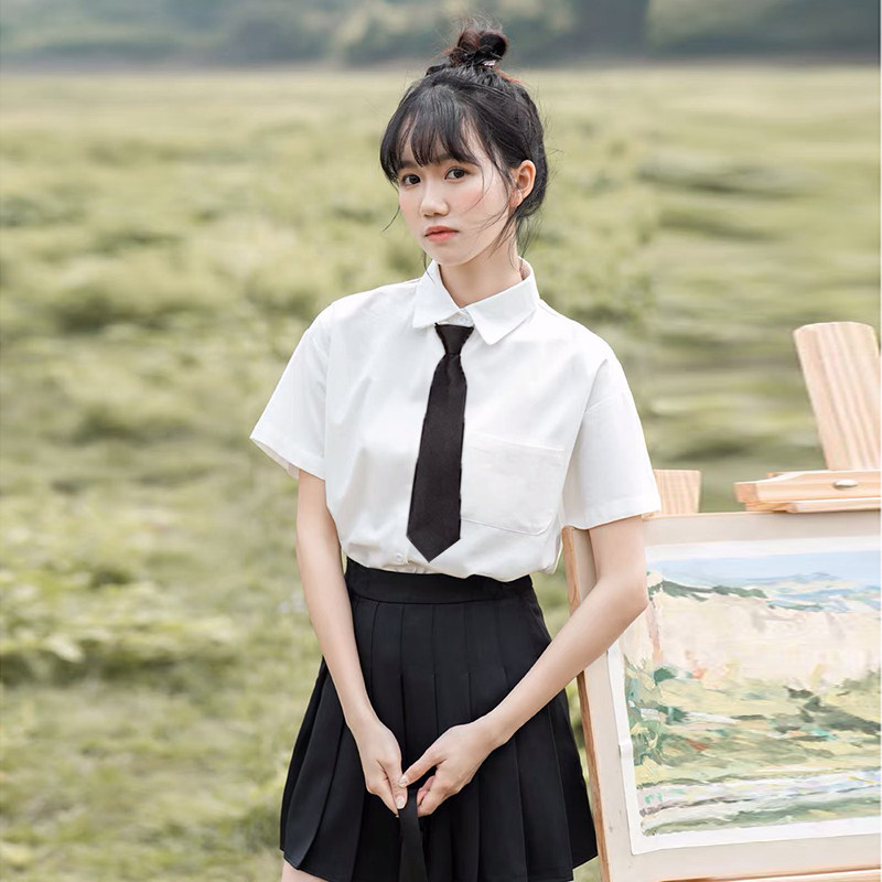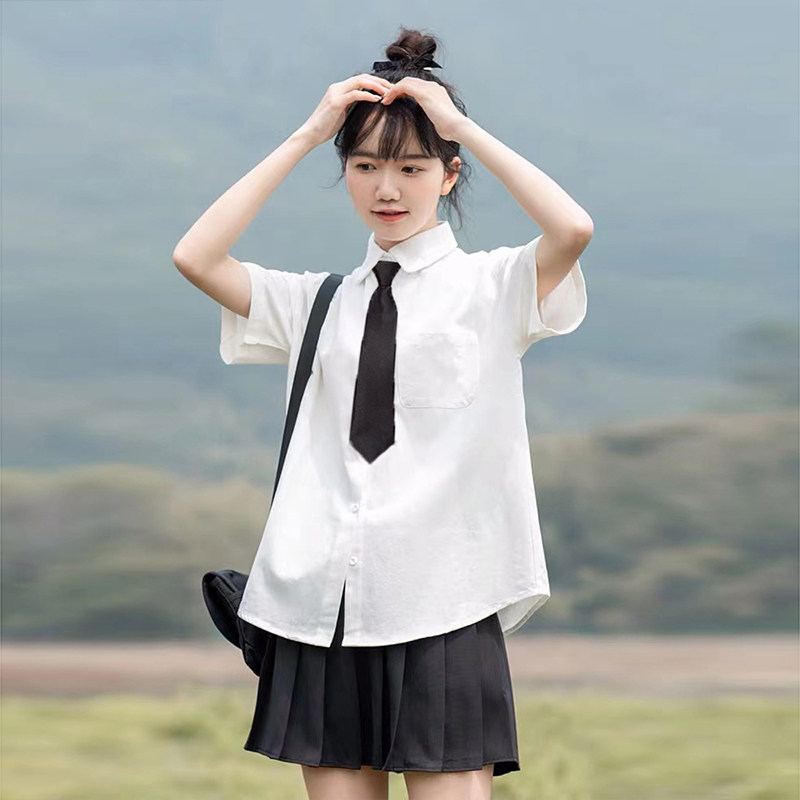 Хлопковая летняя рубашка, галстук, студенческая юбка в складку, комплект, короткий рукав