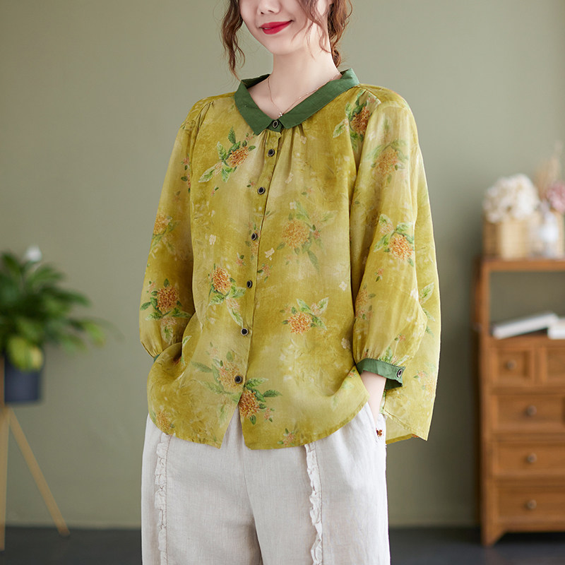 (Трансграничная торговля), японская элитная летняя рубашка, цветочный принт, городской стиль, оверсайз