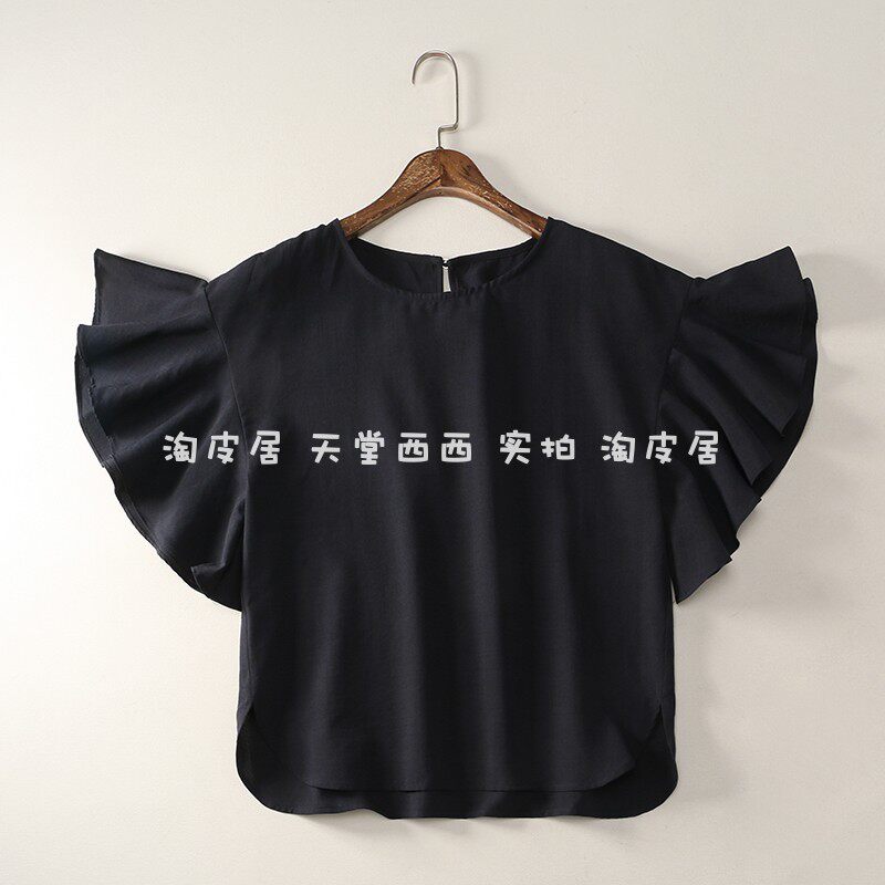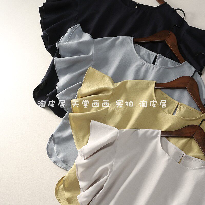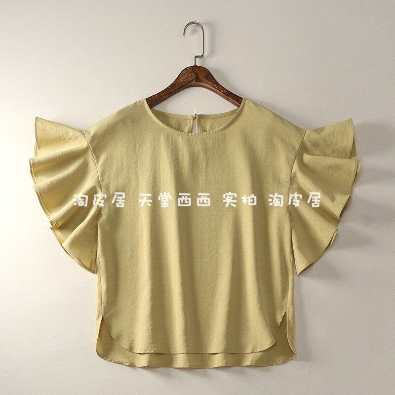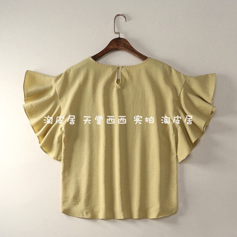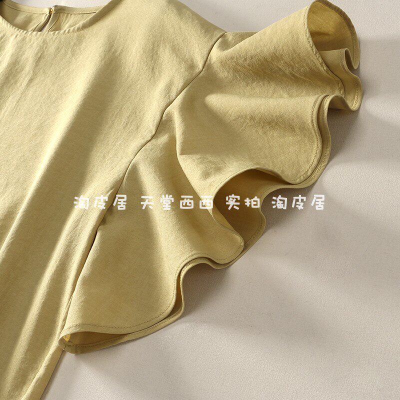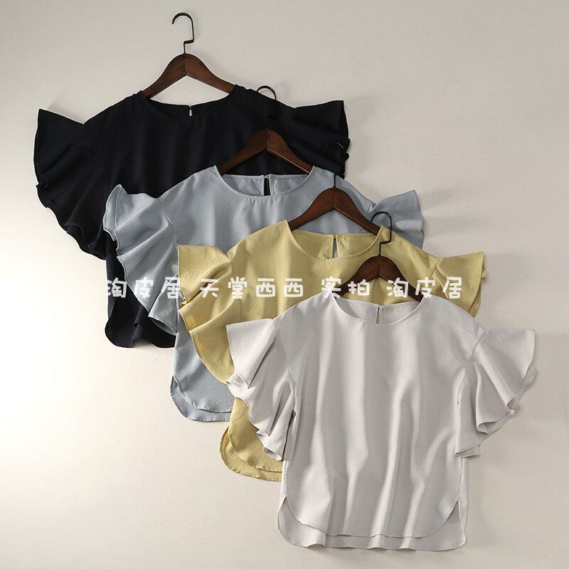 21588 японская одиночная ~ однотонная универсальная свободная рубашка с круглым вырезом и летящими рукавами, рубашка, топы для женщин 0,15