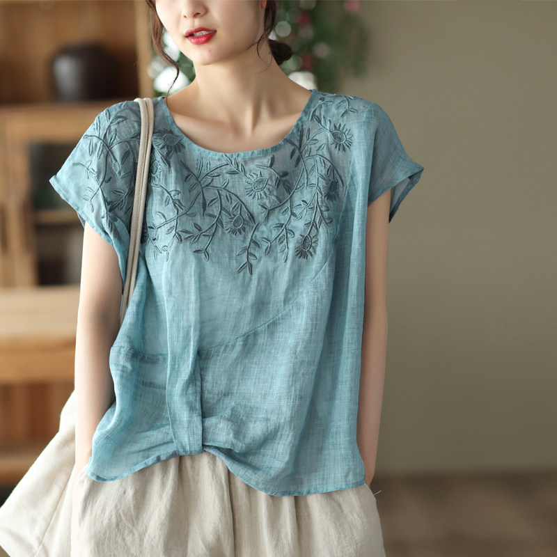 Yuanyuan Meiyi ретро тяжелая промышленная вышиваемая рубашка для женщин 100 тонкая рубашка Ramie для женского темперамента Thin Pulver Top Lempor