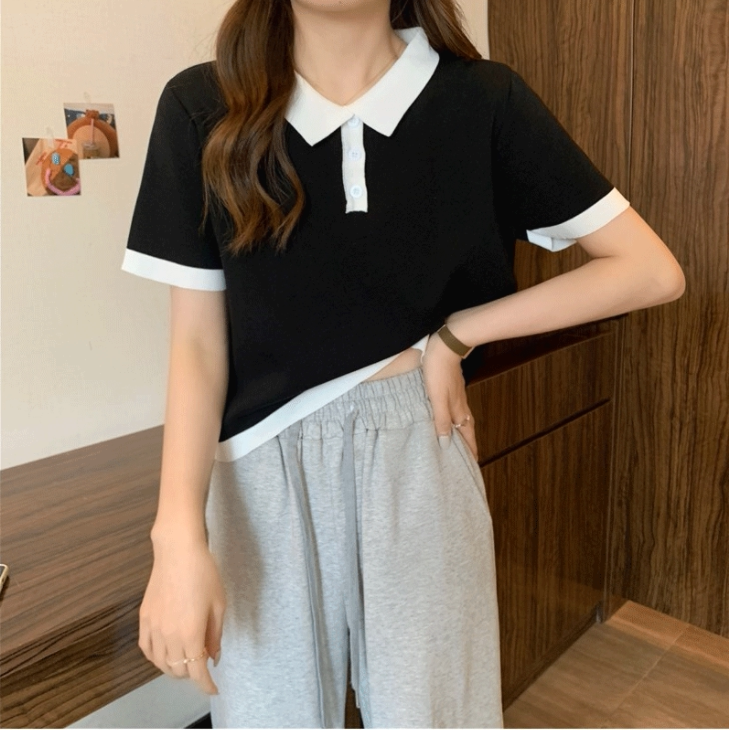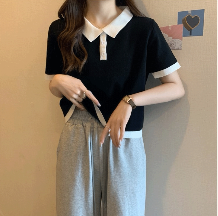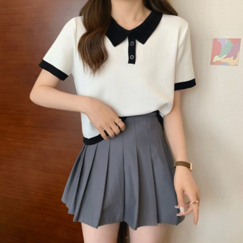 Белая шелковая тонкая трикотажная дизайнерская футболка, воротник поло, тренд сезона, высокая талия