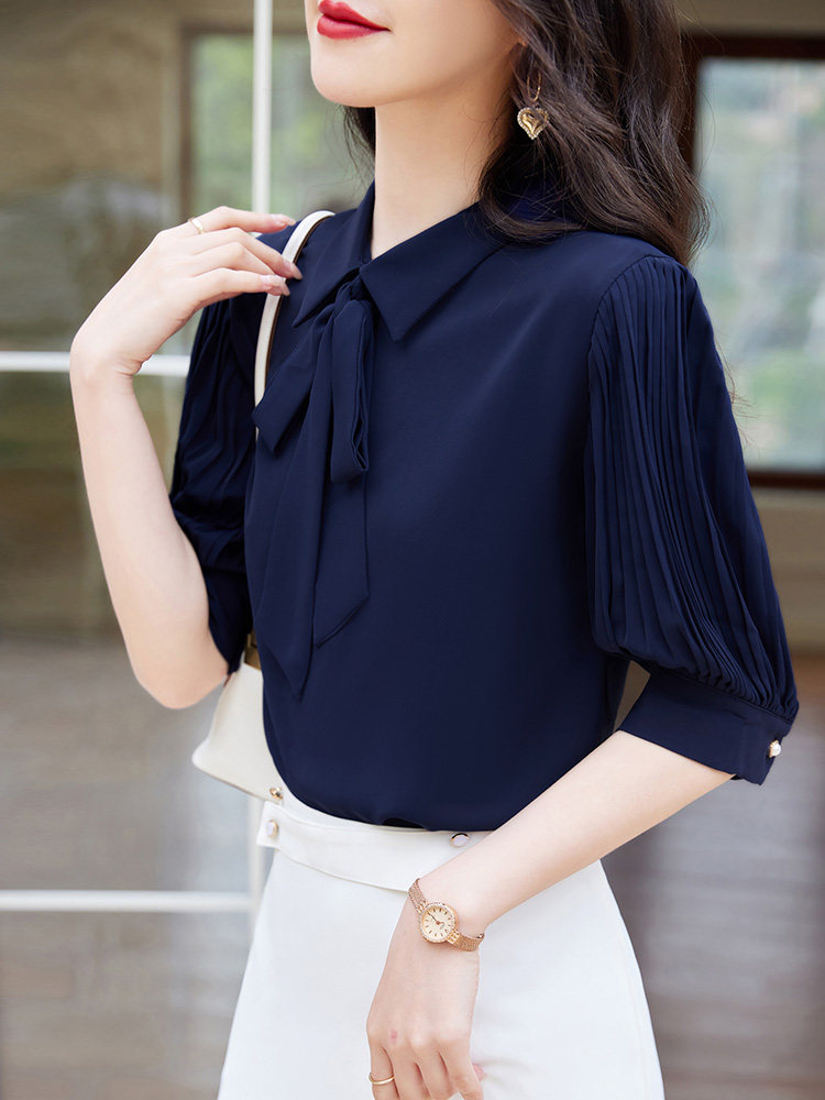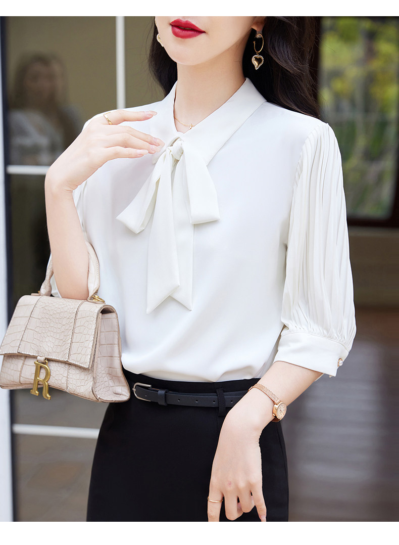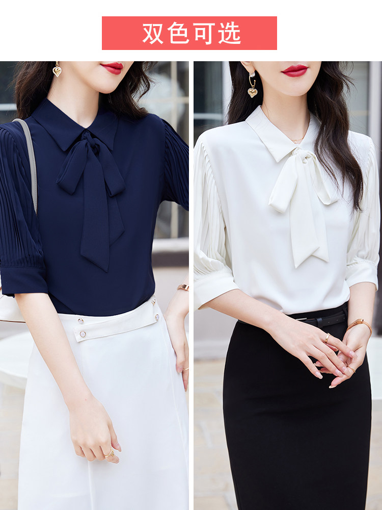 Летняя элитная элегантная рубашка с бантиком для работы, 2025 года