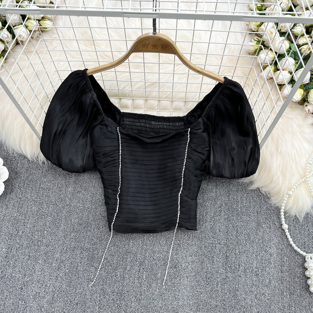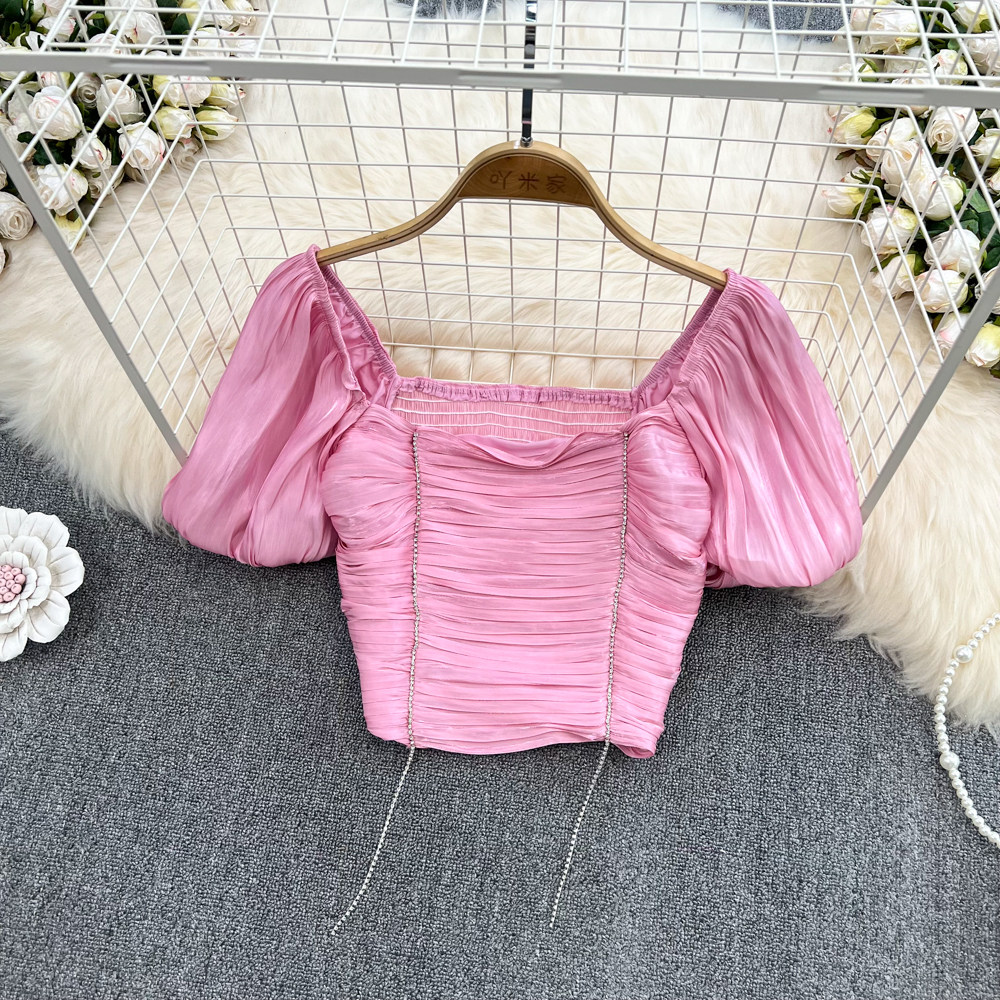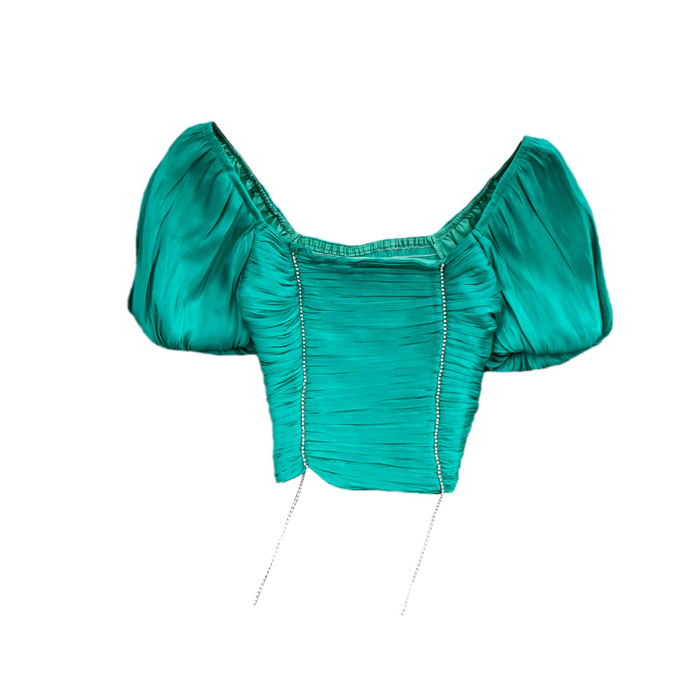 Приталенная короткая рубашка, квадратный вырез, короткий рукав, в западном стиле