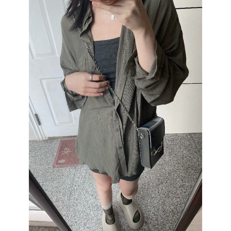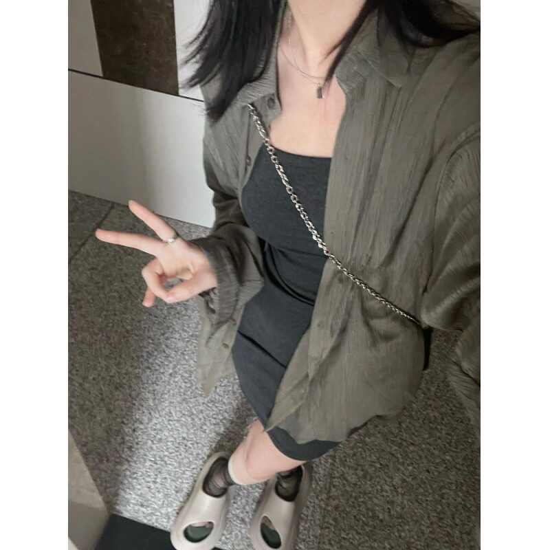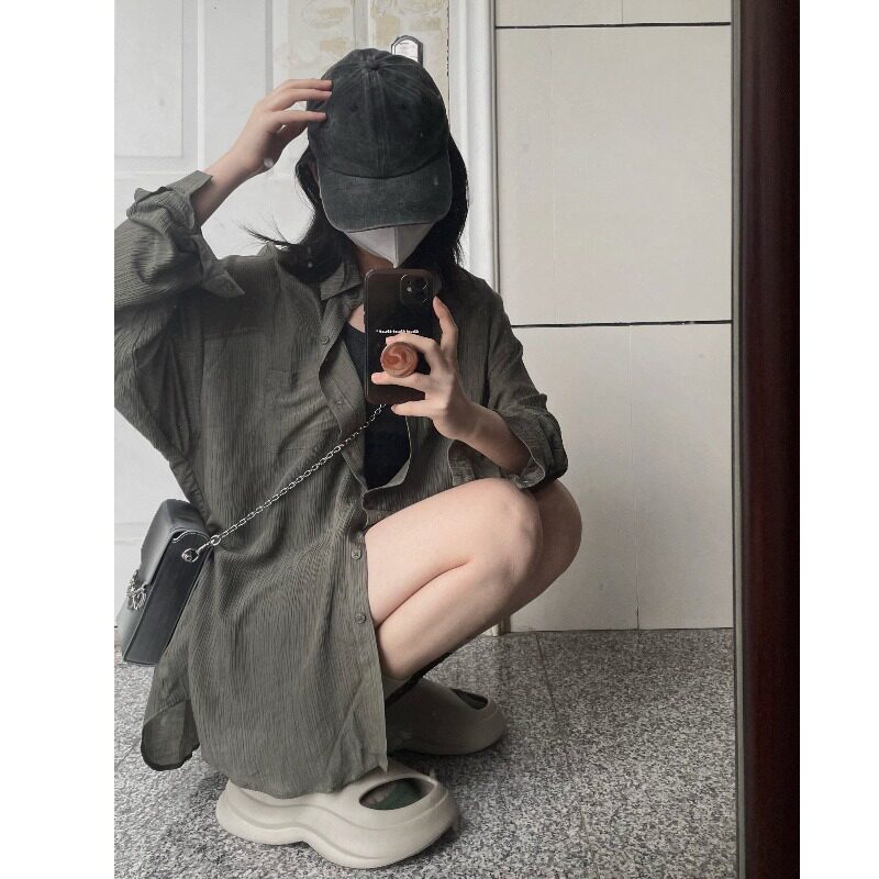 Ретро летняя рубашка, куртка, дизайнерский лонгслив, защита от солнца, тренд сезона, оверсайз