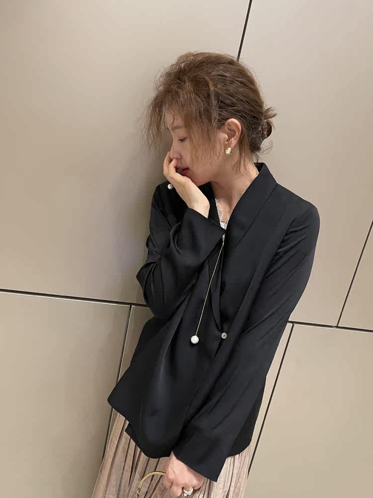 Эластичная шелковая рубашка, лонгслив, яркий броский стиль, по фигуре