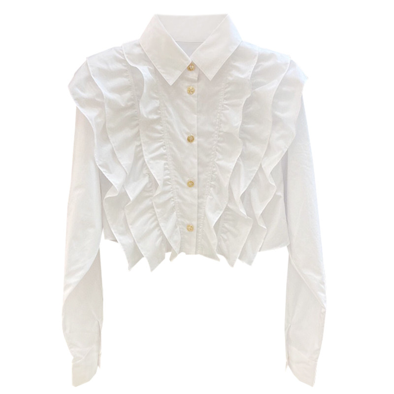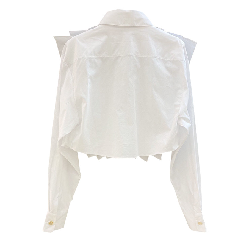 Дизайнерский белый лонгслив, осенняя короткая рубашка, тренд сезона, французский стиль, в стиле Шанель