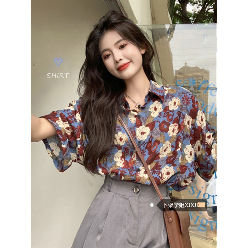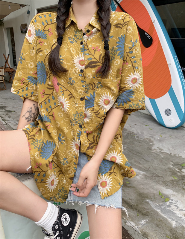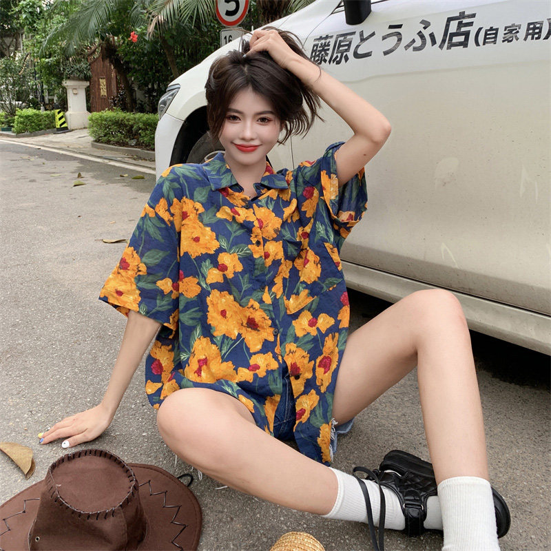 Сексуальная летняя рубашка для отдыха, цветочный принт, оверсайз