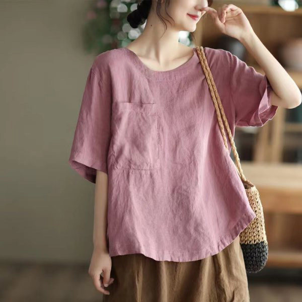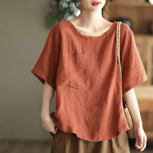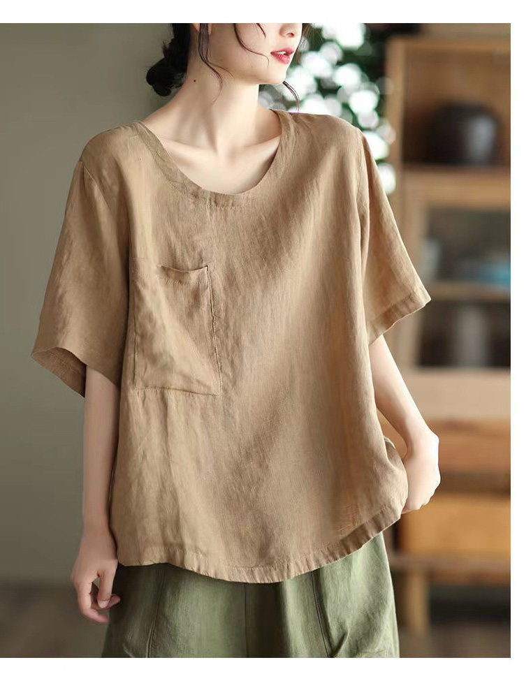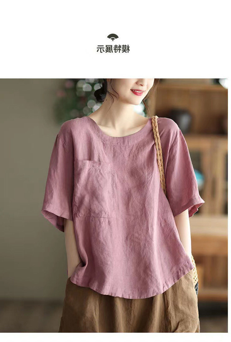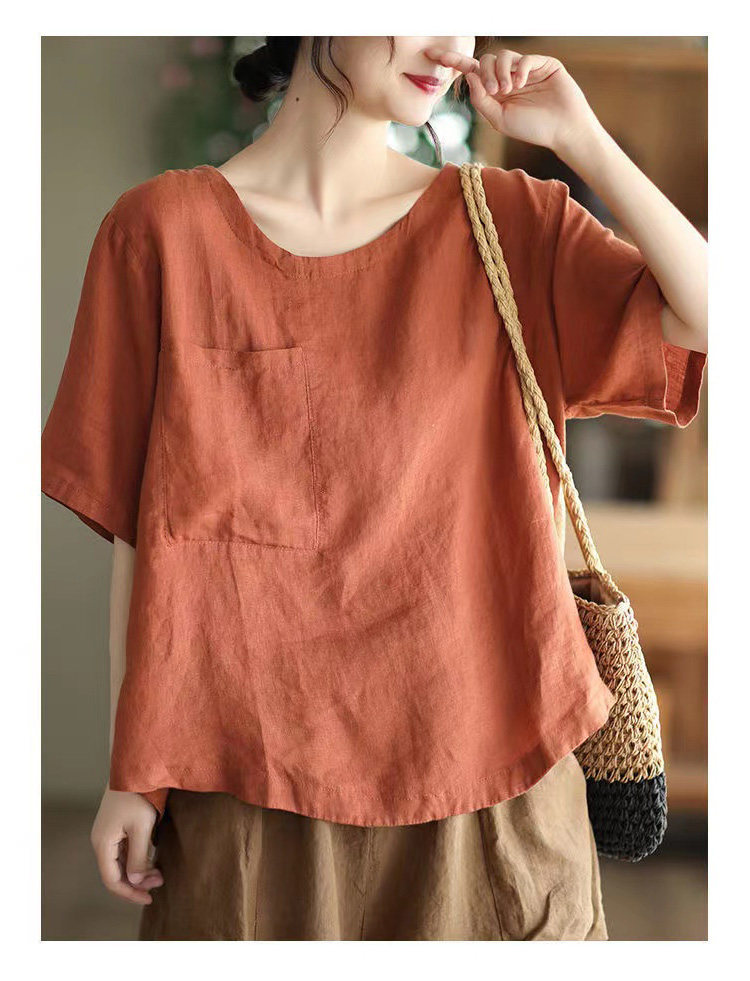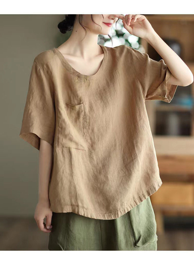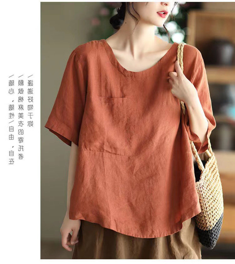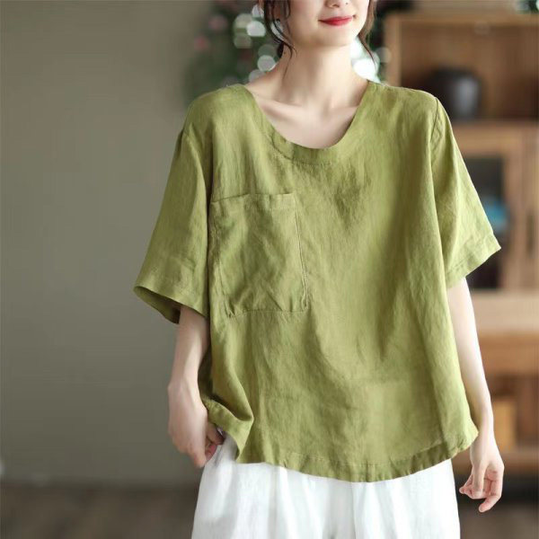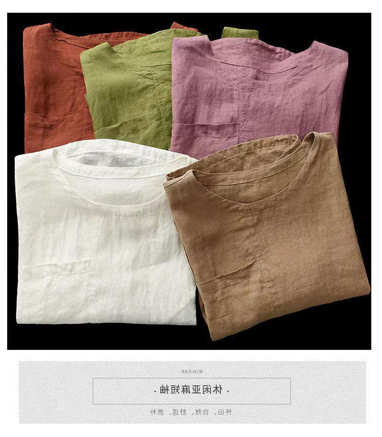 (Трансграничная торговля), элитная ретро рубашка с круглым воротником, нарукавники, футболка, из хлопка и льна