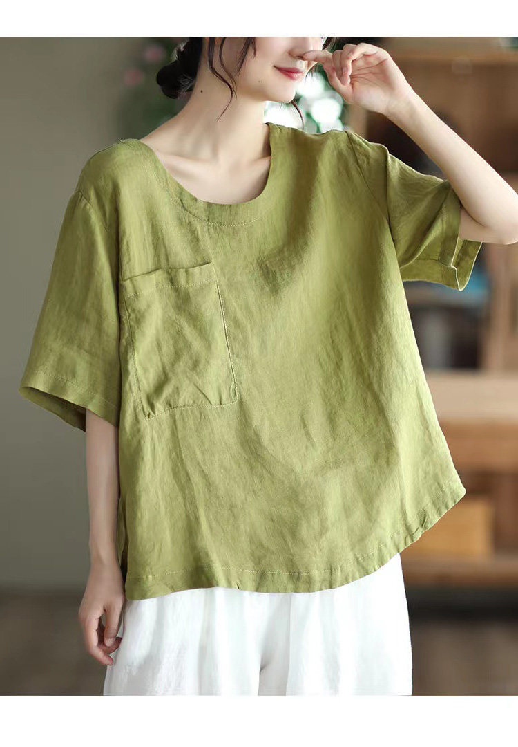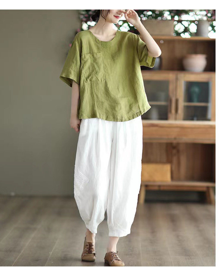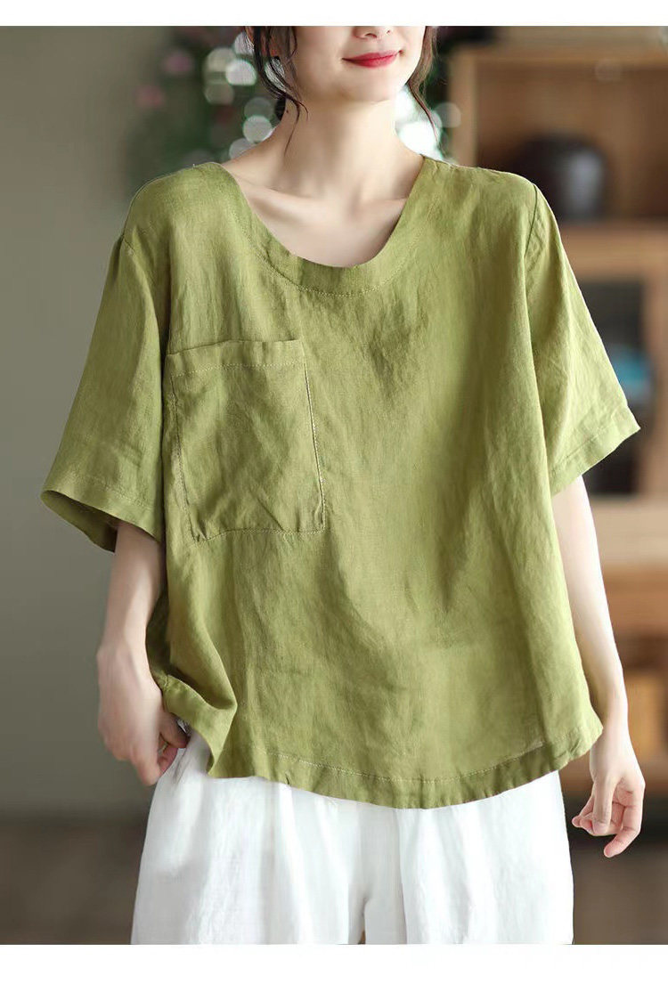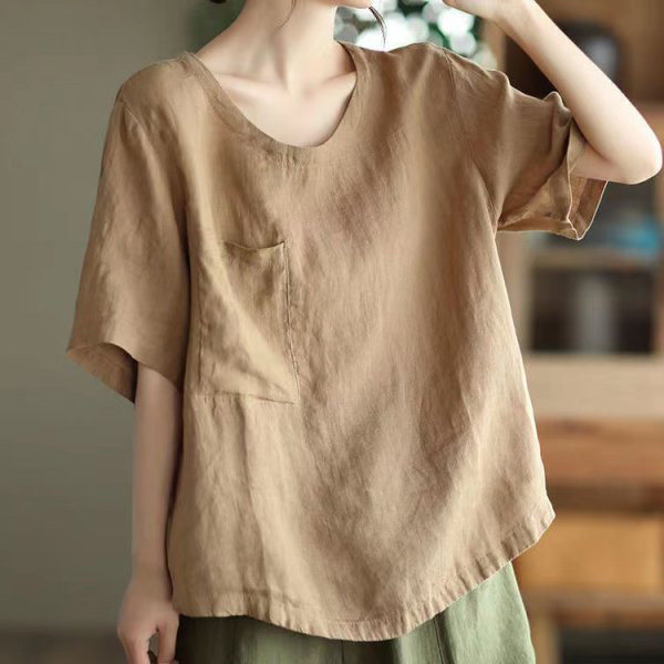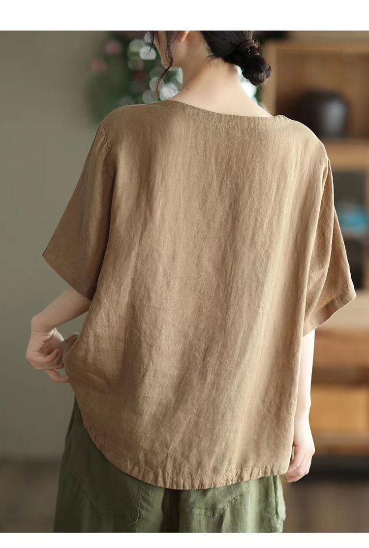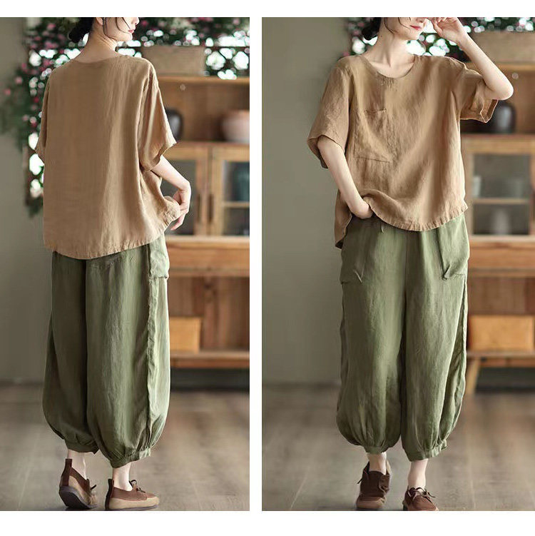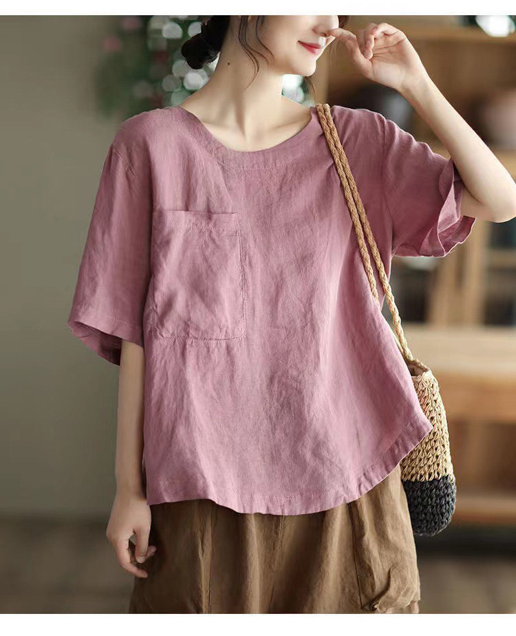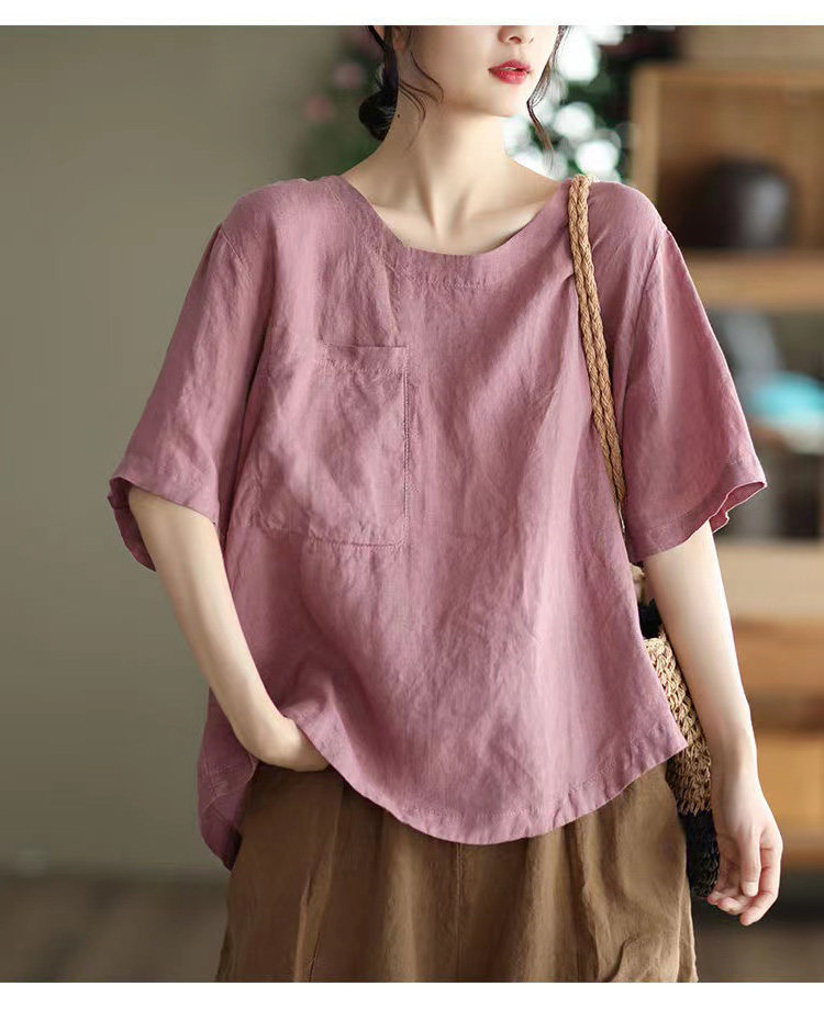 (Трансграничная торговля), элитная ретро рубашка с круглым воротником, нарукавники, футболка, из хлопка и льна