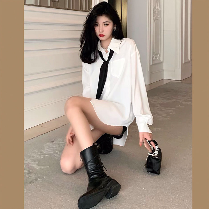 Длинная ретро рубашка, галстук для отдыха, средней длины, оверсайз